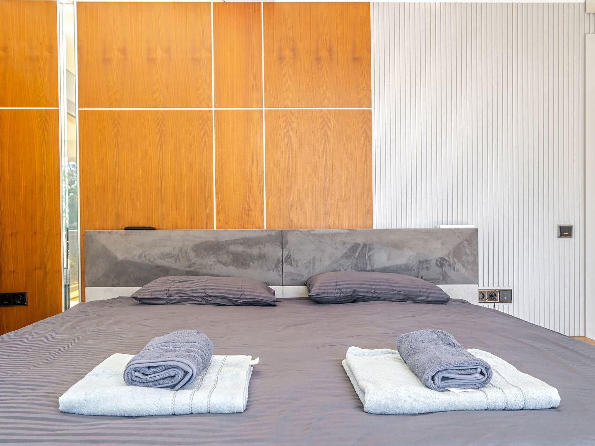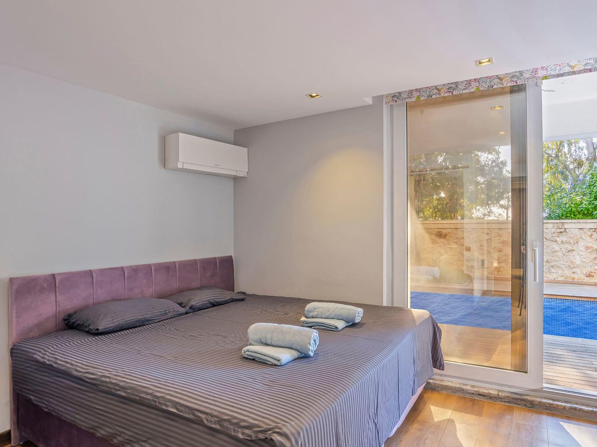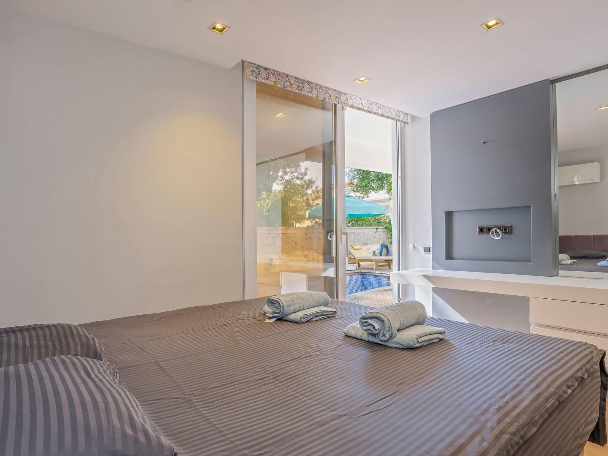 The interior design of our villa reflects a thoughtful blend of comfort and functionality. Each of the three bedrooms is equipped not only with a cosy double bed, but also with its own bathroom, offering you and your fellow travellers a private retreat. In addition, amenities such as air conditioning in all rooms, a washing machine and a fully equipped kitchen with gas hob, dishwasher, coffee machine, kettle and solar energy ensure that you will want for nothing and feel right at home.