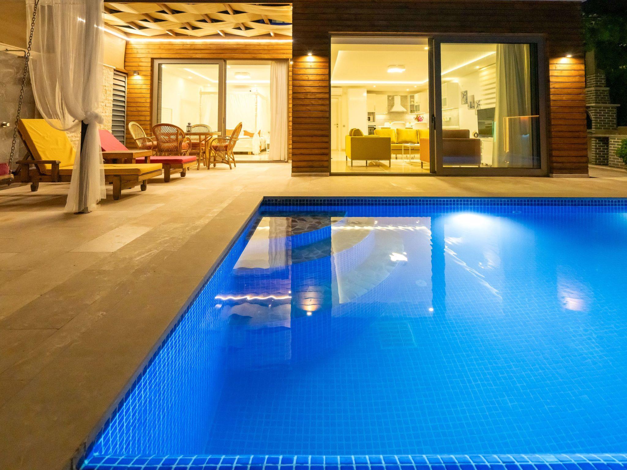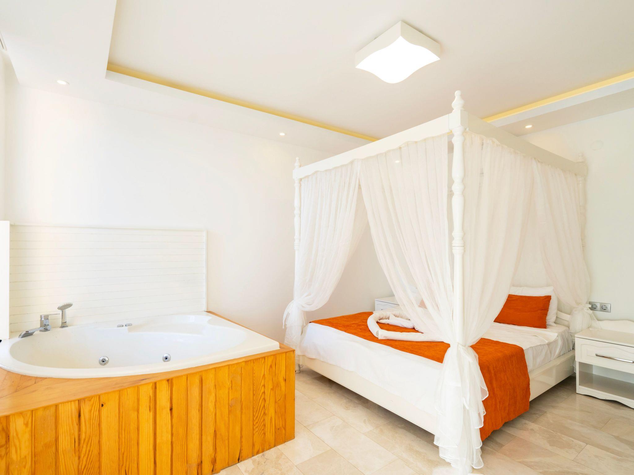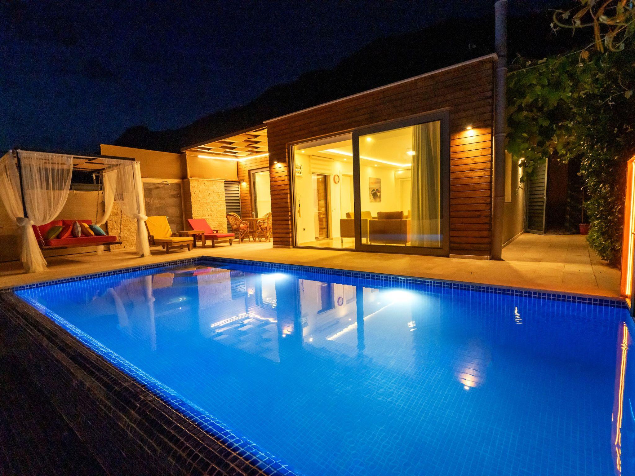 The villa, which is located in the Kördere area of Kalkan, is a wedding villa with a breathtaking view of the sea and the islands. It has 1 bedroom and can accommodate 2 people. With its stylish and simple architecture, the villa is one of the perfect addresses for your dream honeymoon.