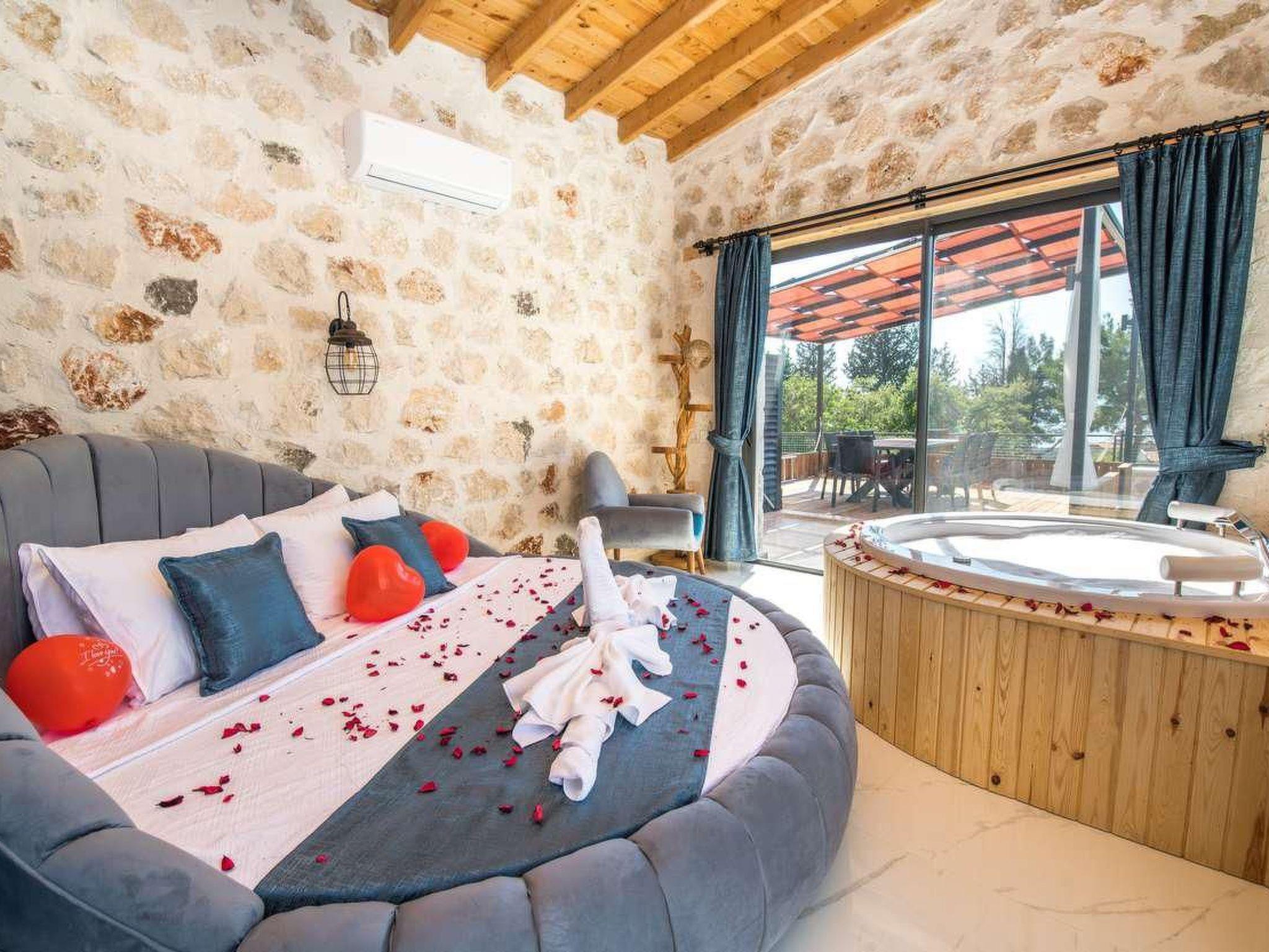 Discover the beauty and tranquillity of the Turkish countryside with a stay in this enchanting natural stone villa in Kalkan Üzümlü. Just 9 km from the centre, this unique accommodation sleeps up to 6 people and boasts an indoor pool and stunning views of the surrounding mountains.