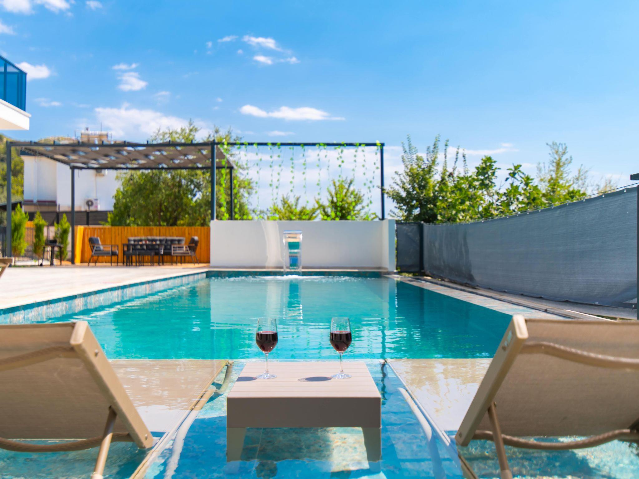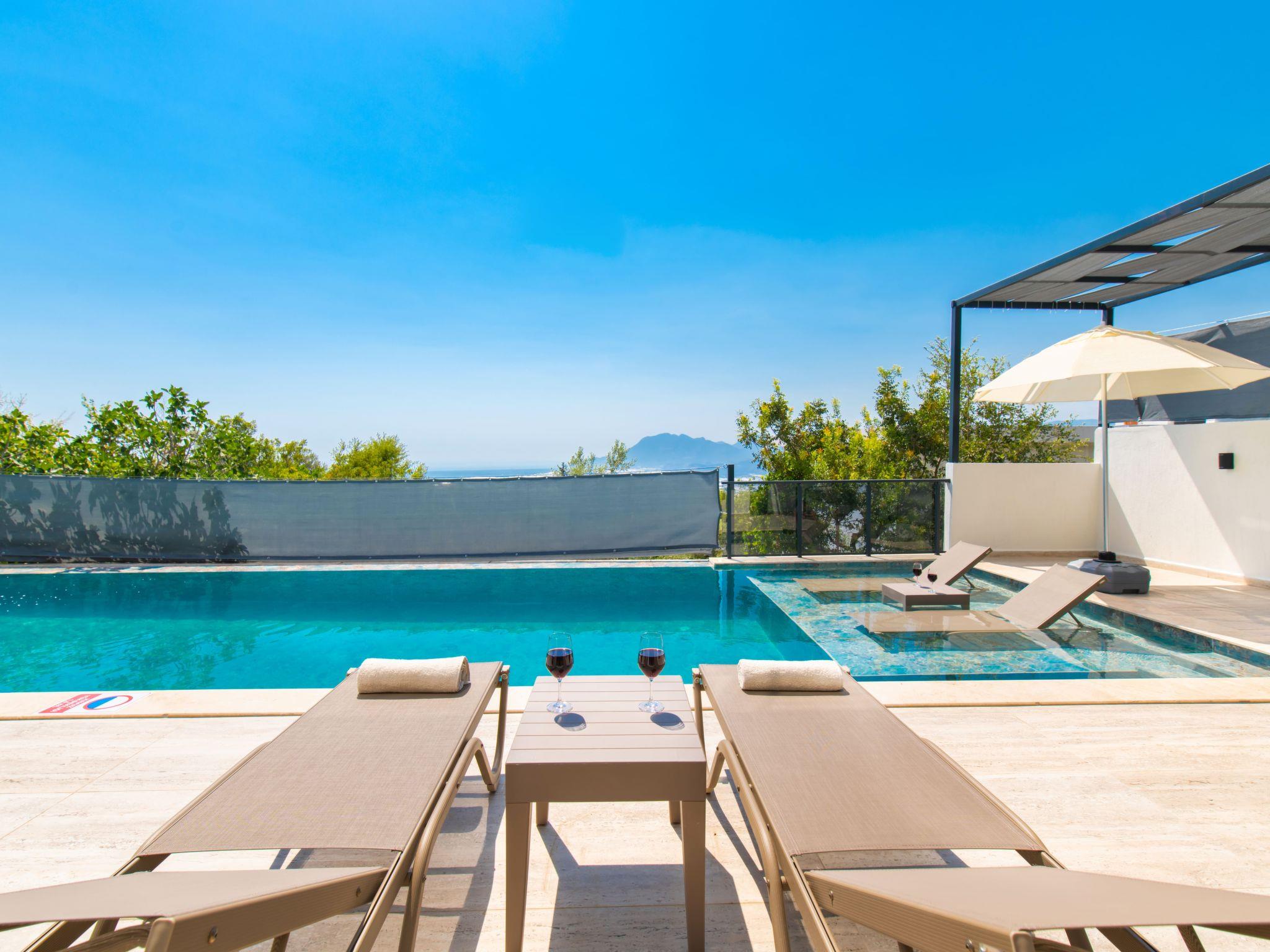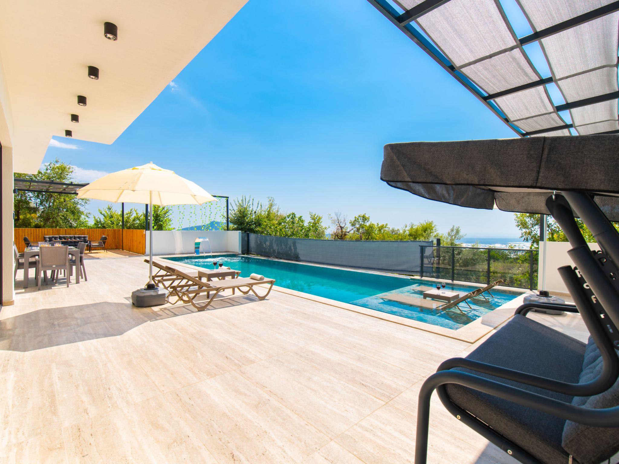 The outside area of the holiday home is just as impressive as the inside. A private pool invites you to take a refreshing dip, while the spacious terrace and balcony are perfect places to enjoy the warm evenings. The garden, which is for exclusive use, offers plenty of space for outdoor relaxation and for children to play safely.