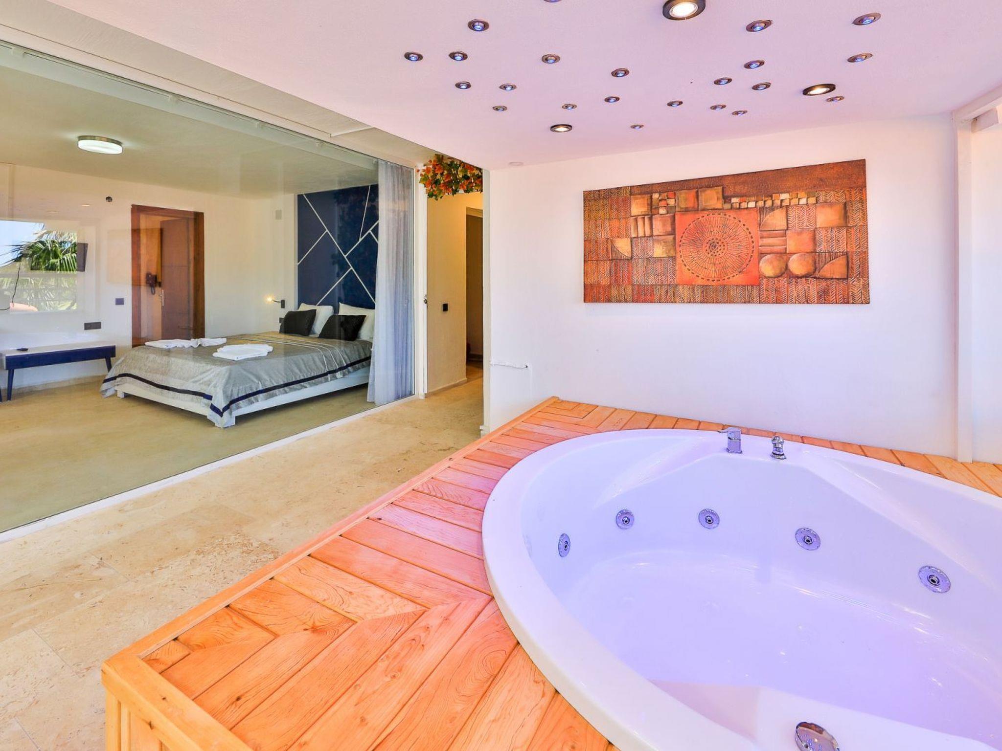 Inside the detached holiday home, you will find a fully equipped living area that leaves nothing to be desired. Each of the four bedrooms is comfortably furnished and, together with the four bathrooms, offers sufficient privacy for all guests. In addition to the practical equipment with air conditioning in all areas, washing machine, dishwasher and coffee machine, this holiday home promises a carefree holiday with all amenities.