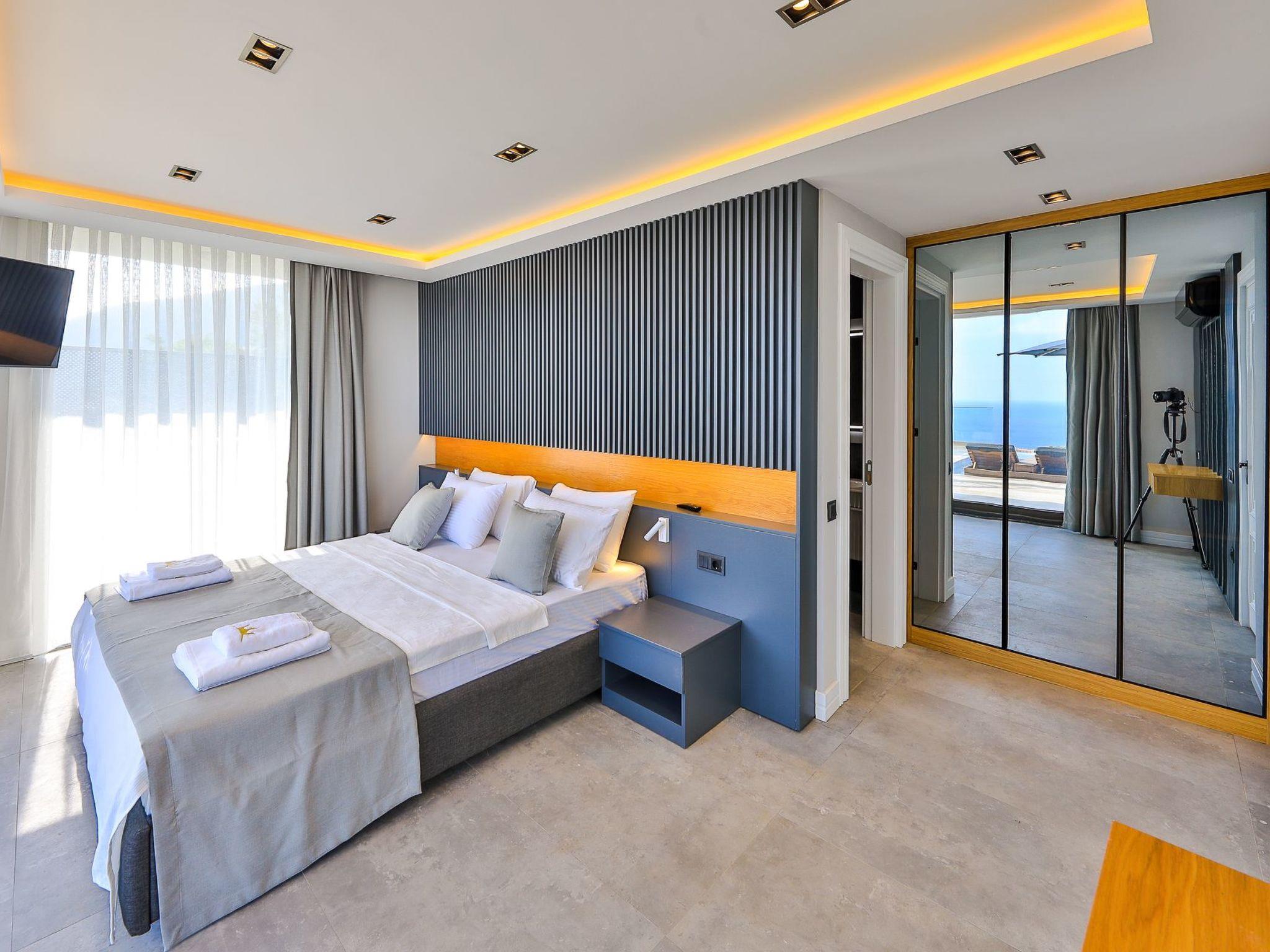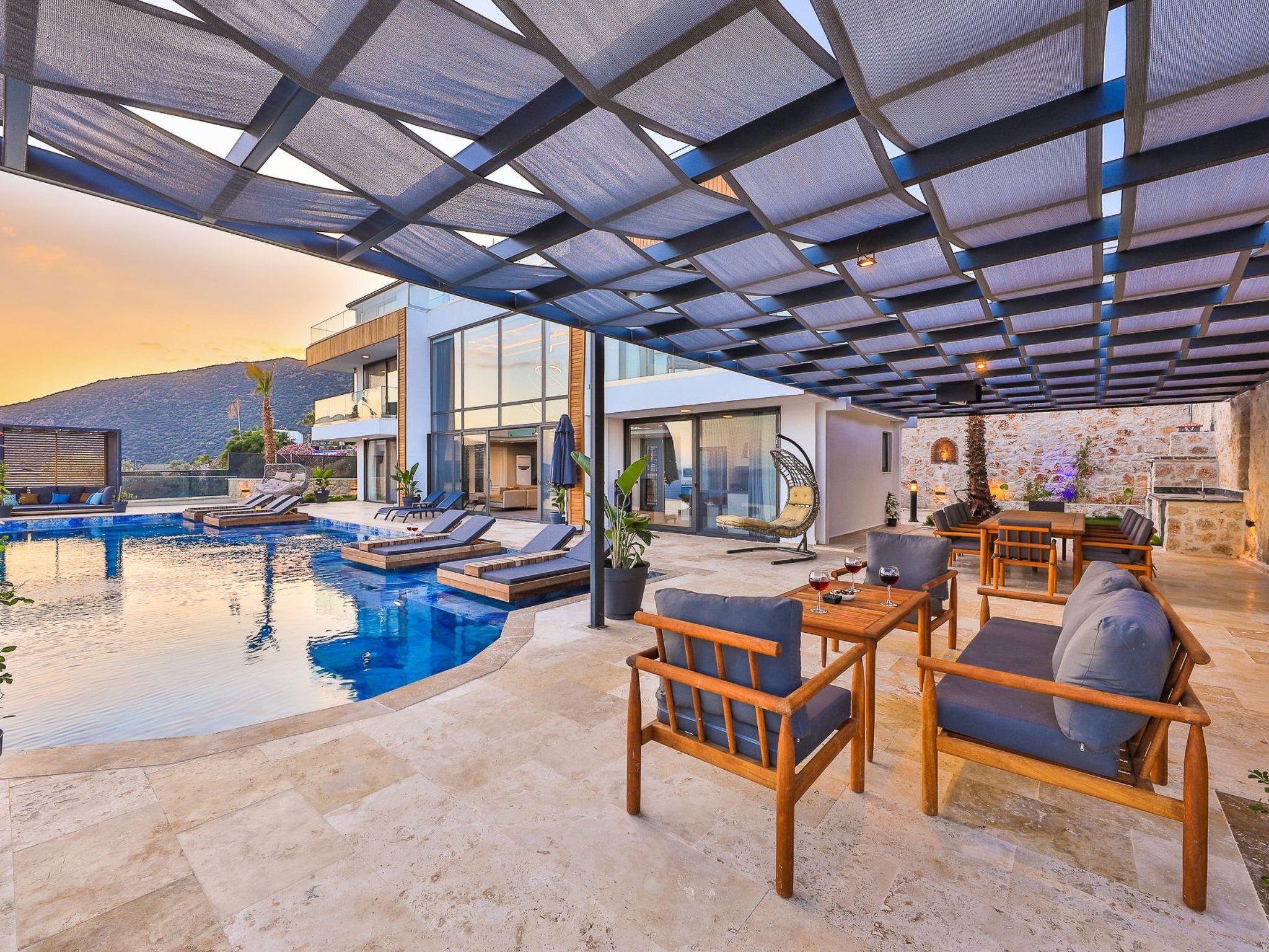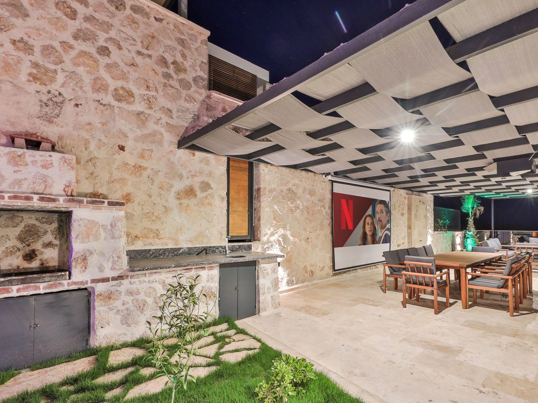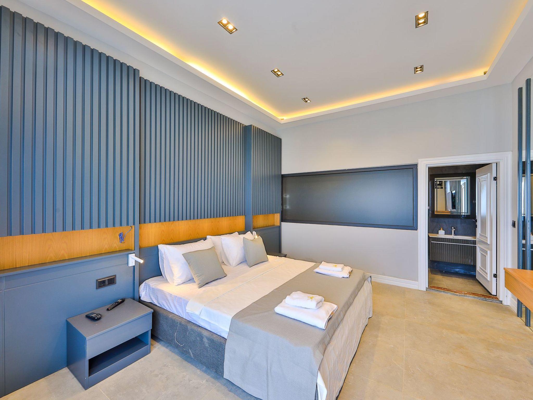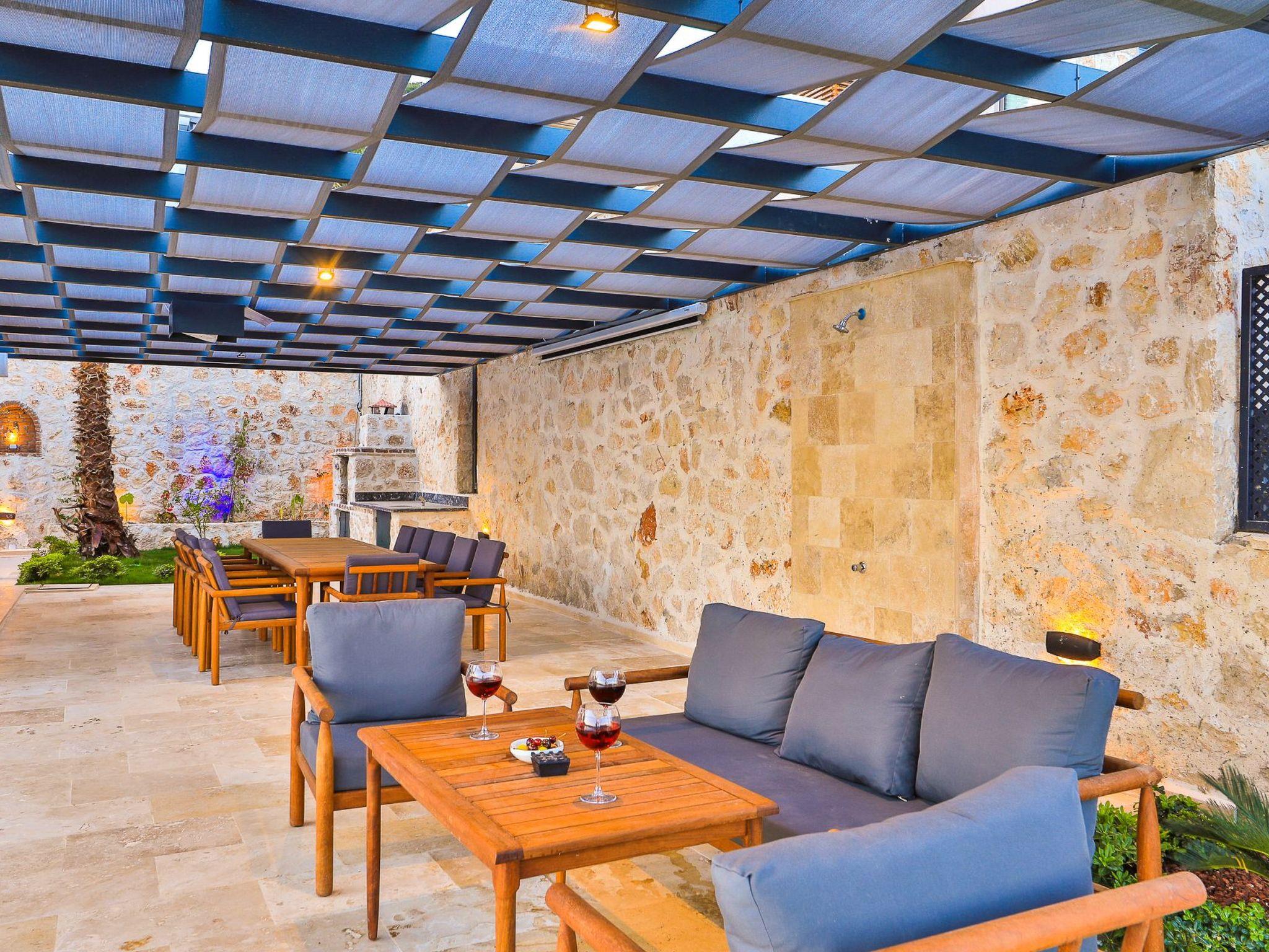Discover the perfect destination for your next holiday in a charming holiday home in Gelemis, Kas, an idyllic place in Anatolia. Furnished to comfortably accommodate up to 12 people, this accommodation is ideal for larger families or groups of friends who value comfort and privacy. Each of the six bedrooms has its own bathroom, providing additional privacy and comfort during your stay.
