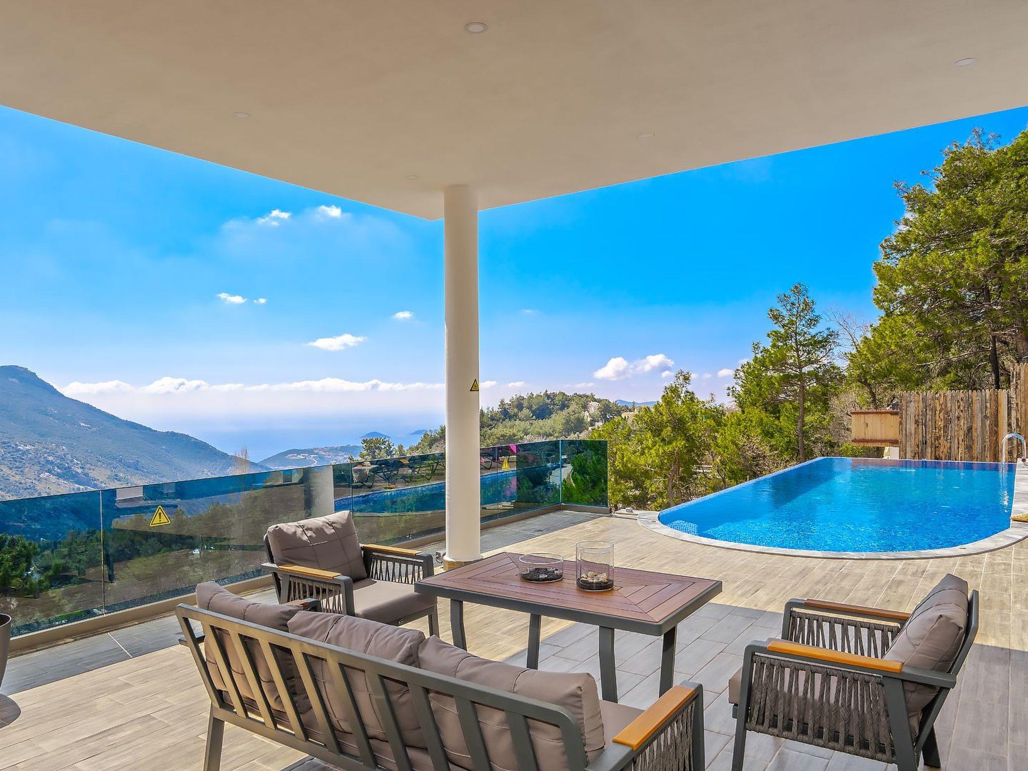 With 2 bedrooms and 2 bathrooms, this villa can accommodate up to 4 people who want to enjoy a relaxing and luxurious holiday amidst the breathtaking scenery of Kalkan.the villa is equipped with modern amenities and offers beautiful views of the sea, nature and the valley. From the terrace you can enjoy the view of the island while relaxing in the jacuzzi and enjoying the tranquillity of the surroundings.