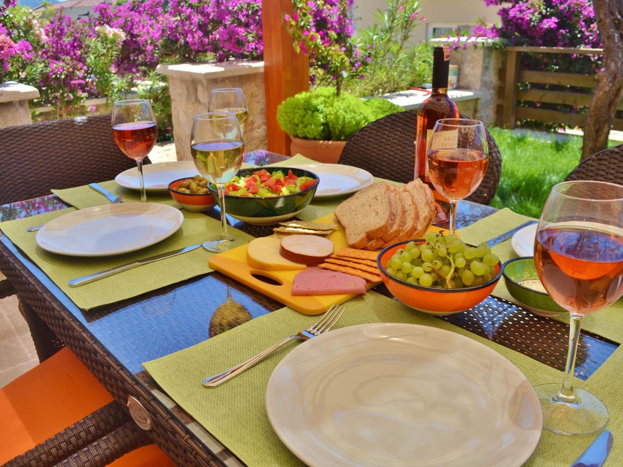 Inside, the holiday home has all the amenities you need to make your stay pleasant and carefree. This includes not only three cosy bedrooms that can be perfectly darkened for a restful night, but also two modern bathrooms with shower. Air conditioning in all rooms ensures a pleasant indoor climate even at high temperatures, while the washing machine, gas cooker, dishwasher and kettle, which are available for exclusive use, complete the comfort. The use of solar energy emphasises the environmentally friendly concept of this house.