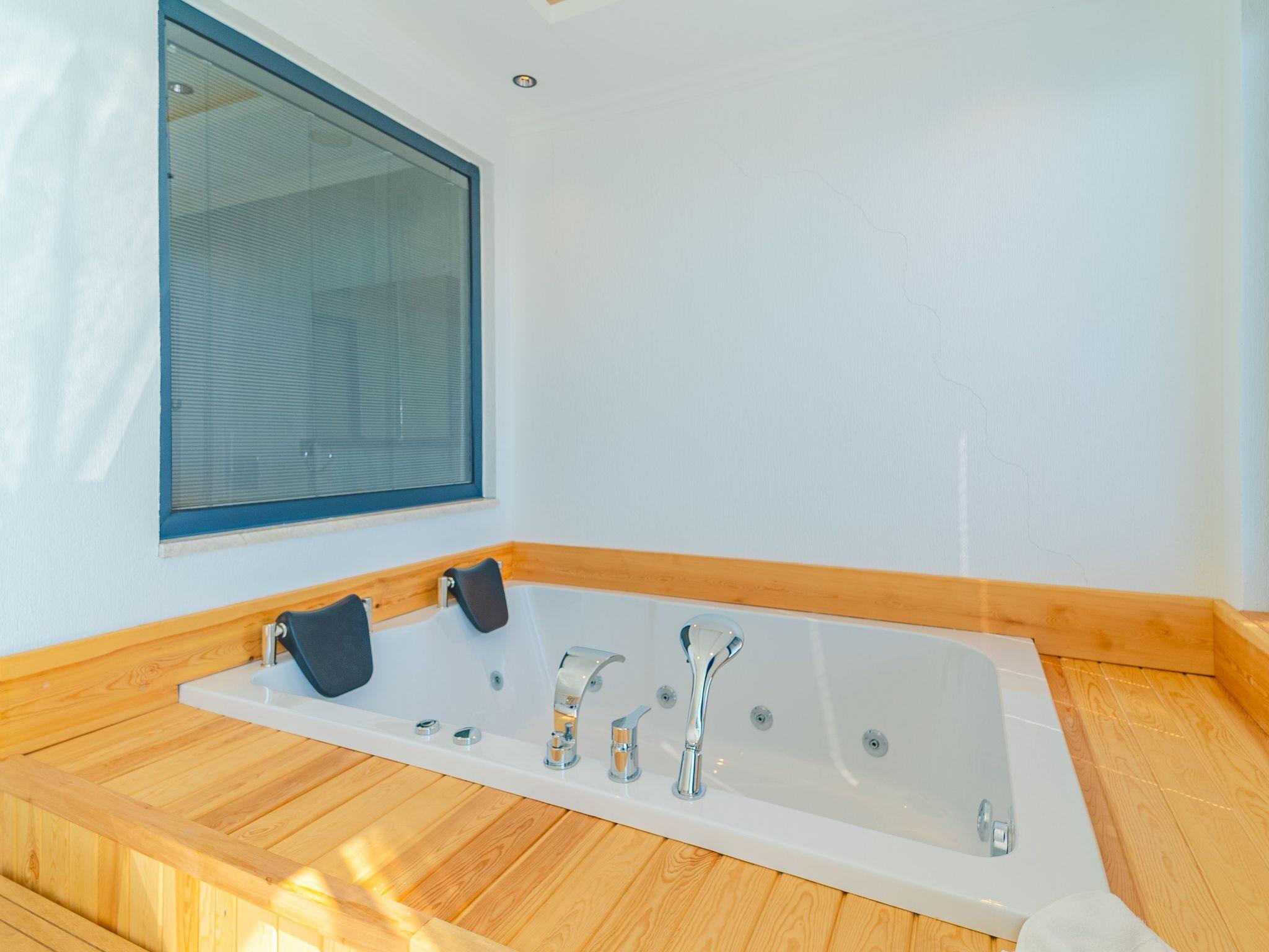 The outdoor area of this detached holiday home not only offers a breathtaking sea view, but also an exclusive terrace and a balcony for relaxing moments in the open air. The private pool invites you to swim and sunbathe undisturbed, while you can unwind in the spacious garden - ideal for those who value privacy and tranquillity.