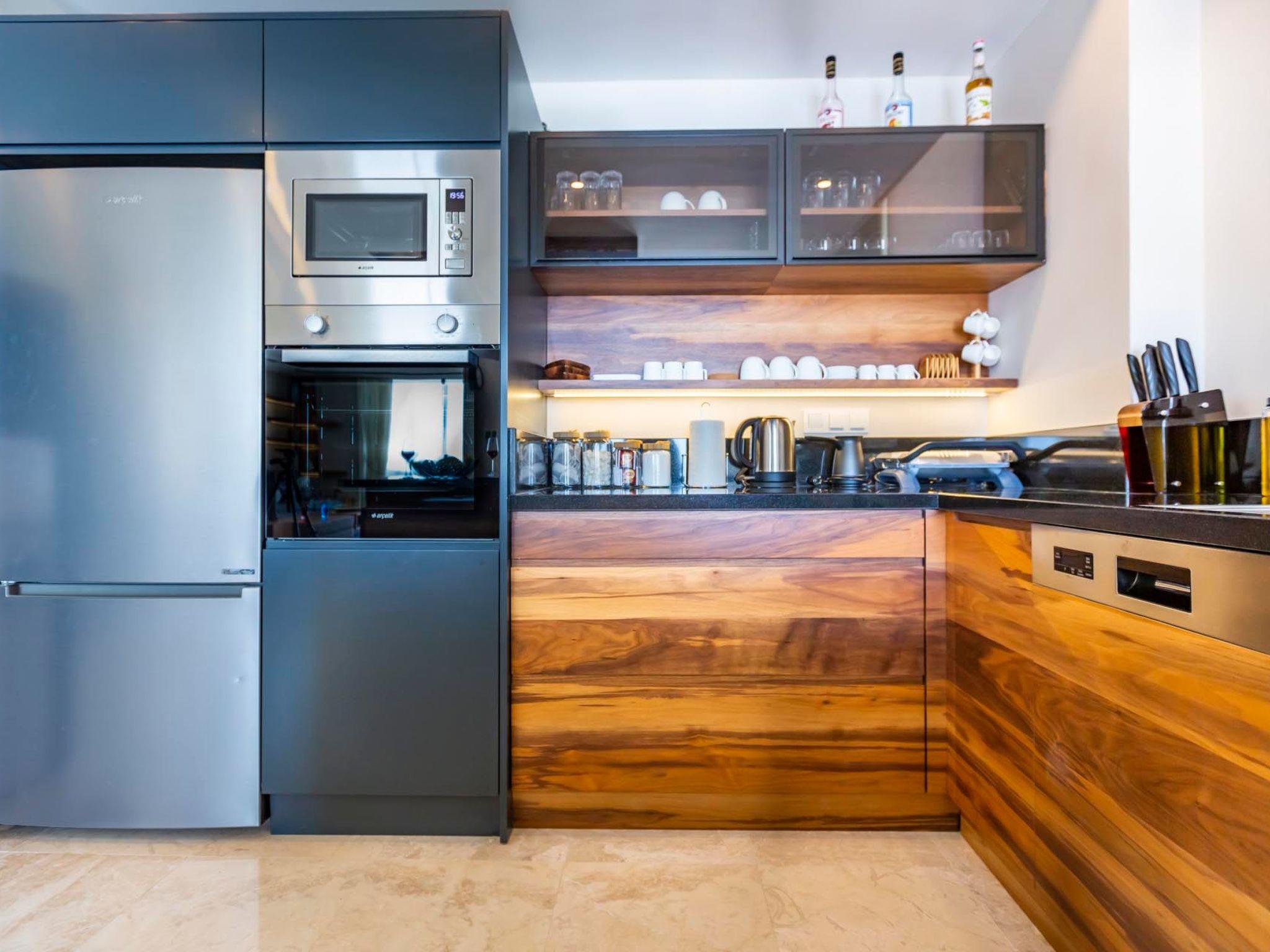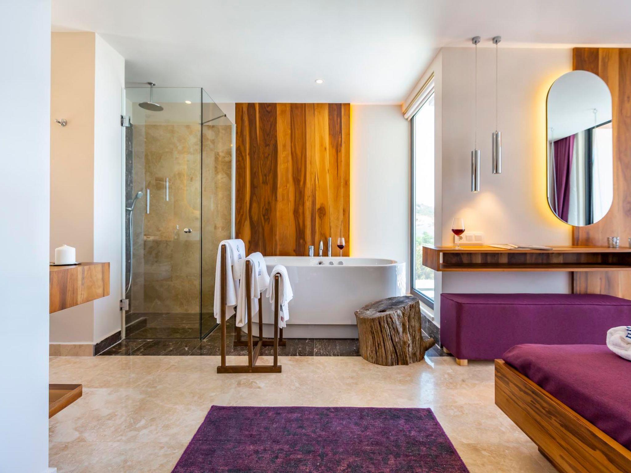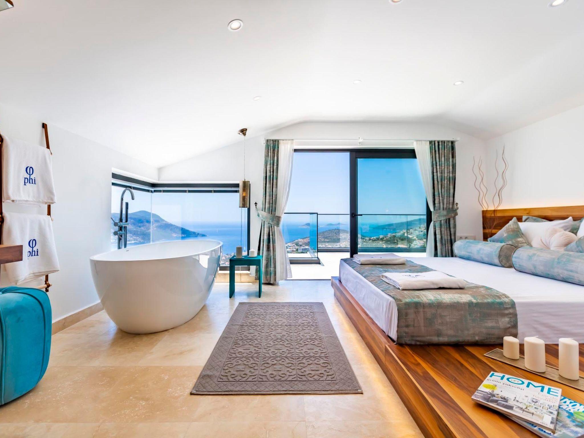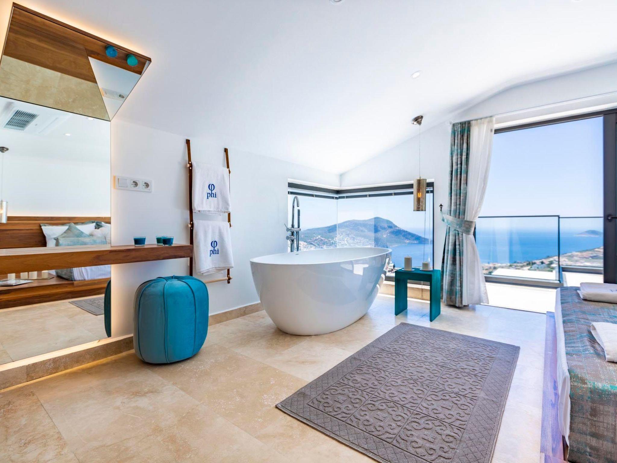 In a prime location in Kalkan, this holiday home is just a short walk from the charming town centre, where you can discover local restaurants, cafés and boutiques. The proximity to the beach and the sea (both approx. 1500m away) allows you to experience the beauty of the coastal region at first hand. There is also a grocery store just 500m away, making self-catering on holiday easy.