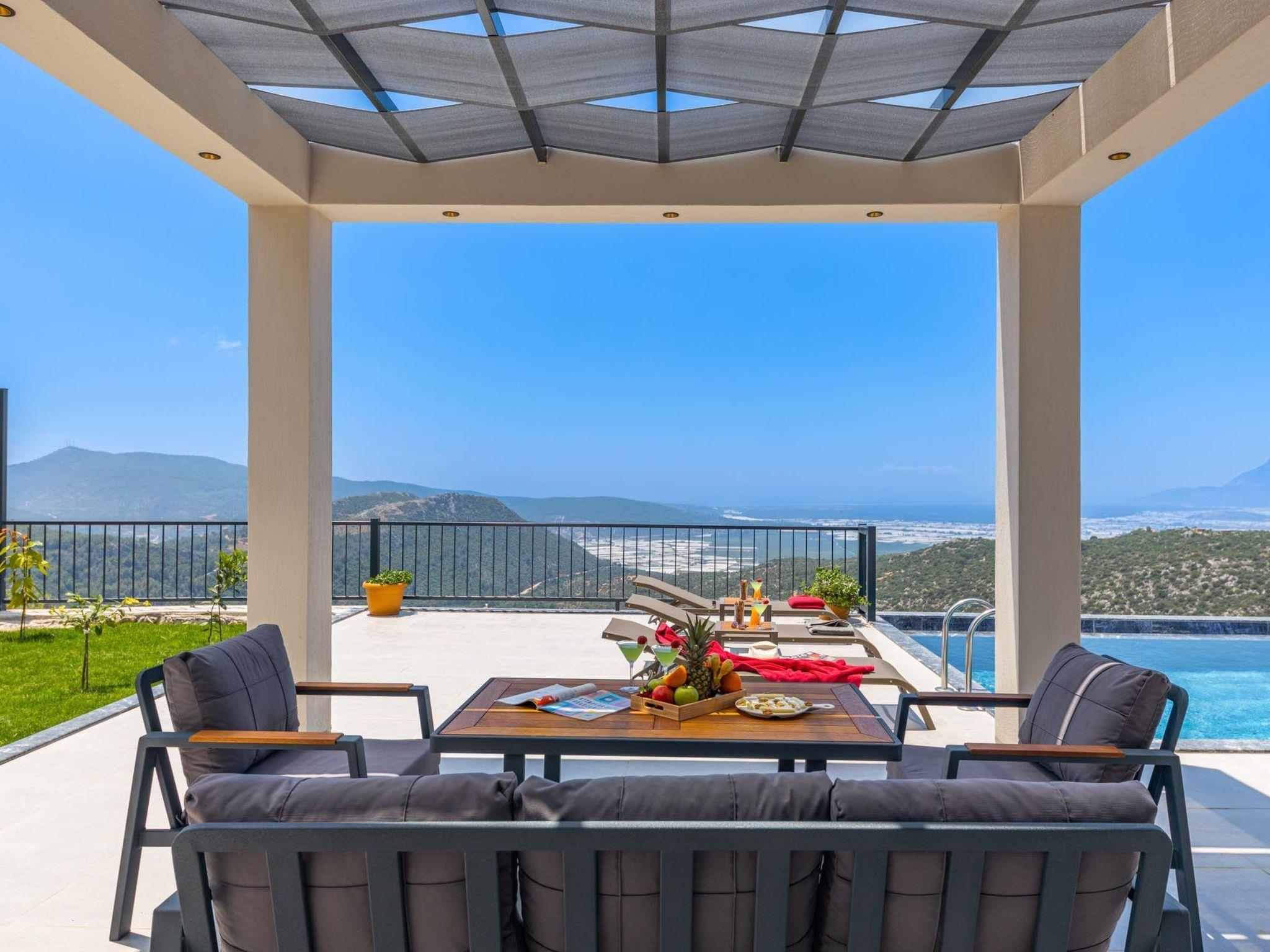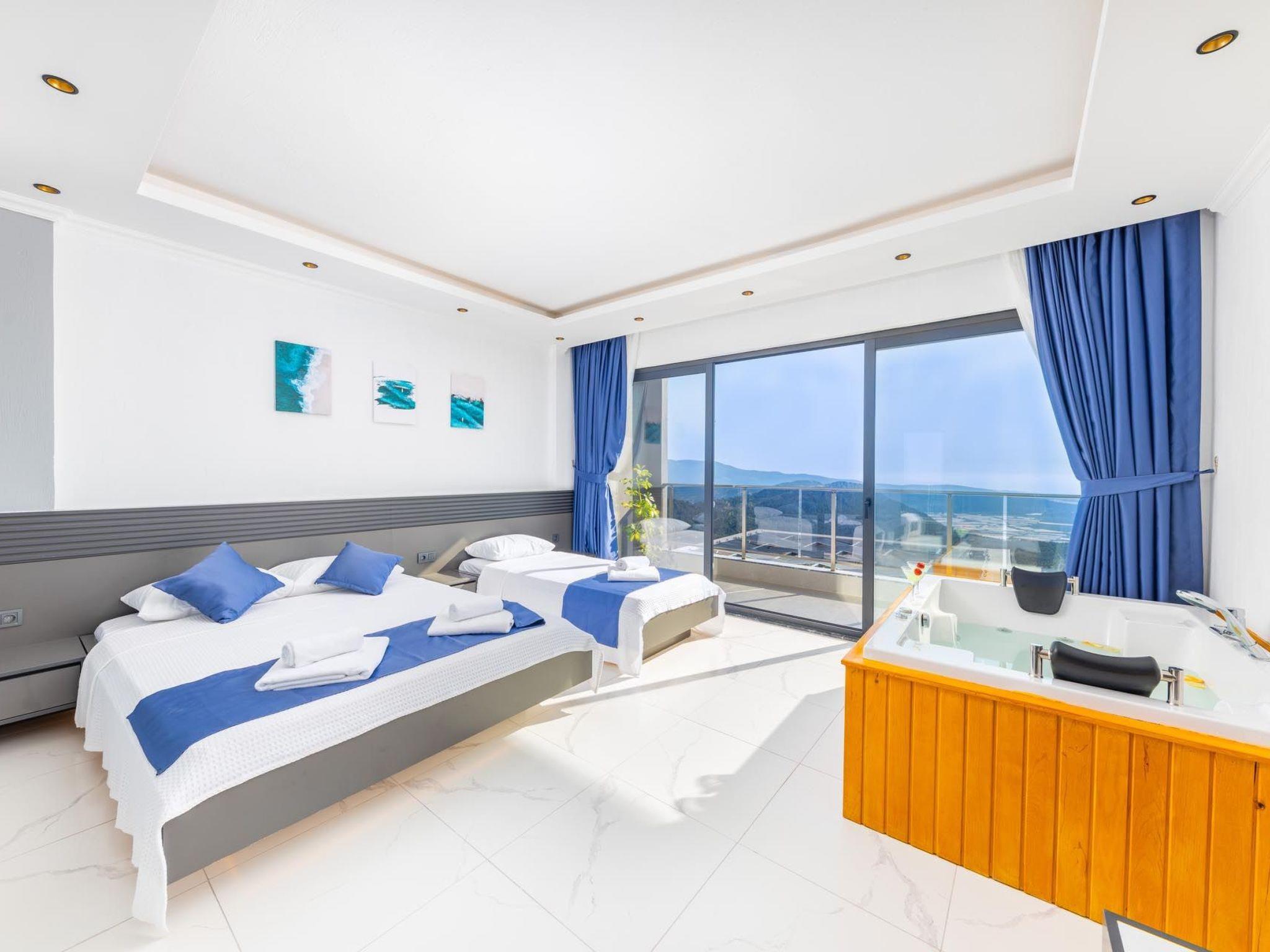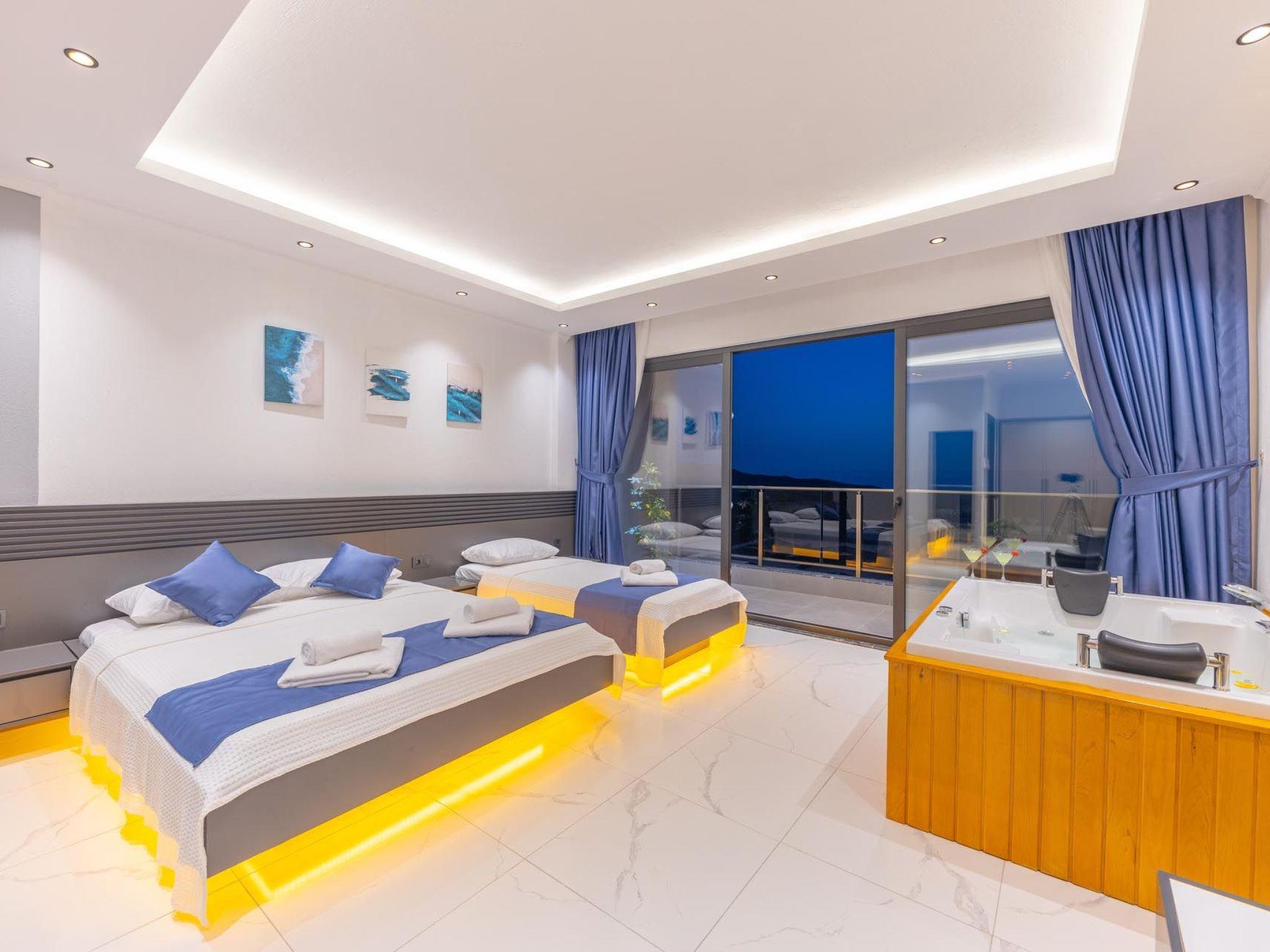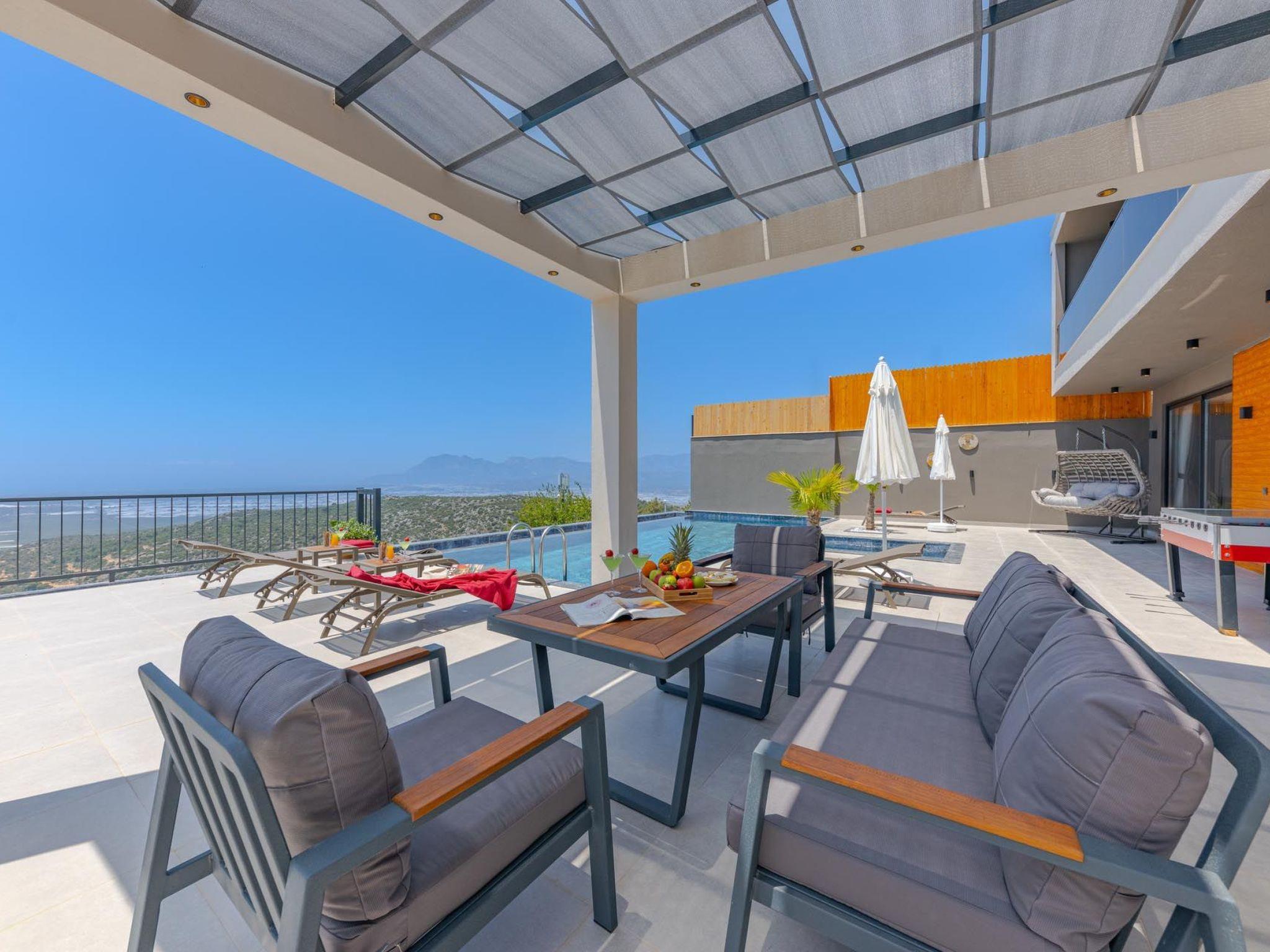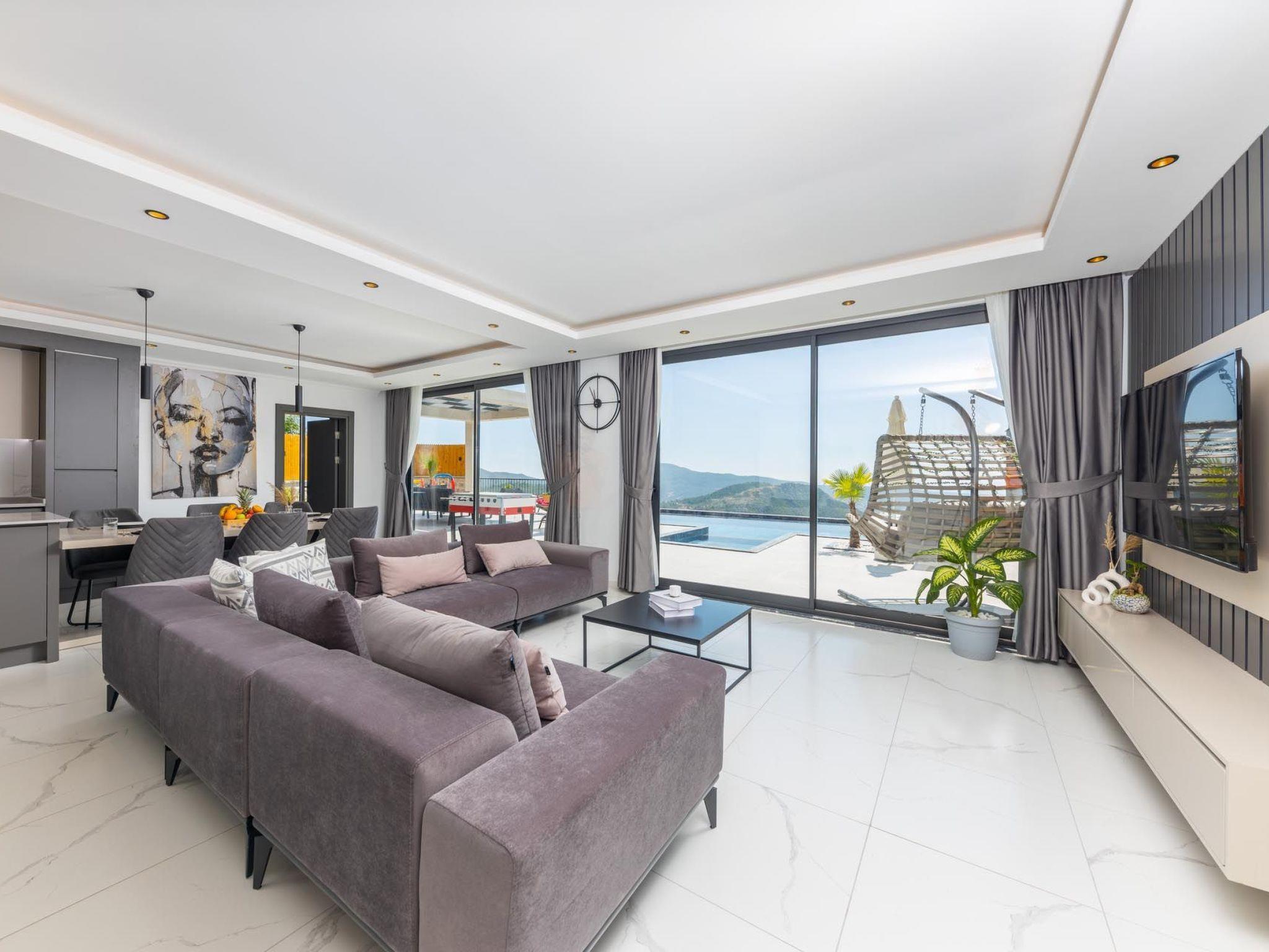 The villa is a luxurious villa located in Üzümlü, a quiet area and the best holiday resort of Kalkan. It offers a breathtaking view and you can even see the world famous Patara beach with a length of 13 km in the distance. The villa is spacious and has a special children's playground, a park and a garden area for families with children. The pool and pool terrace are generously designed and offer privacy. Therefore, the villa is an ideal choice for conservative families and honeymoon couples. The villa consists of a total of 2 suites. On the ground floor there is a modern kitchen and a living room. Thanks to the bed in the cinema room in the basement, a total of 7 people can be accommodated. Our villa offers a marvellous view from every room and provides a comfortable service with its sauna. There is a hot tub in both rooms, making it a villa with two hot tubs. With all these features, our villa awaits its valued guests. In addition, there is table tennis and table football for your entertainment in the villa.