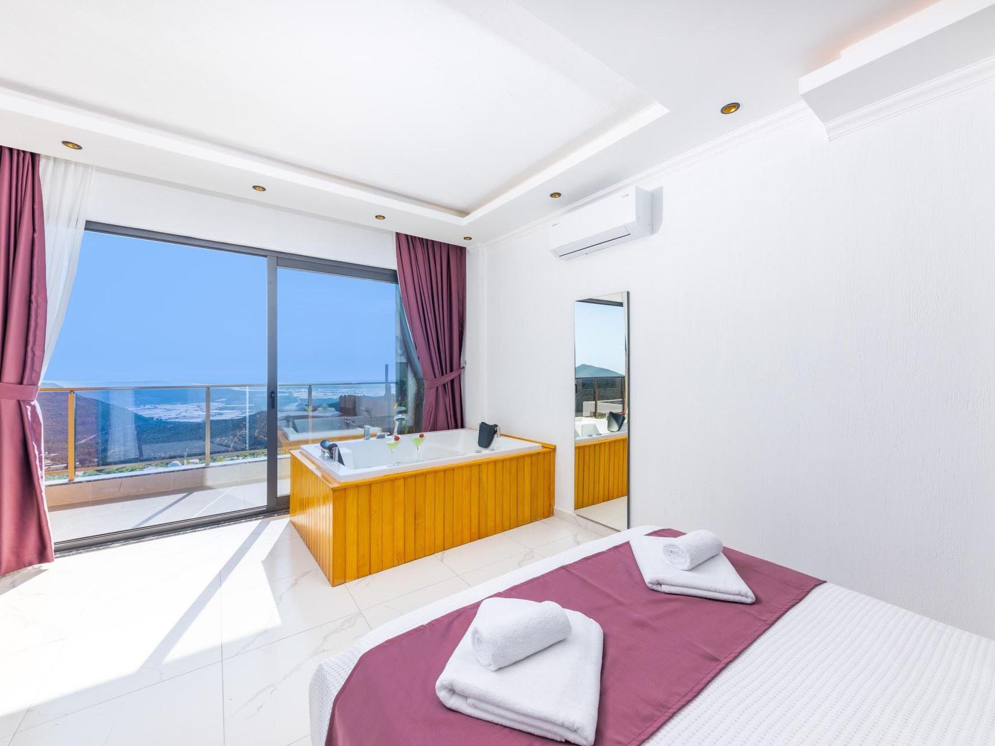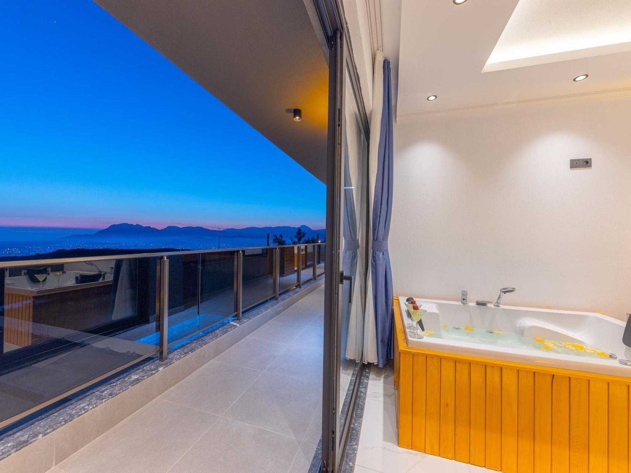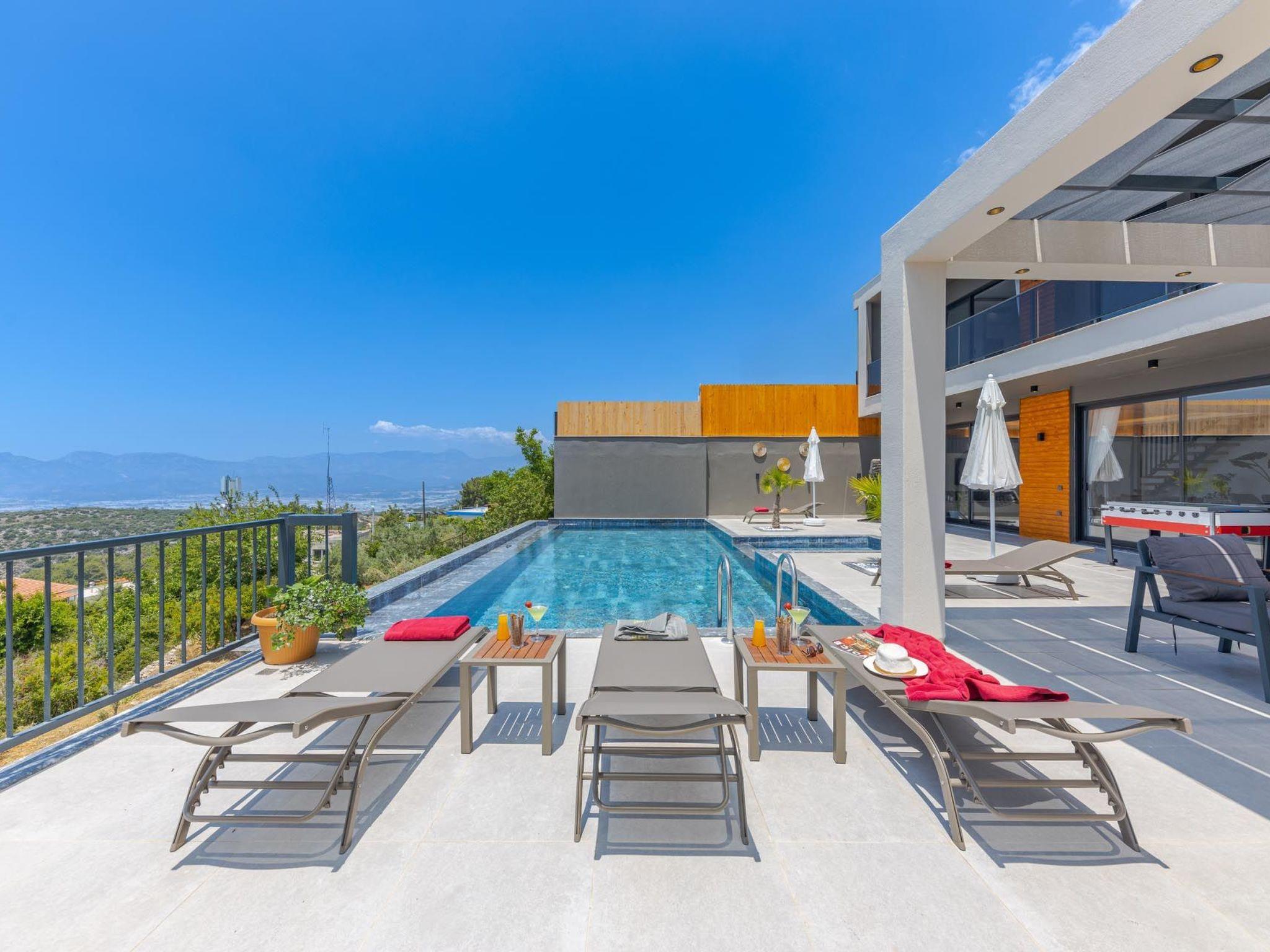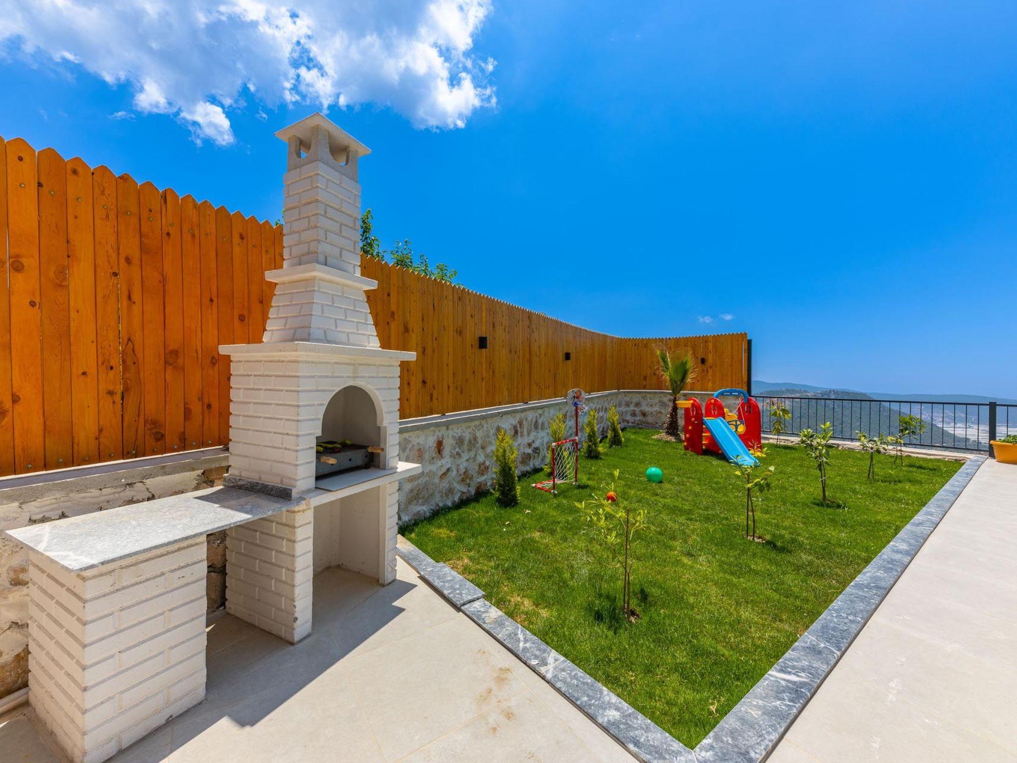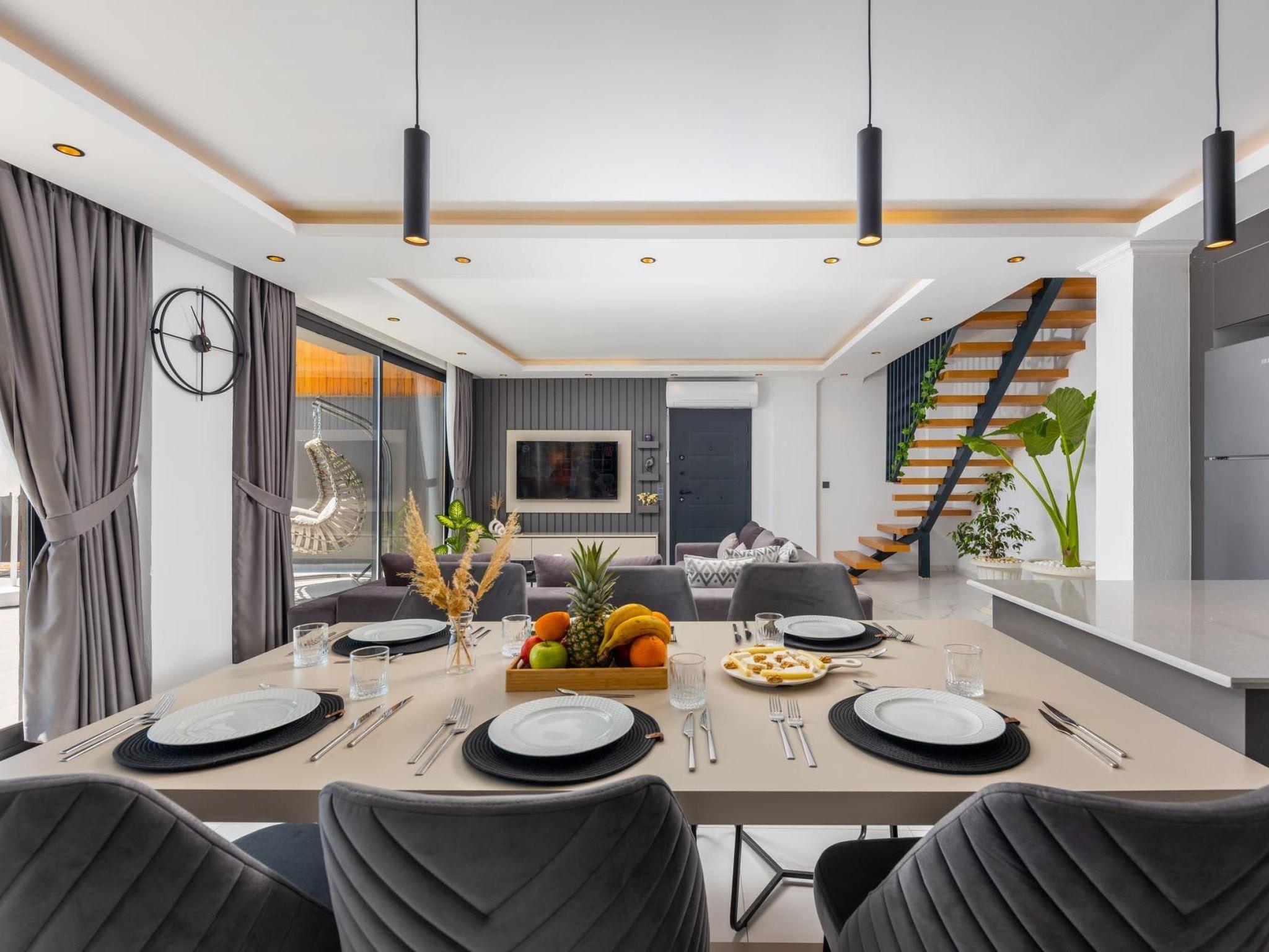 The villa is a luxurious villa located in Üzümlü, a quiet area and the best holiday resort of Kalkan. It offers a breathtaking view and you can even see the world famous Patara beach with a length of 13 km in the distance. The villa is spacious and has a special children's playground, a park and a garden area for families with children. The pool and pool terrace are generously designed and offer privacy. Therefore, the villa is an ideal choice for conservative families and honeymoon couples. The villa consists of a total of 2 suites. On the ground floor there is a modern kitchen and a living room. Thanks to the bed in the cinema room in the basement, a total of 7 people can be accommodated. Our villa offers a marvellous view from every room and provides a comfortable service with its sauna. There is a hot tub in both rooms, making it a villa with two hot tubs. With all these features, our villa awaits its valued guests. In addition, there is table tennis and table football for your entertainment in the villa.
