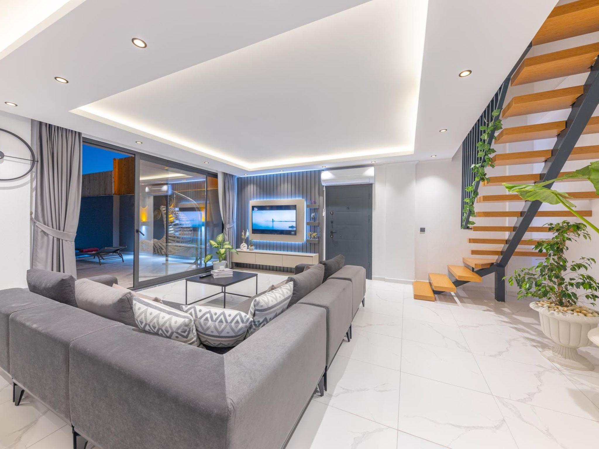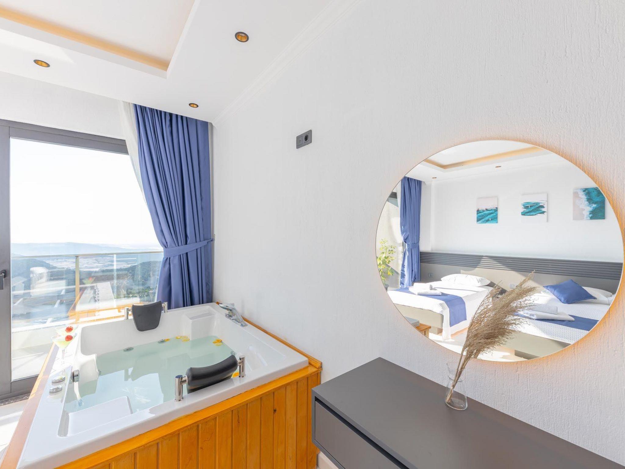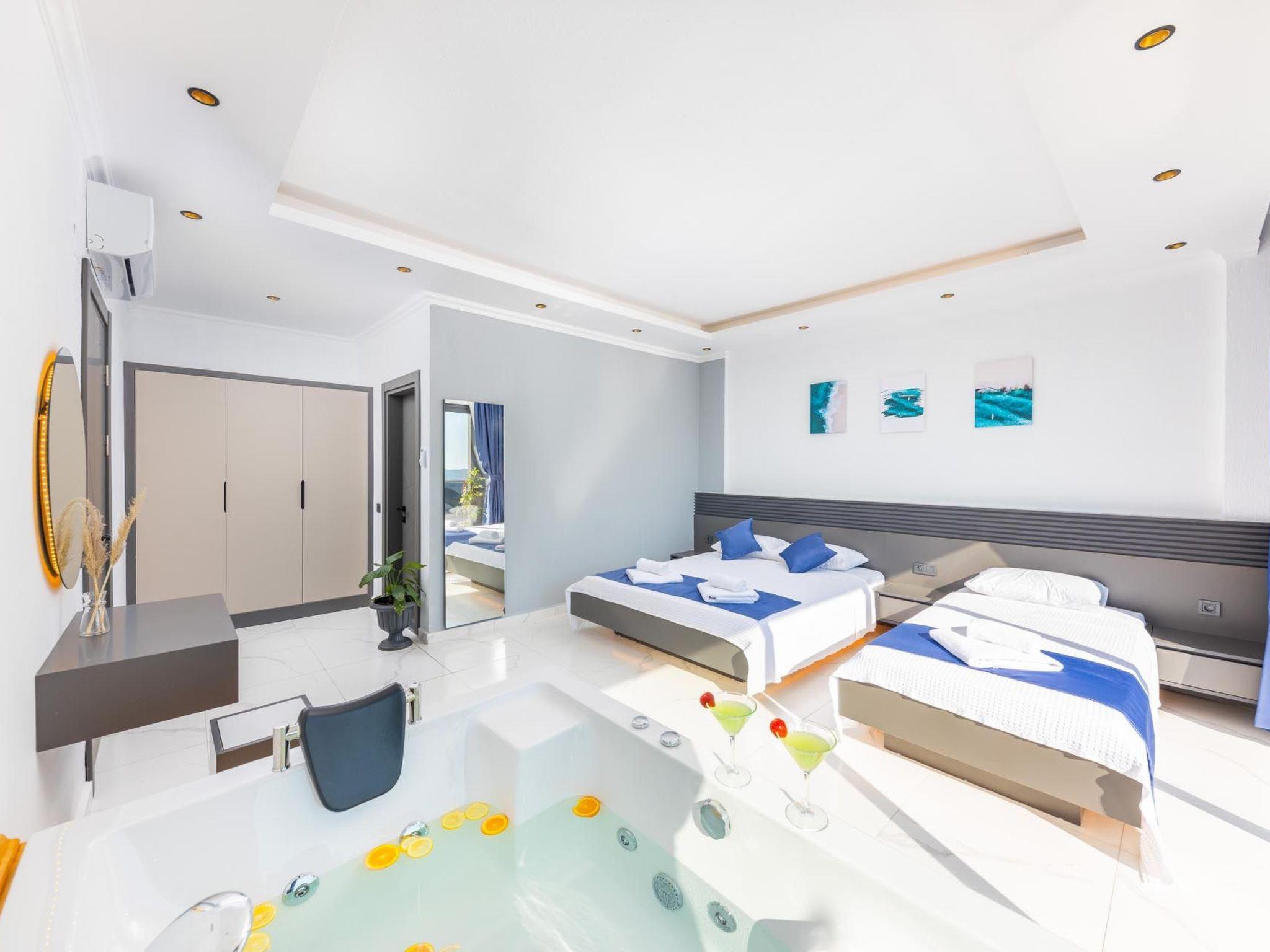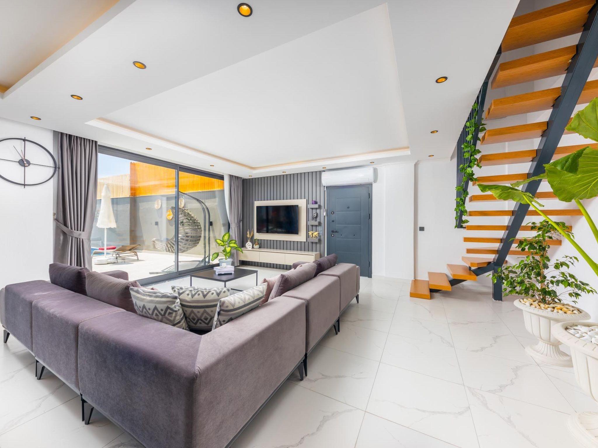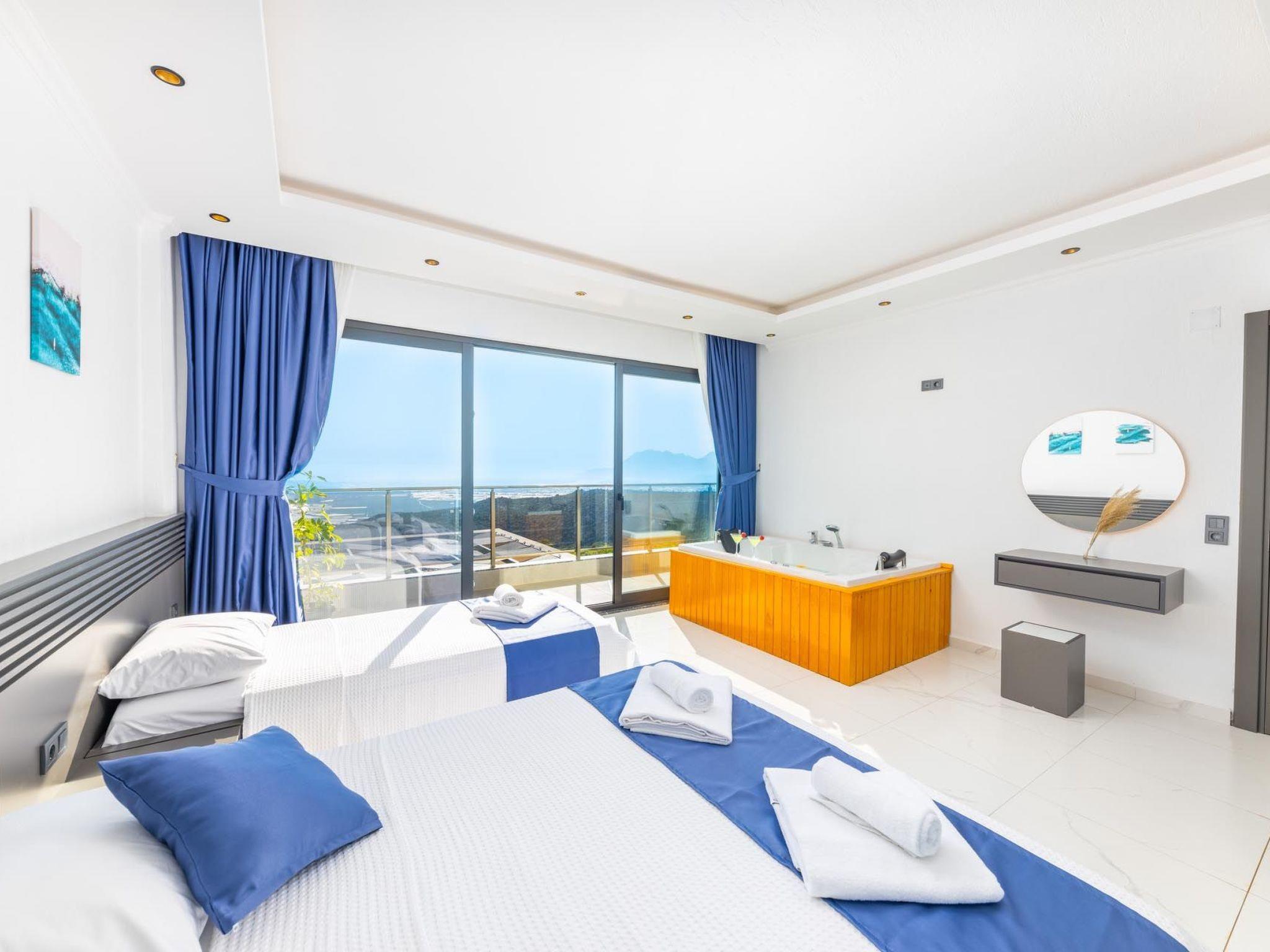 The villa is a luxurious villa located in Üzümlü, a quiet area and the best holiday resort of Kalkan. It offers a breathtaking view and you can even see the world famous Patara beach with a length of 13 km in the distance. The villa is spacious and has a special children's playground, a park and a garden area for families with children. The pool and pool terrace are generously designed and offer privacy. Therefore, the villa is an ideal choice for conservative families and honeymoon couples. The villa consists of a total of 2 suites. On the ground floor there is a modern kitchen and a living room. Thanks to the bed in the cinema room in the basement, a total of 7 people can be accommodated. Our villa offers a marvellous view from every room and provides a comfortable service with its sauna. There is a hot tub in both rooms, making it a villa with two hot tubs. With all these features, our villa awaits its valued guests. In addition, there is table tennis and table football for your entertainment in the villa.