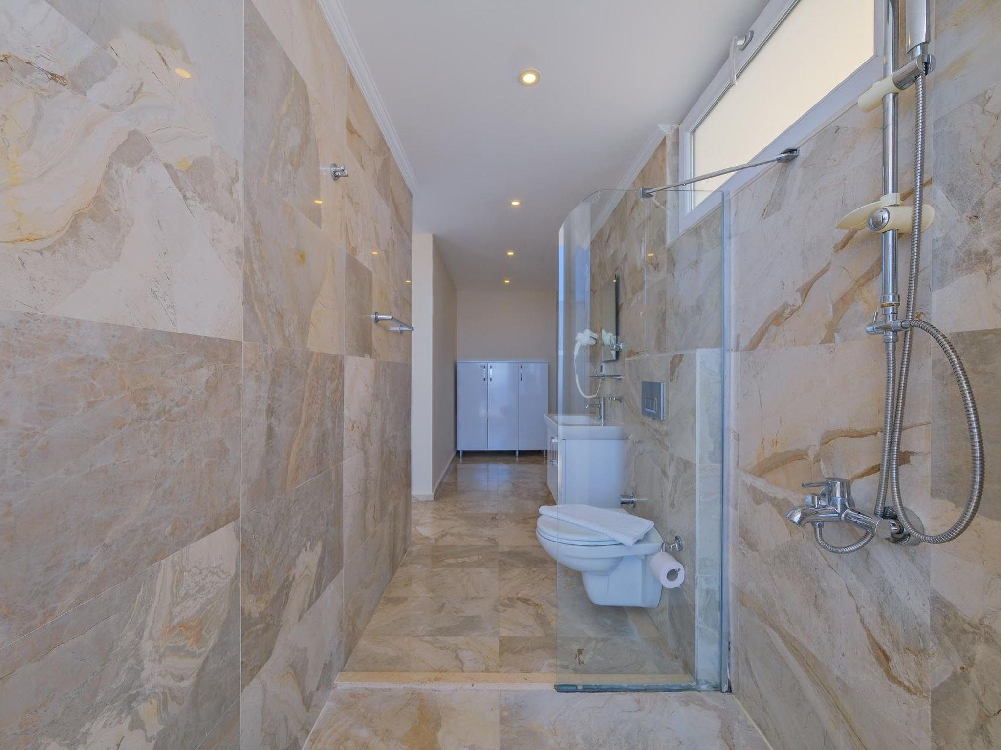 Inside, an often refreshing oasis of calm awaits you. The bedrooms are designed to allow maximum darkness for a restful night's sleep, while the centrally controlled air conditioning ensures comfortable temperatures throughout the villa. Each bedroom also has its own bathroom, ensuring privacy and comfort for all guests. The comprehensive facilities also include practical amenities such as a washing machine, gas cooker and dishwasher, so you can feel right at home during your stay.