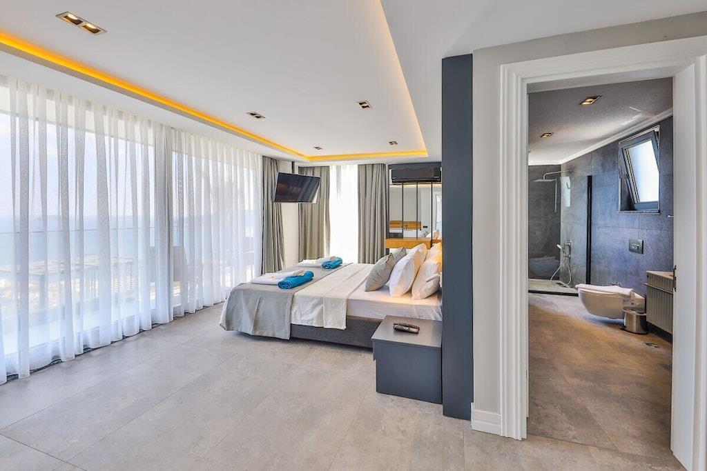 Denne luksuriøse villa ligger i den eksklusive Kalamar-bugt, et af de mest eftertragtede områder i Kalkan. Med seks rummelige soveværelser kan den rumme op til 12 personer. Ligesom nogle af vores andre premium-villaer kan du nyde en betagende panoramaudsigt over Kalkanhavet fra alle værelser. En dekorativ infinity-pool fuldender denne eksklusive ferieoplevelse perfekt.
