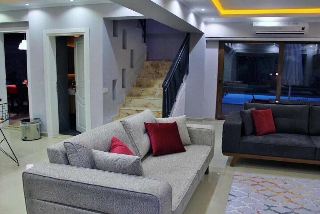 Villaen har to rummelige soveværelser med komfortable senge og sengetøj, der sikrer en god nattesøvn. Hvert soveværelse har adgang til et privat badeværelse med bruser og toilet. Stuen er lys og luftig og tilbyder et hyggeligt siddeområde, perfekt til afslapning. Herfra har du adgang til en stor terrasse med havudsigt, perfekt til romantiske aftener for to eller til afslapning med et glas vin. Køkkenet er fuldt udstyret med alle nødvendige apparater og redskaber, du har brug for til selvforplejning.