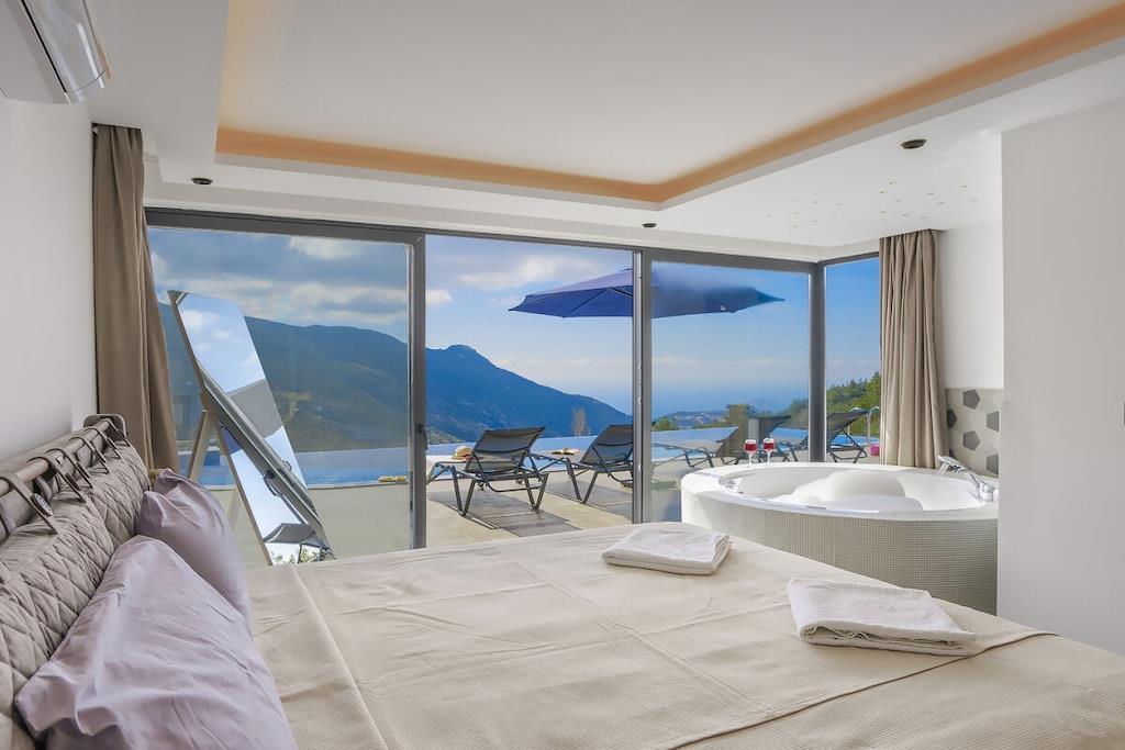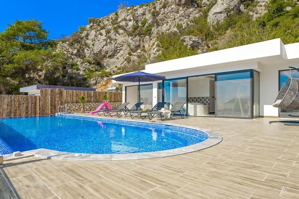 Villa Vil, et smukt og moderne feriested i Kalkan Islamlar. Med 2 soveværelser og 2 badeværelser kan denne villa rumme op til 4 personer, der ønsker at nyde en afslappende og luksuriøs ferie midt i Kalkans fantastiske natur. Villaen er udstyret med moderne bekvemmeligheder og tilbyder en smuk udsigt over havet, naturen og dalen. Fra terrassen kan du nyde udsigten over øen, mens du slapper af i jacuzzien og nyder roen i omgivelserne.