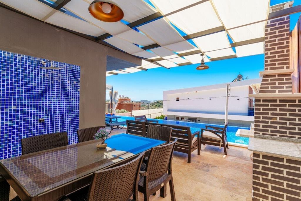 Denne luksuriøse villa med 5 soveværelser ligger i Kalkan Kördere-området og har plads til op til 10 gæster. Med sine betagende blå toner, luksuriøse design og moderne arkitektur tilbyder den en drømmeferieoplevelse. Det er den ideelle villa med havudsigt til store familier eller vennegrupper.