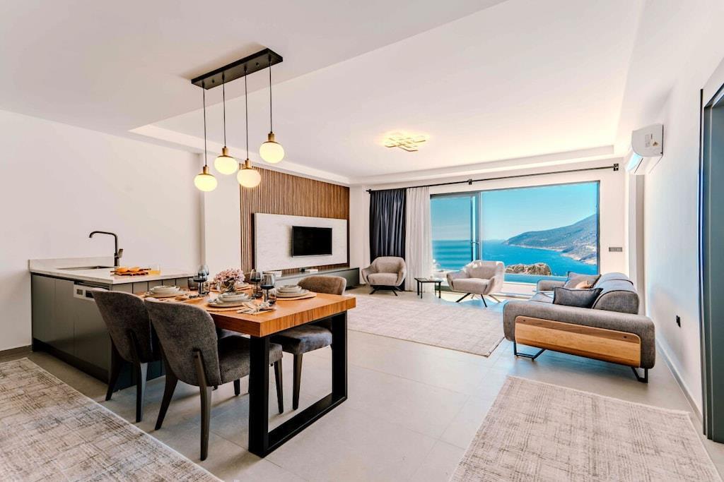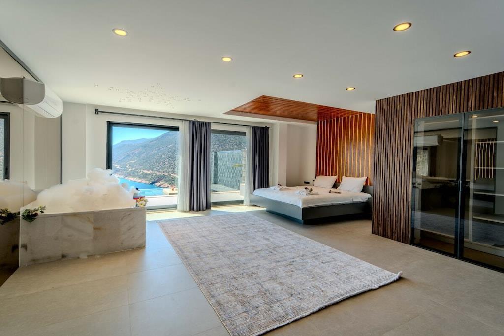 Denne luksusvilla ligger i det rolige Gökseki-distrikt i Kas og har to soveværelser med eget badeværelse og plads til fire personer. Takket være den imponerende havudsigt og de omfattende faciliteter er det en af de mest populære indkvarteringsmuligheder for gæster, der søger en virkelig afslappende ferie. Nyd afslappende timer i det private spa-område med sauna og traditionelt tyrkisk bad, eller hold hyggelige filmaftener i den stilfuldt designede hjemmebiograf. Et poolbord sørger også for underholdning – ideelt til en sjov ferie med familie eller venner. Vores villa kombinerer afslapning og luksus i perfekt harmoni – et eksklusivt tilflugtssted for par og små familier.