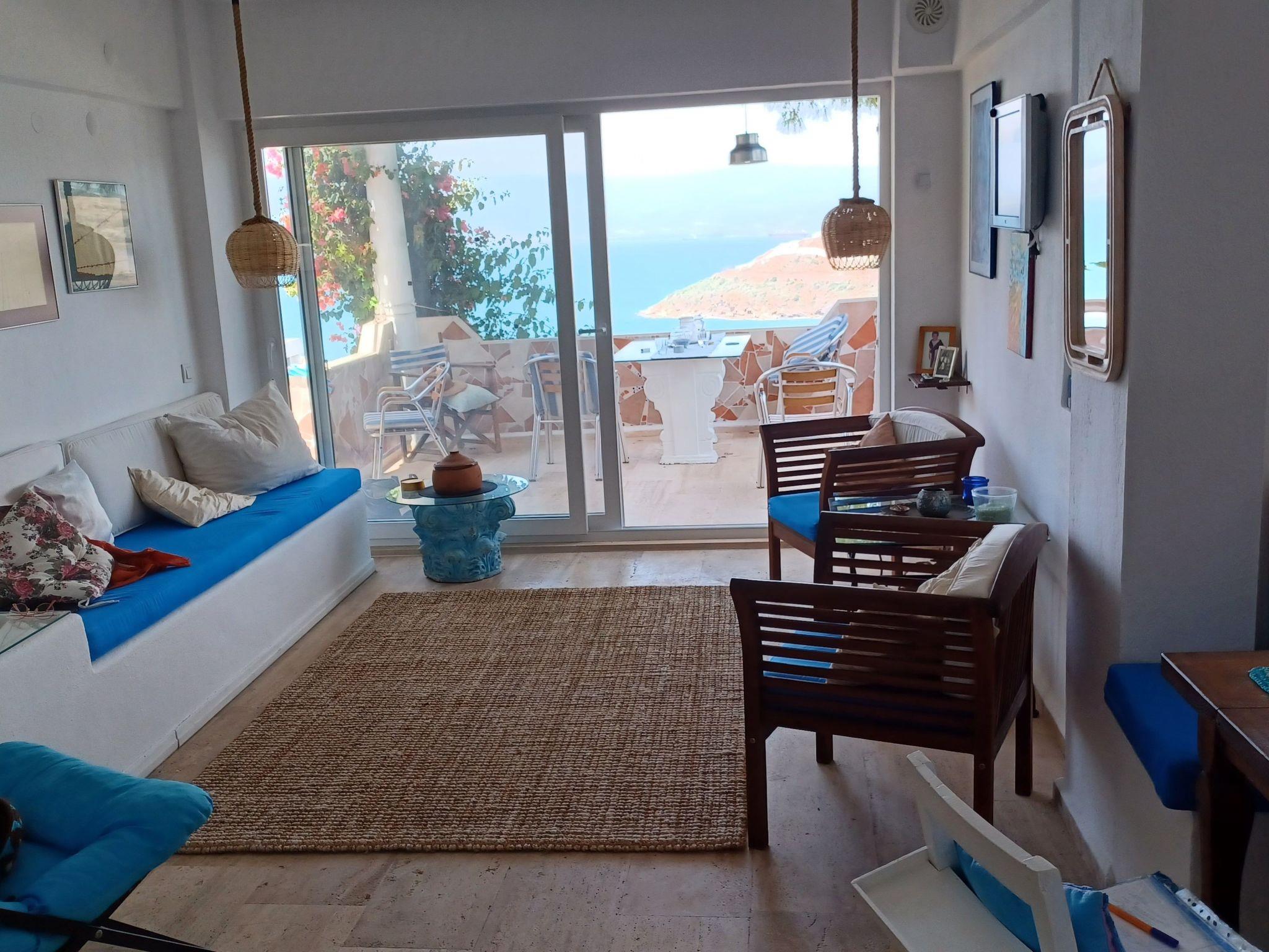 A place to feel good I would say. You sit on the terrace, the sea in front of you. No big street, no noise. Just holidayLiving room and kitchen are together and from there you go to the terrace.also in the living room you can stay well, a dining table in the living room for 5 people and comfortable large chairs to read a book.on the first floor there are 2 bedrooms.one with double bed and small balcony with sea view, the second with two beds. Plus shower and WC