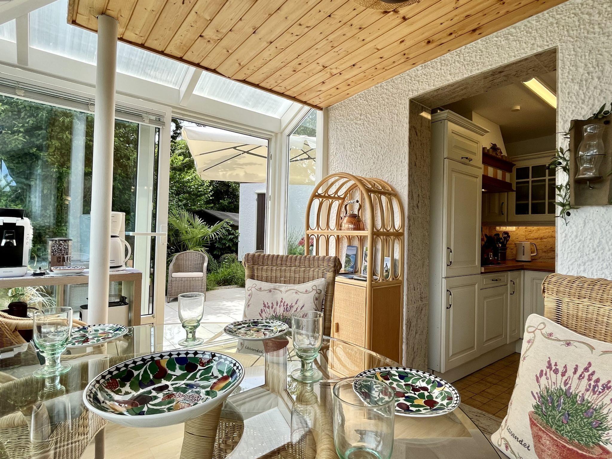 Öhningen 4 km from Stein am Rhein: Beautiful single-family house "Seepanorama", 3 storeys. In the district of Wangen, in the district Höri / westlicher Bodensee, in a sunny position on a slope, in the residential district, 300 m from the lake, 500 m from the beach, in a cul-de-sac. Private: natural state property, parking at the house. Grocery 4 km, supermarket 4 km, restaurant 900 m, bakery 4 km, pub garden 900 m, bus stop "Wangen,Pension Auer Linie 200" 100 m, railway station "Radolfzell" 16 km, grass beach "Wangen", swimming bay 500 m, public bathing area 4 km, lake Bodensee 300 m. Sports harbour 500 m, cycle lane 250 m. Nearby attractions: Museum Haus Dix 4 km, Museum Hesse 6 km, Rheinfall Schaffhausen 28 km, Insel Reichenau 50 km, Sealife Konstanz 36 km. Hiking paths: Schiener Berg, Hohentwiel, Hinterland Bodensee. For your information: The riverside road runs about 70 m below the house. In the summer months, this can be very busy at certain times of the day. However, it cannot be seen from the house (trees/bushes).