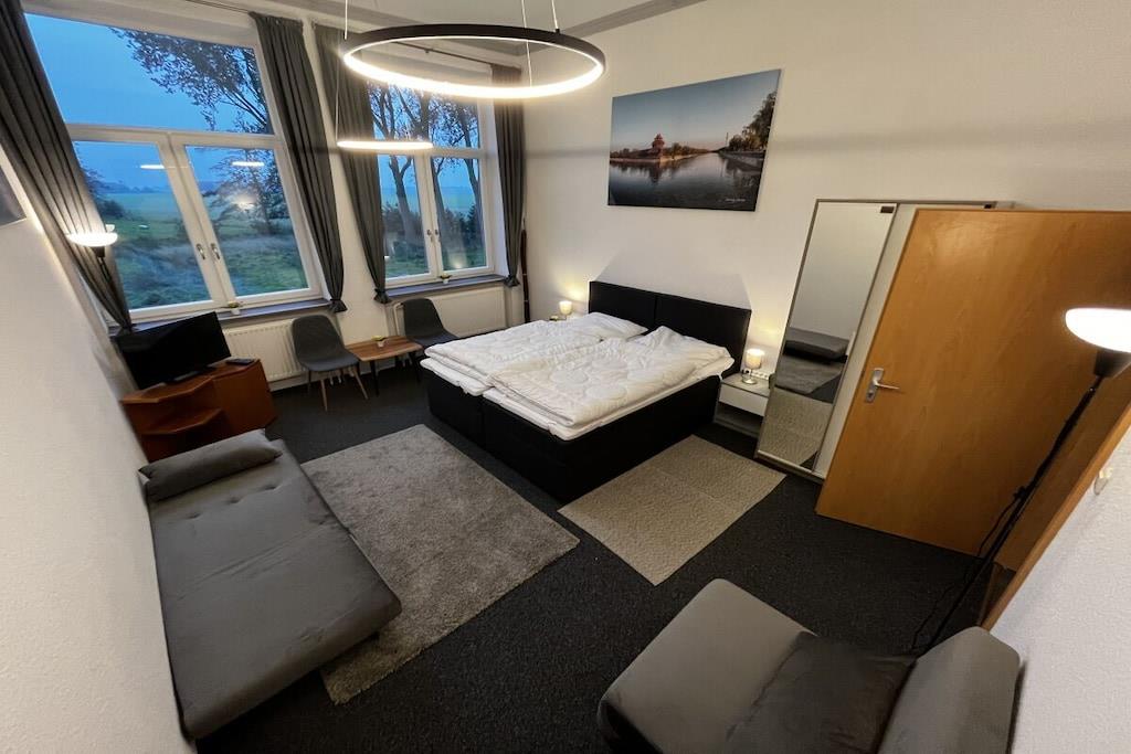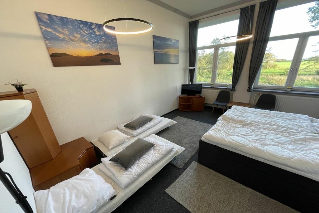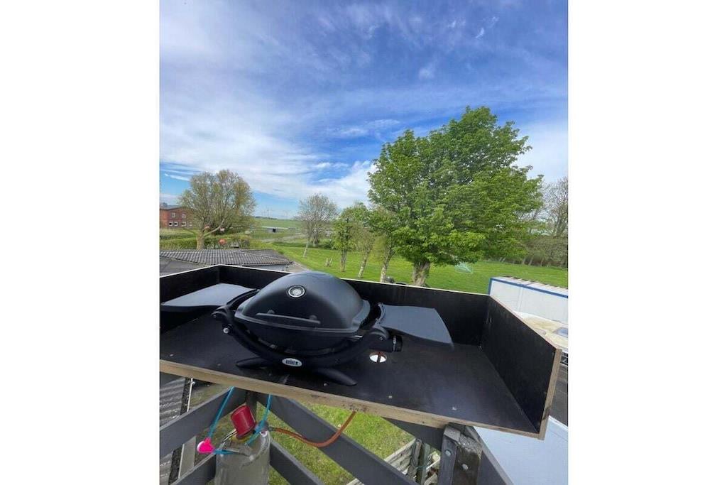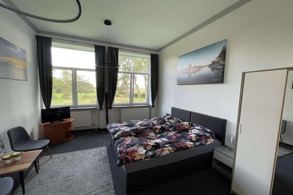 Indkvarteringen ligger på første sal med 15 trin :-) På cirka 200 m² kan op til otte personer nyde godt af masser af plads med en loftshøjde på 3,6 m. Der er tre soveværelser, to værelser til to personer, og et værelse kan rumme op til fire personer. Alle boxmadrassenge er flytbare. På øverste niveau er der et 75-tommer tv og opholdsstue. Gulv-til-loft-vinduer giver dig mulighed for at nyde udsigten helt til Nordsødiget. Hurtig fiberoptisk Wi-Fi er tilgængelig gratis i hele huset. Det lille badeværelse har bruser og toilet. Et stort badeværelse er synligt med badekar, bruser, vaskemaskine og tørretumbler. Haven kan nås via nødudgangen eller trappen foran og kan deles. 4000 m² græsplæne er til rådighed. Fodboldmål er til rådighed.