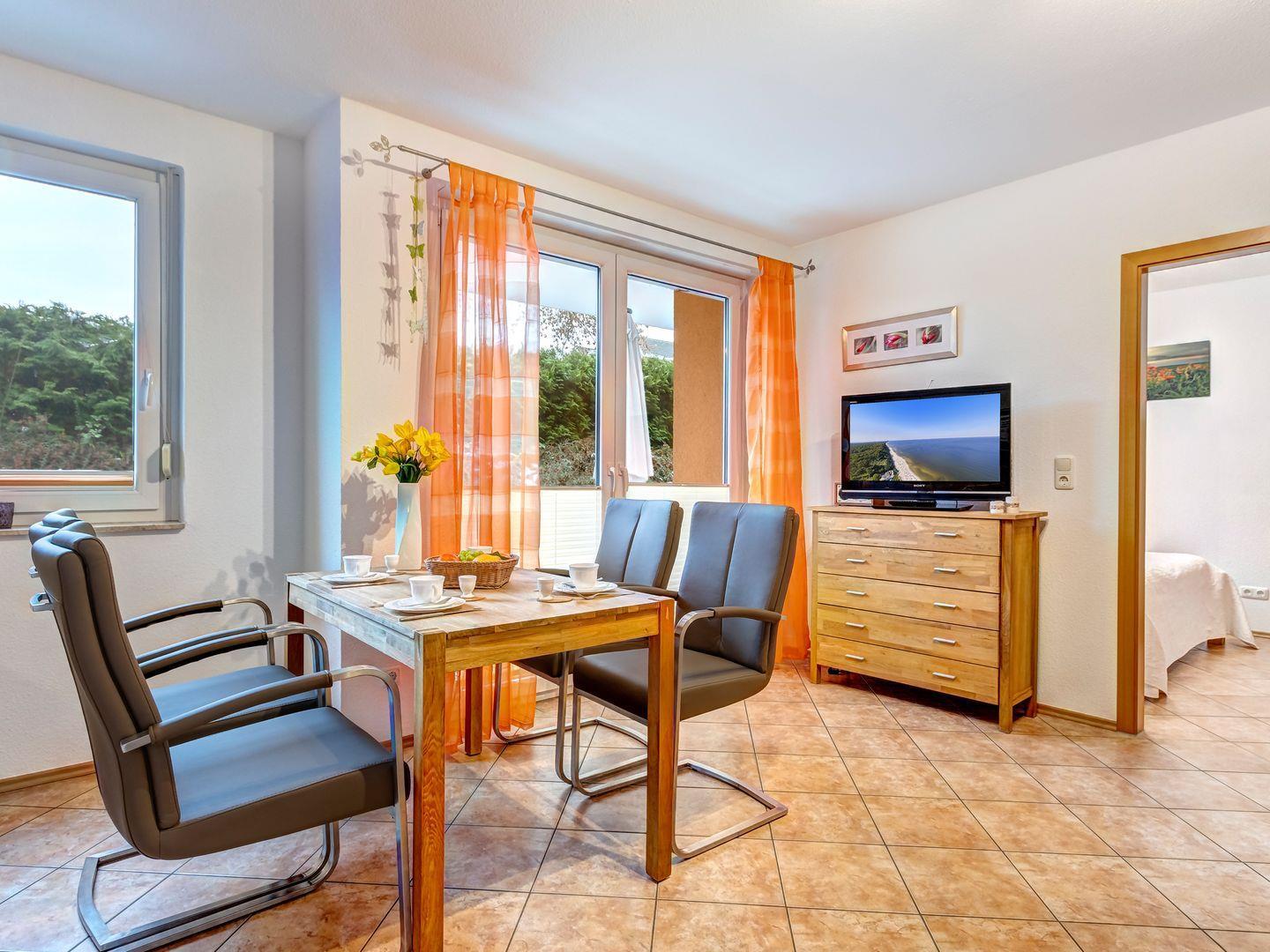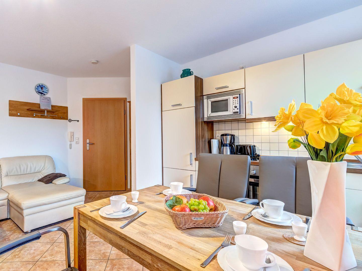 Die Ferienwohnung "Biene" überzeugt mit einer modernen und freundlichen Einrichtung, die für eine entspannte Atmosphäre sorgt.