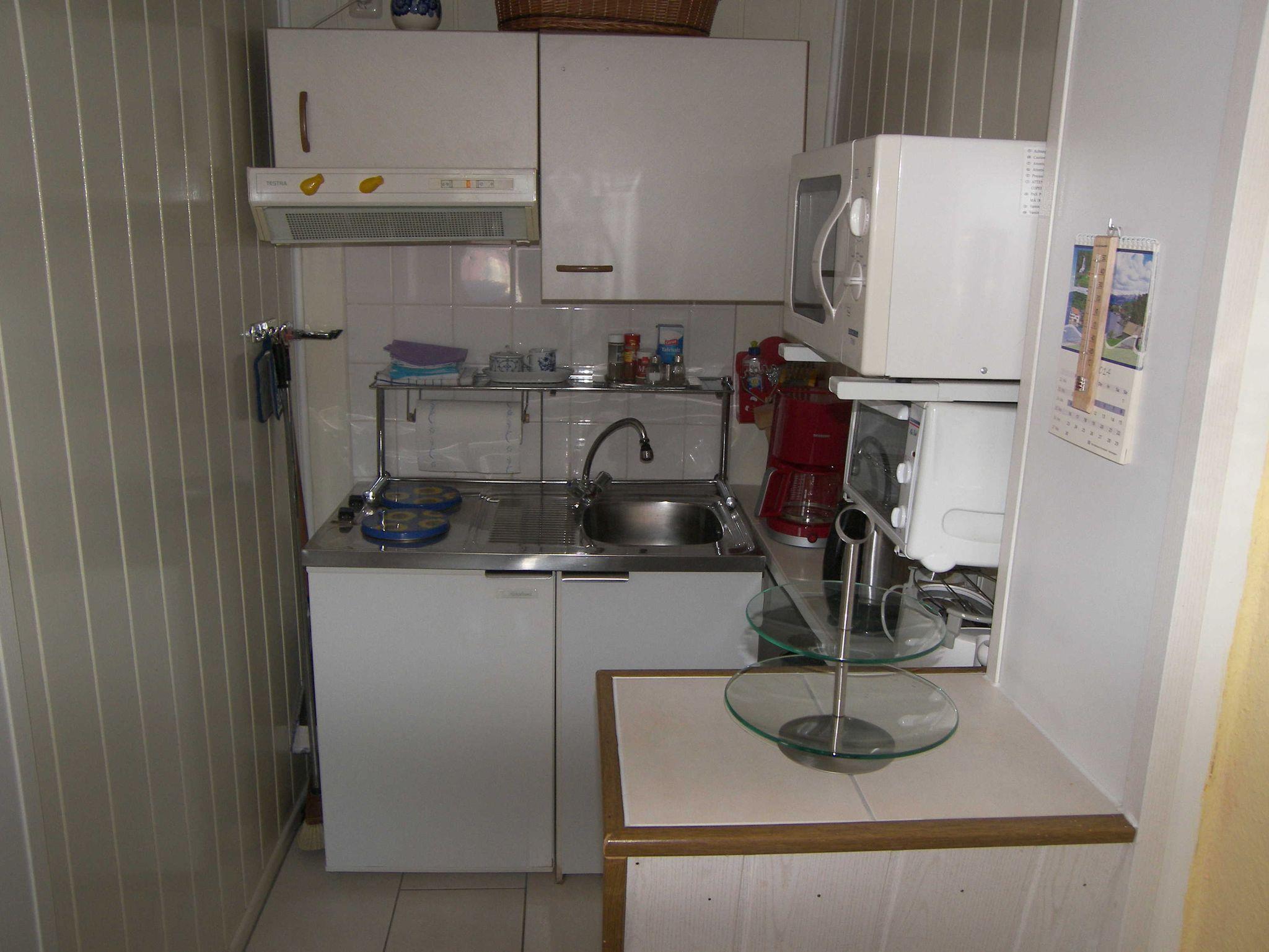 Das moderne und gepflegte Ferienhaus ist ca. 35qm groß verfügt über einen separaten Eingang. Es ist für 2-3 Personen geeignet. Im kombinierten Wohn- und Schlafraum befinden sich ein Doppelbett sowie eine Schlafcouch zur Aufbettung für die 3. Person, ein Sessel, TV und Radio mit CD-Player. In der offenen Pantryküche finden Sie ein 2-Platten-Kochfeld, einen Kühlschrank mit kleinem Gefrierfach, Mikrowelle, Kaffeemaschine, Wasserkocher und Toaster. Das Badezimmer ist mit einer Dusche/WC und Haartrockner ausgestattet.