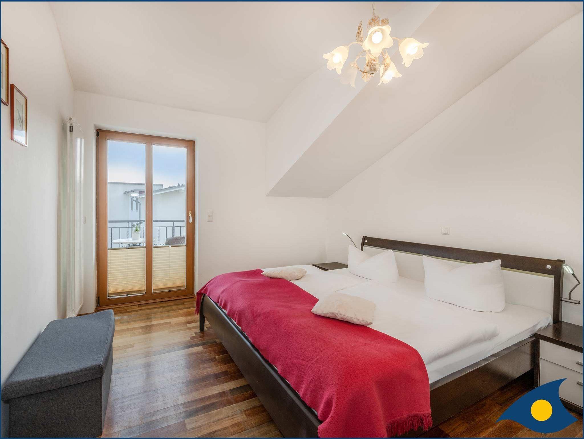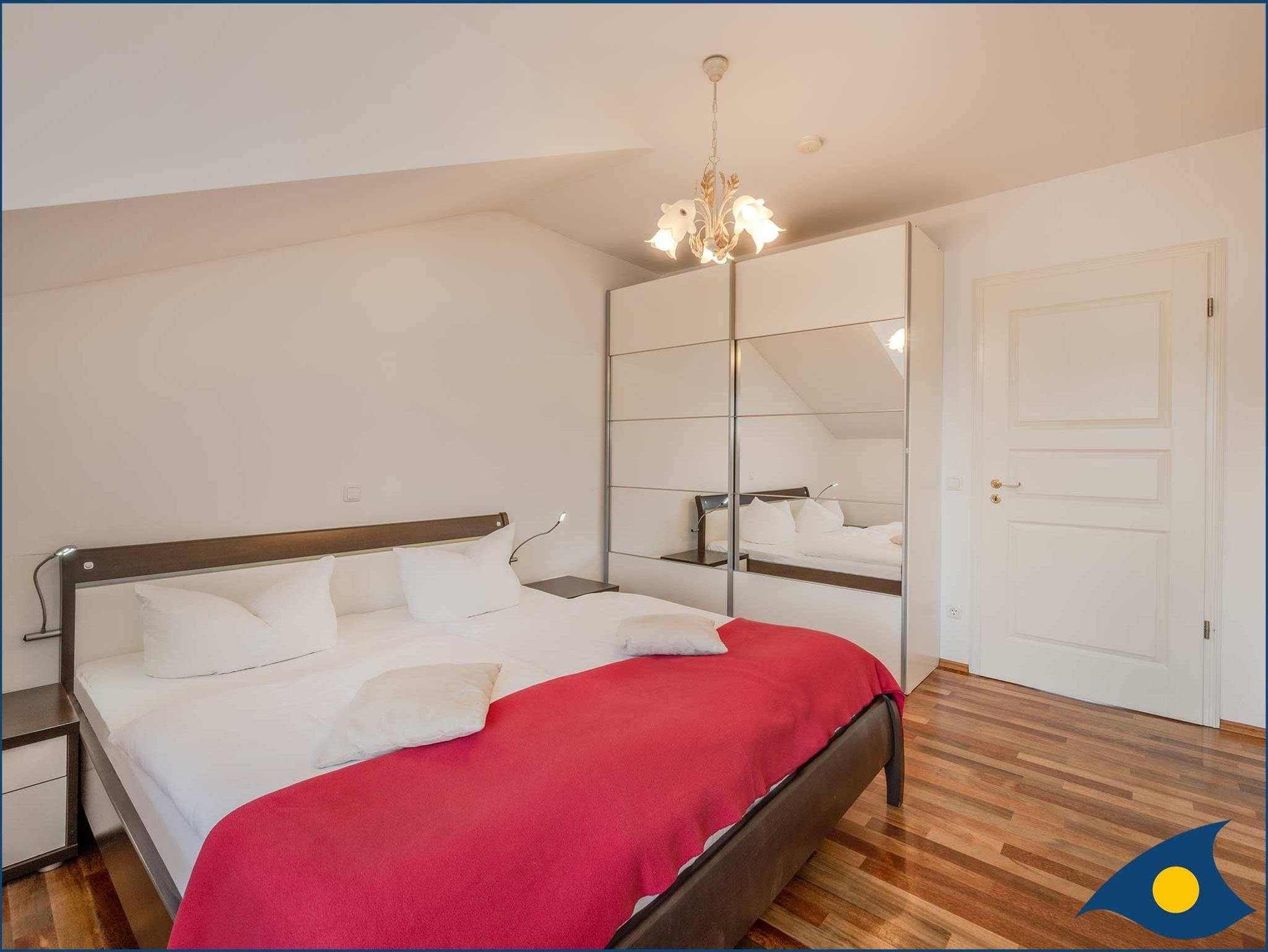 Erholsame Nächte können Sie im separaten Schlafzimmer mit Doppelbett und Südbalkon genießen.