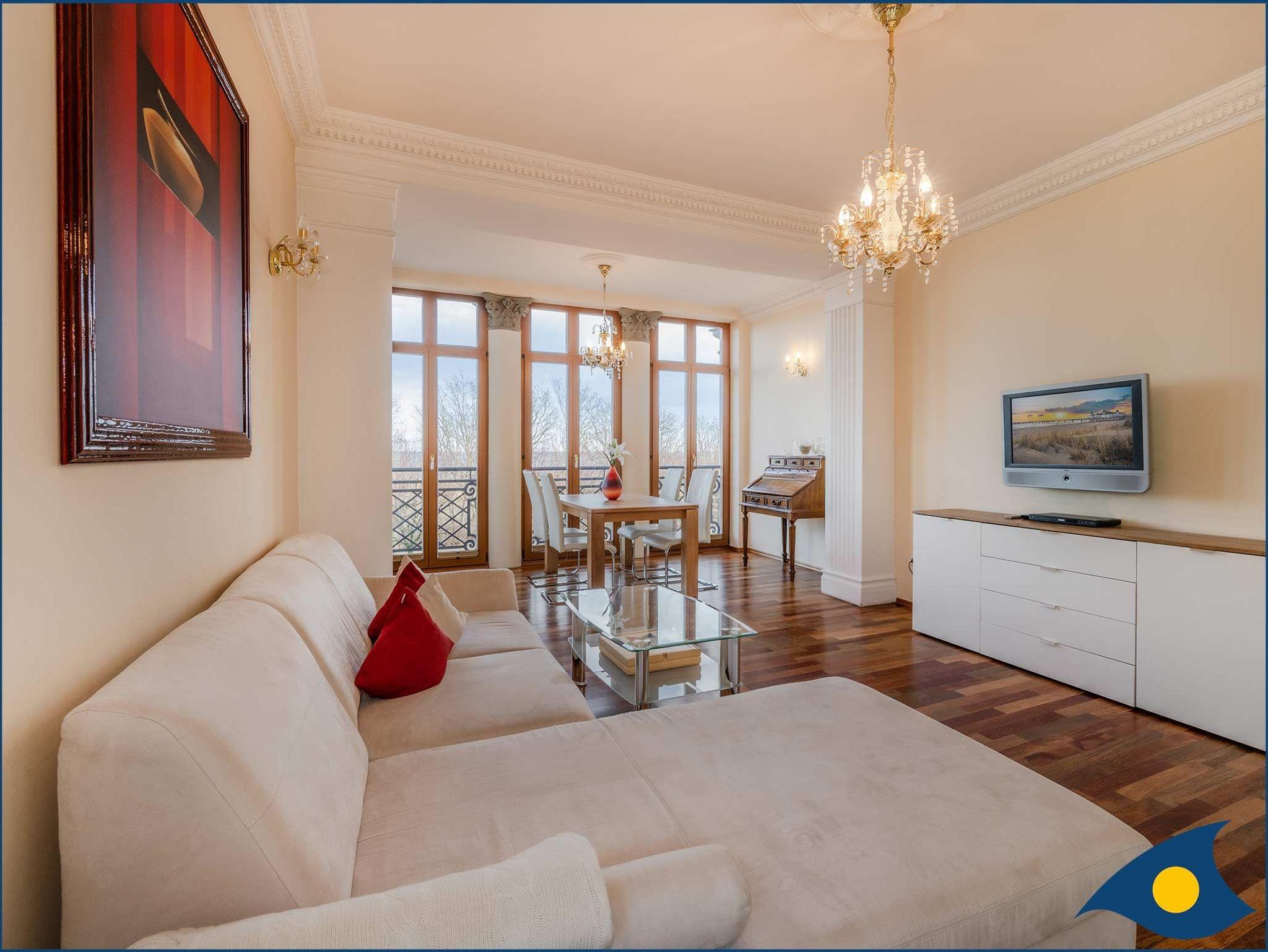 Diese großzügige Ferienwohnung im 1. Obergeschoss der Villa bietet Ihnen einen wundervollen Blick auf die Ostsee.