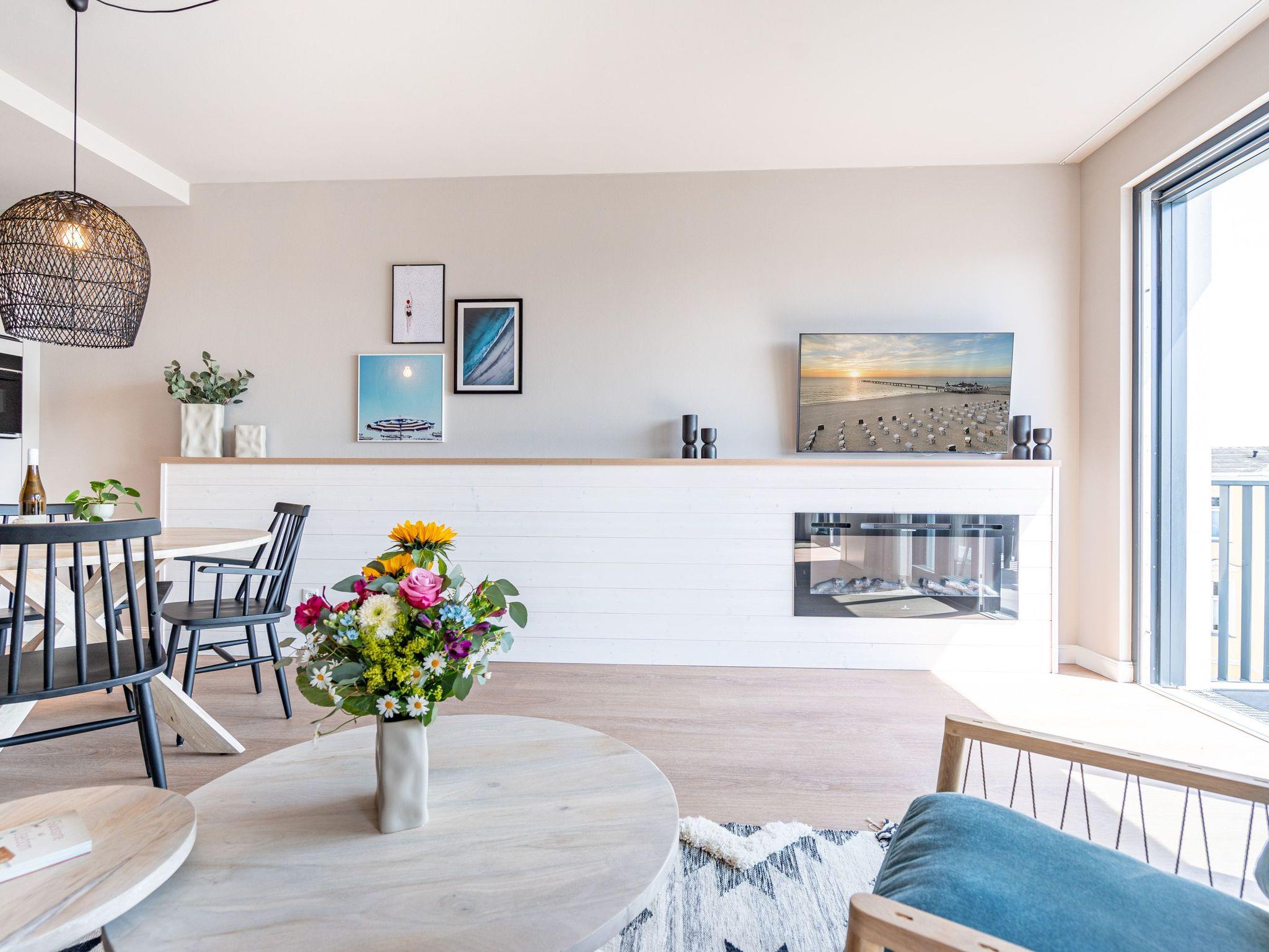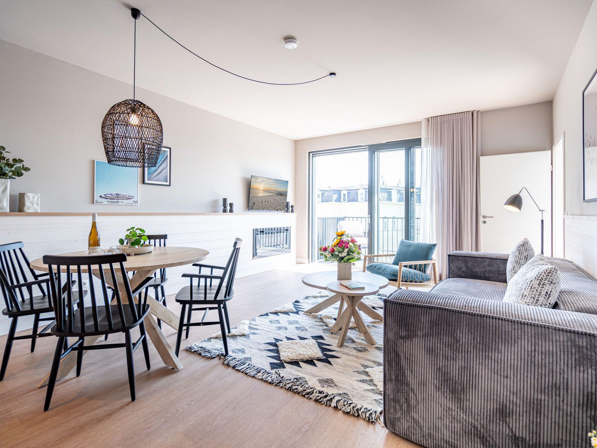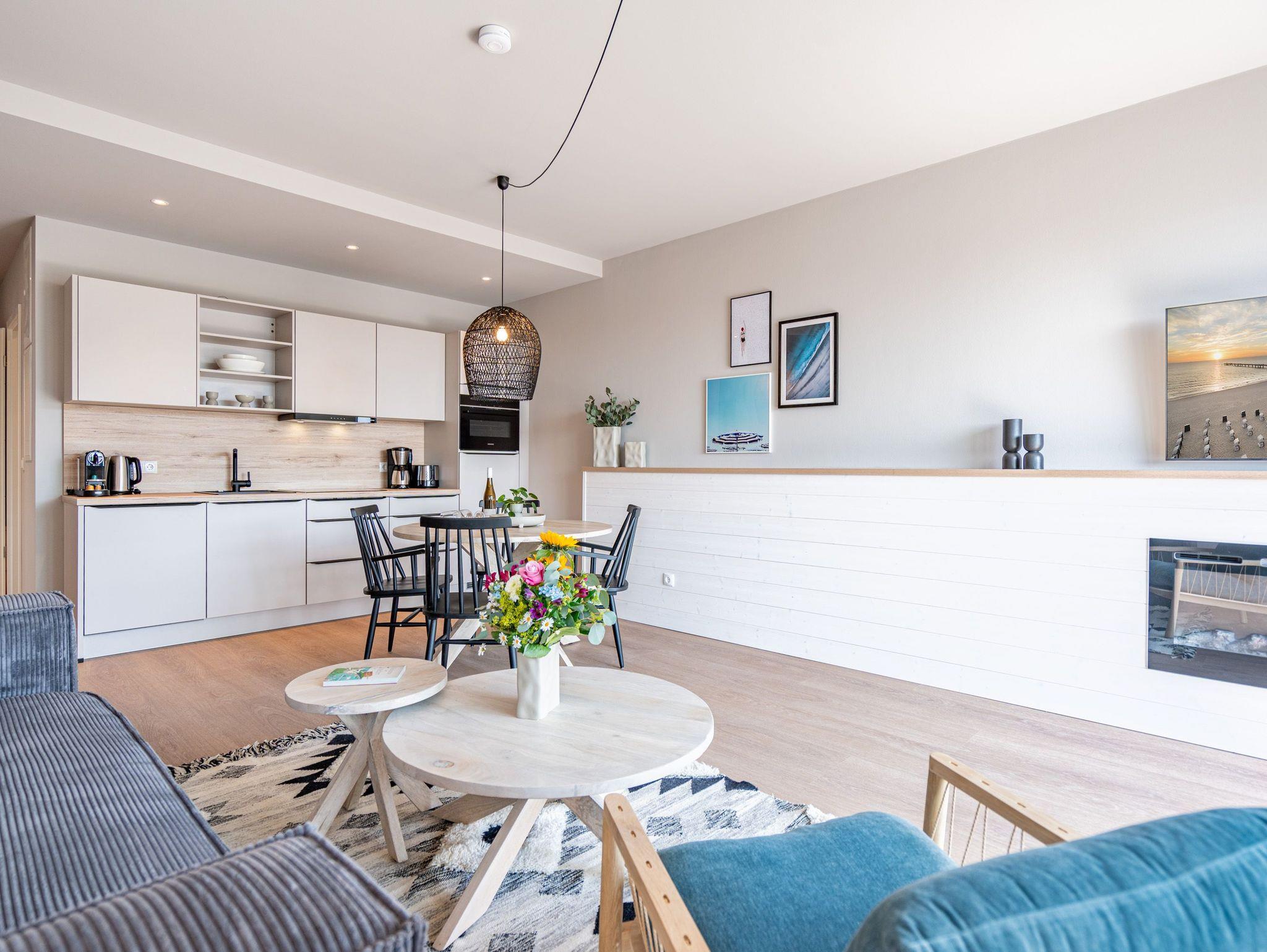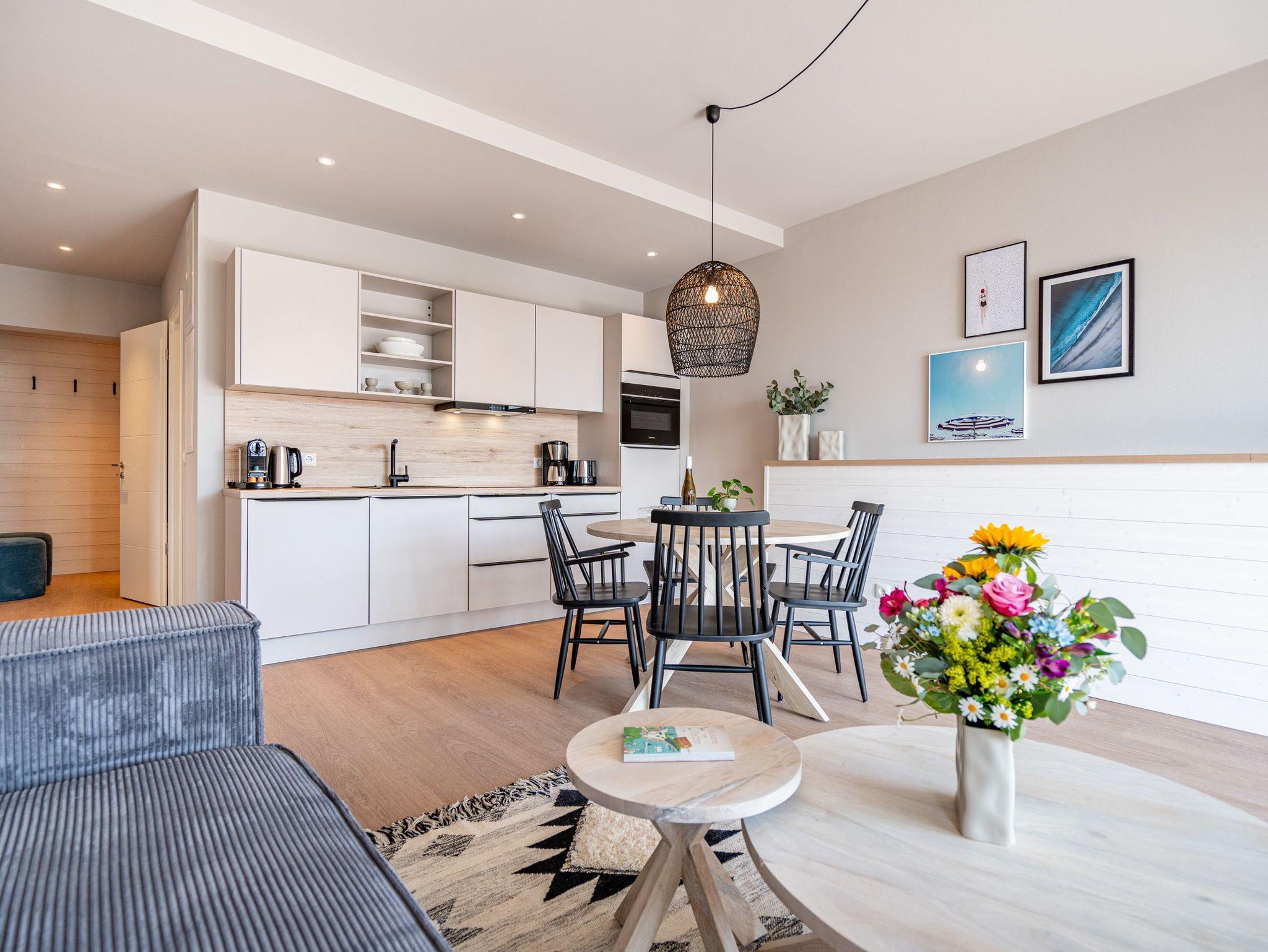 Die 2024 fertig gestellte Strandterrasse liegt direkt an der belebten Strandpromenade und bietet einen einzigartigen Ausblick auf die Grand Dame der historischen Seebrücken sowie die historische Konzertmuschel, einem beliebten Treffpunkt für Kunst und Kultur. Dahinter liegt die Ostsee ? ein Panorama, das zu den schönsten in den Kaiserbädern gehört. Es ist wie das Abtauchen in eine andere Zeit. In eine Zeit, in der man mit Stock, Sonnenschirm und Hut fürs „Sehen und gesehen werden“ über die Promenade schlenderte; aber auch in eine Zeit, in der ? damals wie heute ? Zeit einmal für eine kurze Weile keine Rolle spielt. Weil man angekommen ist im Loslassen, Entspannen und Genießen. Es ist dieser besondere Geruch nach Meeresluft und Freiheit, der in Erinnerung bleibt. Dazu die Bilder, die man mitnimmt. Von langen Strandspaziergängen, vom Lachen in fröhlich schäumenden Ostseewellen, von der Zeit in einem wunderschönen Urlaubsdomizil. Denn genau das ist die Strandterrasse mit ihren 56 modernen und exklusiven Ferienappartements direkt gegenüber der Ahlbecker Seebrücke. Die Ein-, Zwei- oder Dreizimmerwohnungen ? zwischen 40 und 70 Quadratmeter groß ? sind von einer Innenarchitektin gemeinsam mit unserem Erfahrungsschatz an Gästewünschen mit viel Liebe zum Detail und ganz individuell konzipiert worden. Entspannung und Wohlfühlen stehen an erster Stelle. Alles ist aufeinander abgestimmt und sorgt für eine gemütliche Atmosphäre. Wählen Sie zwischen einem Domizil in einem hellen, sandfarbenen Designkonzept oder einem Appartement mit anthrazitfarbenen Farbakzenten. Alle Appartements verfügen gleichermaßen über eine stilvolle und komfortable Einrichtung, die passgenau angefertigt worden ist, sowie über moderne Küchen und Bäder. Jedem Schlafzimmer ist ein eigenes Bad mit Dusche zugeordnet (außer App. B4.5). Die Appartements besitzen fast alle einen Balkon ? viele schauen sogar zur Ostsee hinaus. Die meisten Feriendomizile haben einen Elektrokamin und Infrarotsaunen. Im Erdgeschoss befindet sich ein separater Gemeinschaftsraum für Fahrräder. Außerdem besteht die Möglichkeit, im Gemeinschaftswaschraum 2 Waschmaschinen [&] Trockner zu nutzen. Ergänzt wird das Angebot durch eine Gemeinschaftssauna, die täglich von 11:00 bis 22:00 Uhr nutzbar ist. In der Tiefgarage (Einfahrtshöhe 2,03 Meter) steht für jede Wohnung 1 Pkw-Stellplatz zur Verfügung. Ist alles zur Zufriedenheit untergebracht? Dann kann der Urlaub ja beginnen. Und beim Blick vom Balkon über die Ostsee treffen sich zum Sonnenaufgang das Heute und das Damals. Gelassenheit legt sich beim Gang hinunter an den Strand auf die Seele. Jetzt darf die Zeit stehenbleiben.