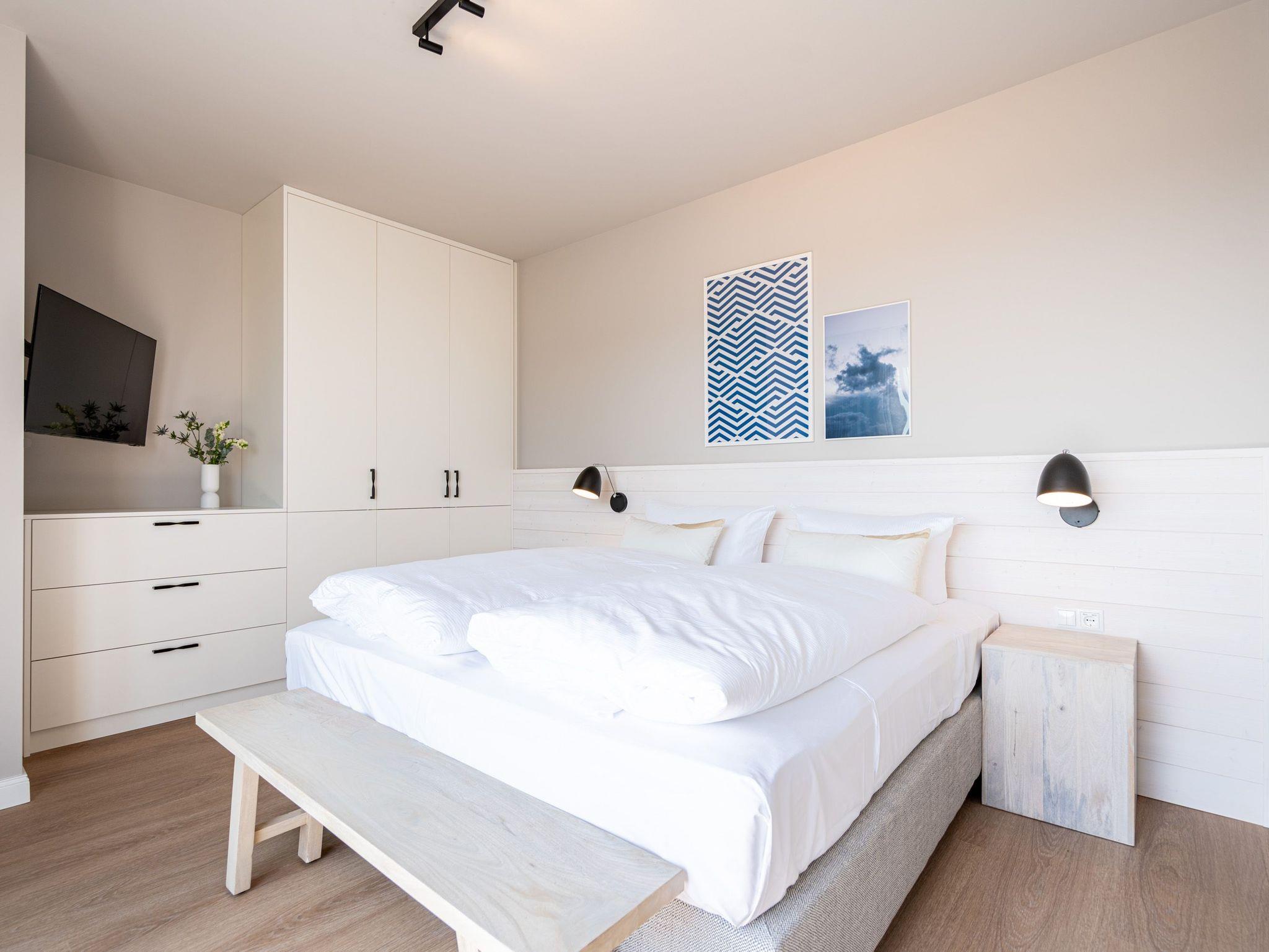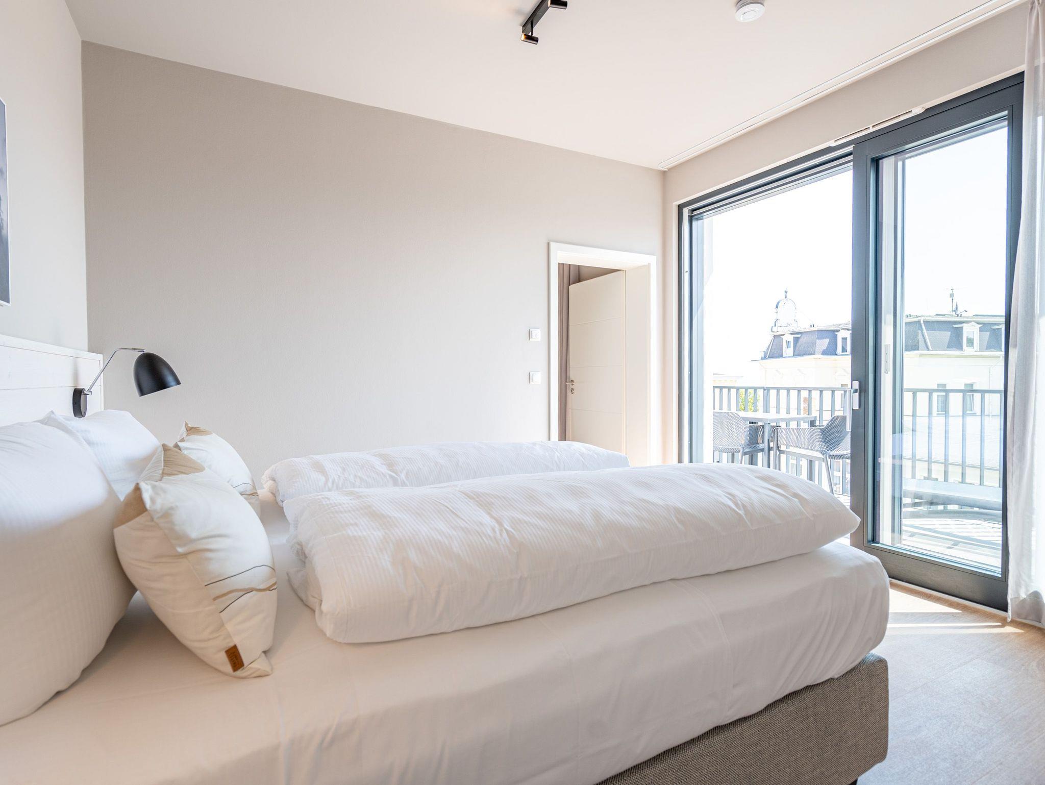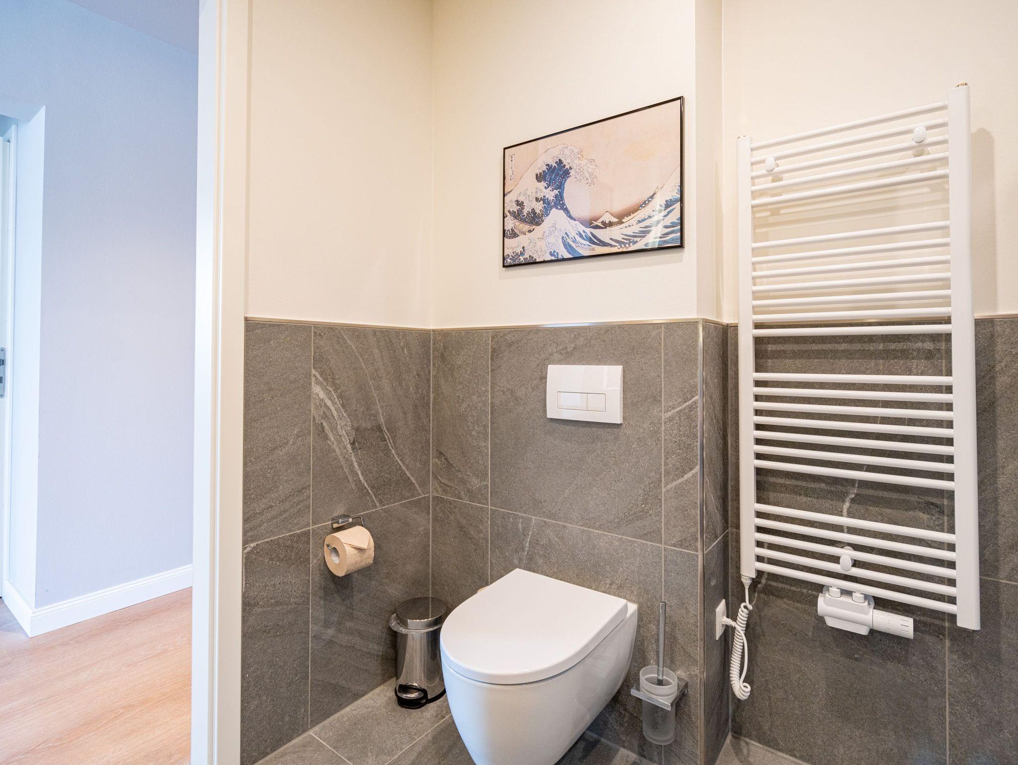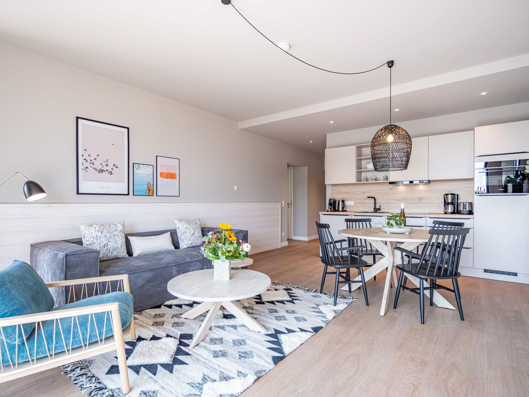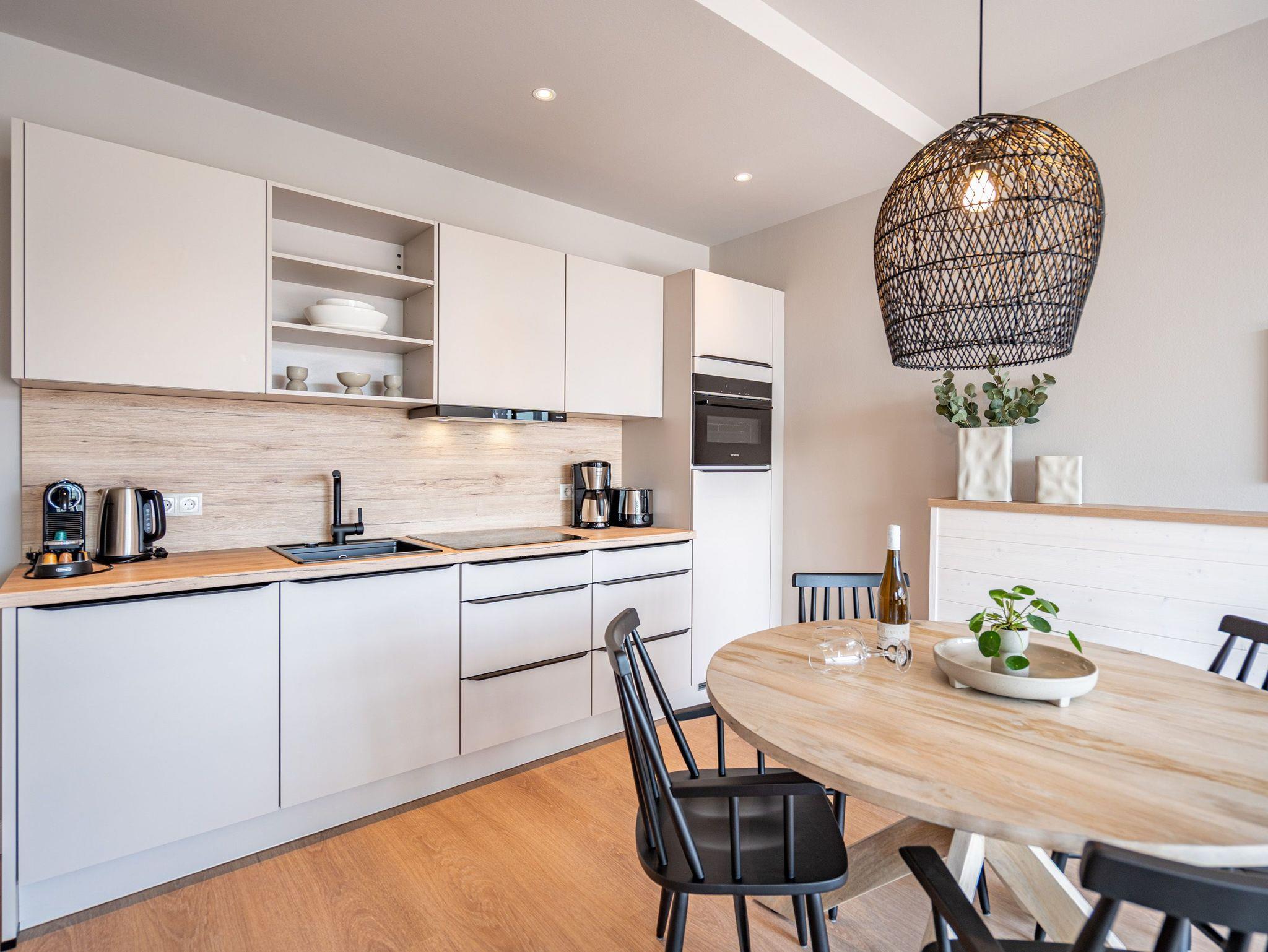 Die 2024 fertig gestellte Strandterrasse liegt direkt an der belebten Strandpromenade und bietet einen einzigartigen Ausblick auf die Grand Dame der historischen Seebrücken sowie die historische Konzertmuschel, einem beliebten Treffpunkt für Kunst und Kultur. Dahinter liegt die Ostsee ? ein Panorama, das zu den schönsten in den Kaiserbädern gehört. Es ist wie das Abtauchen in eine andere Zeit. In eine Zeit, in der man mit Stock, Sonnenschirm und Hut fürs „Sehen und gesehen werden“ über die Promenade schlenderte; aber auch in eine Zeit, in der ? damals wie heute ? Zeit einmal für eine kurze Weile keine Rolle spielt. Weil man angekommen ist im Loslassen, Entspannen und Genießen. Es ist dieser besondere Geruch nach Meeresluft und Freiheit, der in Erinnerung bleibt. Dazu die Bilder, die man mitnimmt. Von langen Strandspaziergängen, vom Lachen in fröhlich schäumenden Ostseewellen, von der Zeit in einem wunderschönen Urlaubsdomizil. Denn genau das ist die Strandterrasse mit ihren 56 modernen und exklusiven Ferienappartements direkt gegenüber der Ahlbecker Seebrücke. Die Ein-, Zwei- oder Dreizimmerwohnungen ? zwischen 40 und 70 Quadratmeter groß ? sind von einer Innenarchitektin gemeinsam mit unserem Erfahrungsschatz an Gästewünschen mit viel Liebe zum Detail und ganz individuell konzipiert worden. Entspannung und Wohlfühlen stehen an erster Stelle. Alles ist aufeinander abgestimmt und sorgt für eine gemütliche Atmosphäre. Wählen Sie zwischen einem Domizil in einem hellen, sandfarbenen Designkonzept oder einem Appartement mit anthrazitfarbenen Farbakzenten. Alle Appartements verfügen gleichermaßen über eine stilvolle und komfortable Einrichtung, die passgenau angefertigt worden ist, sowie über moderne Küchen und Bäder. Jedem Schlafzimmer ist ein eigenes Bad mit Dusche zugeordnet (außer App. B4.5). Die Appartements besitzen fast alle einen Balkon ? viele schauen sogar zur Ostsee hinaus. Die meisten Feriendomizile haben einen Elektrokamin und Infrarotsaunen. Im Erdgeschoss befindet sich ein separater Gemeinschaftsraum für Fahrräder. Außerdem besteht die Möglichkeit, im Gemeinschaftswaschraum 2 Waschmaschinen [&] Trockner zu nutzen. Ergänzt wird das Angebot durch eine Gemeinschaftssauna, die täglich von 11:00 bis 22:00 Uhr nutzbar ist. In der Tiefgarage (Einfahrtshöhe 2,03 Meter) steht für jede Wohnung 1 Pkw-Stellplatz zur Verfügung. Ist alles zur Zufriedenheit untergebracht? Dann kann der Urlaub ja beginnen. Und beim Blick vom Balkon über die Ostsee treffen sich zum Sonnenaufgang das Heute und das Damals. Gelassenheit legt sich beim Gang hinunter an den Strand auf die Seele. Jetzt darf die Zeit stehenbleiben.