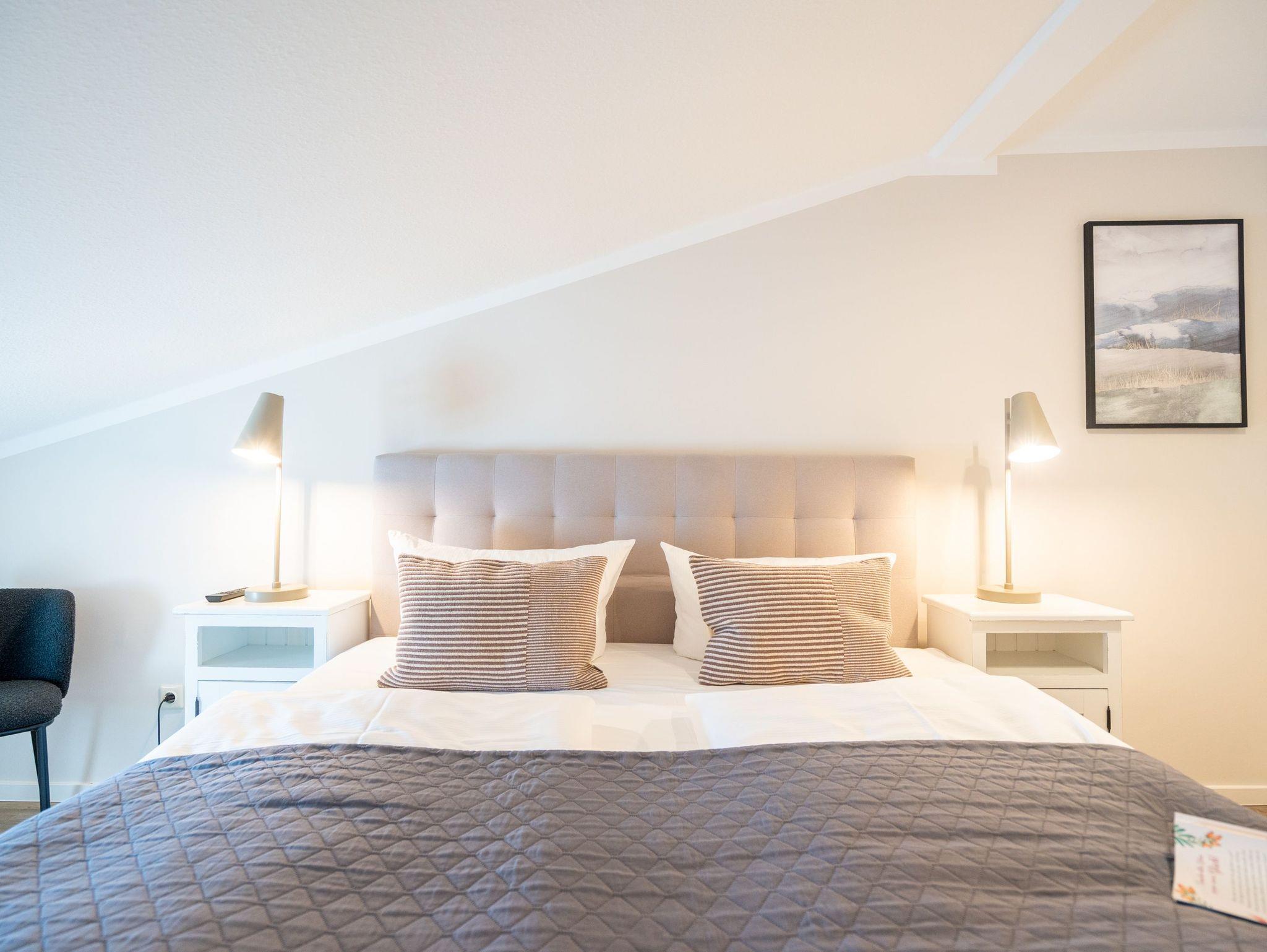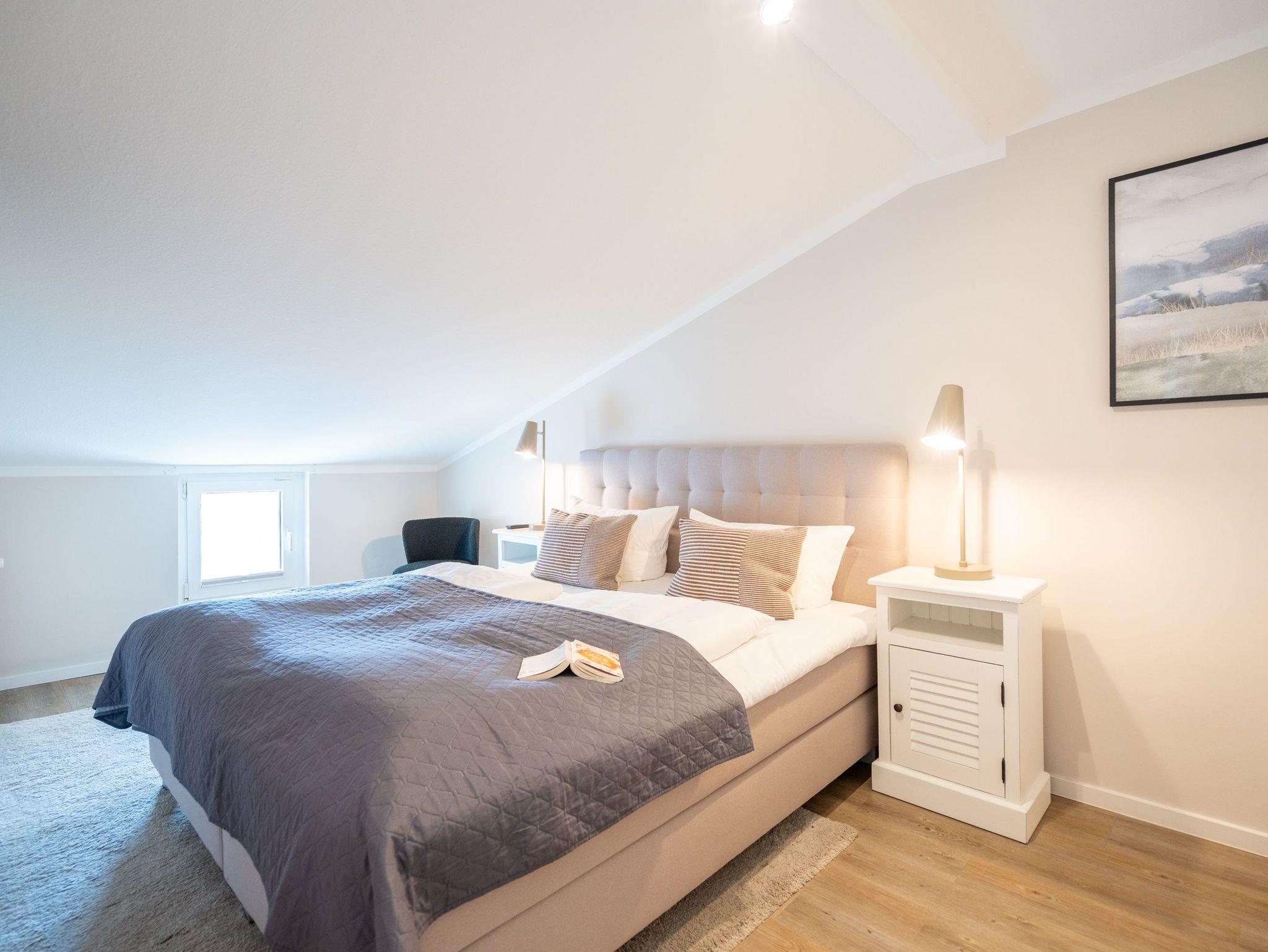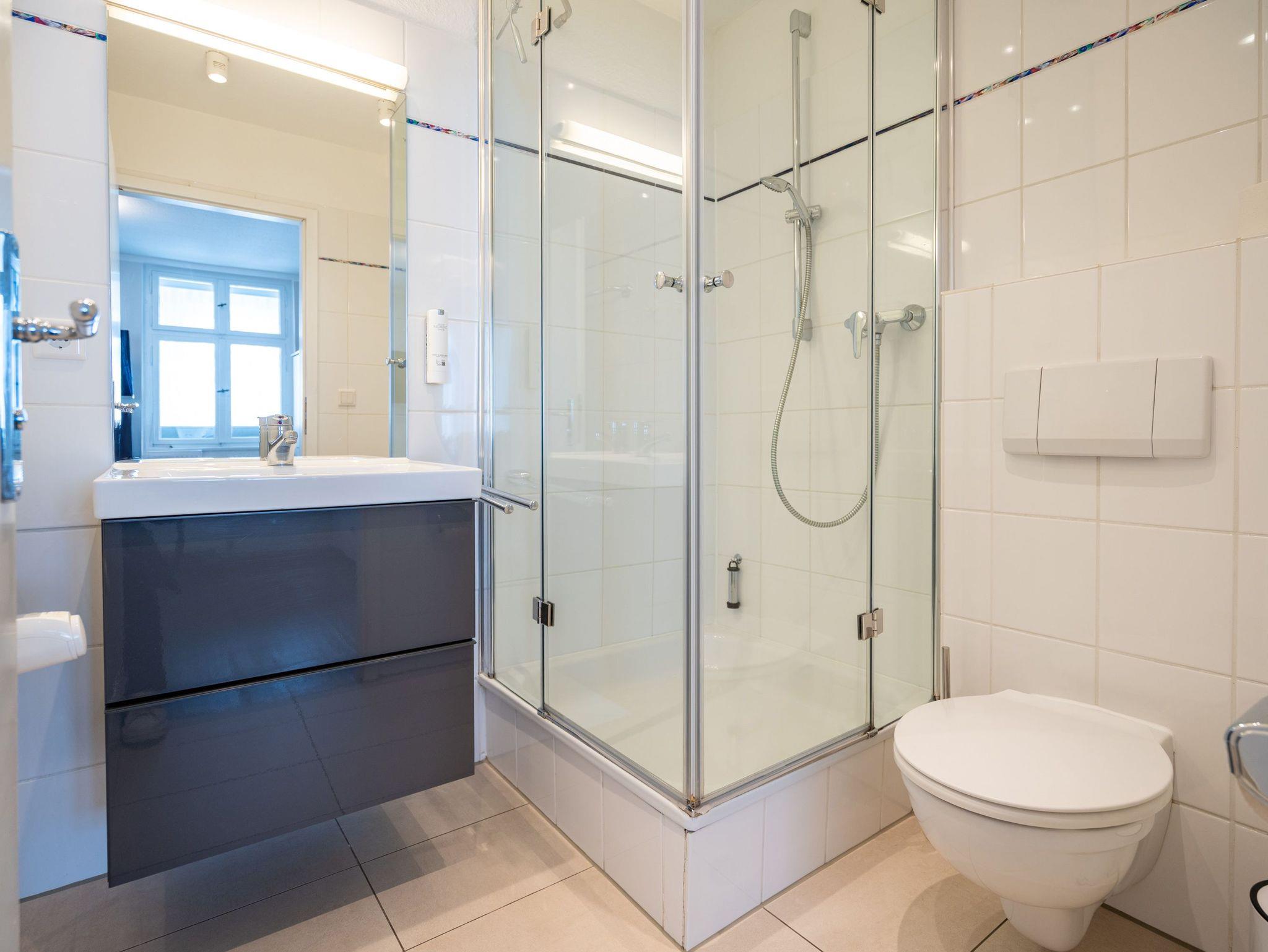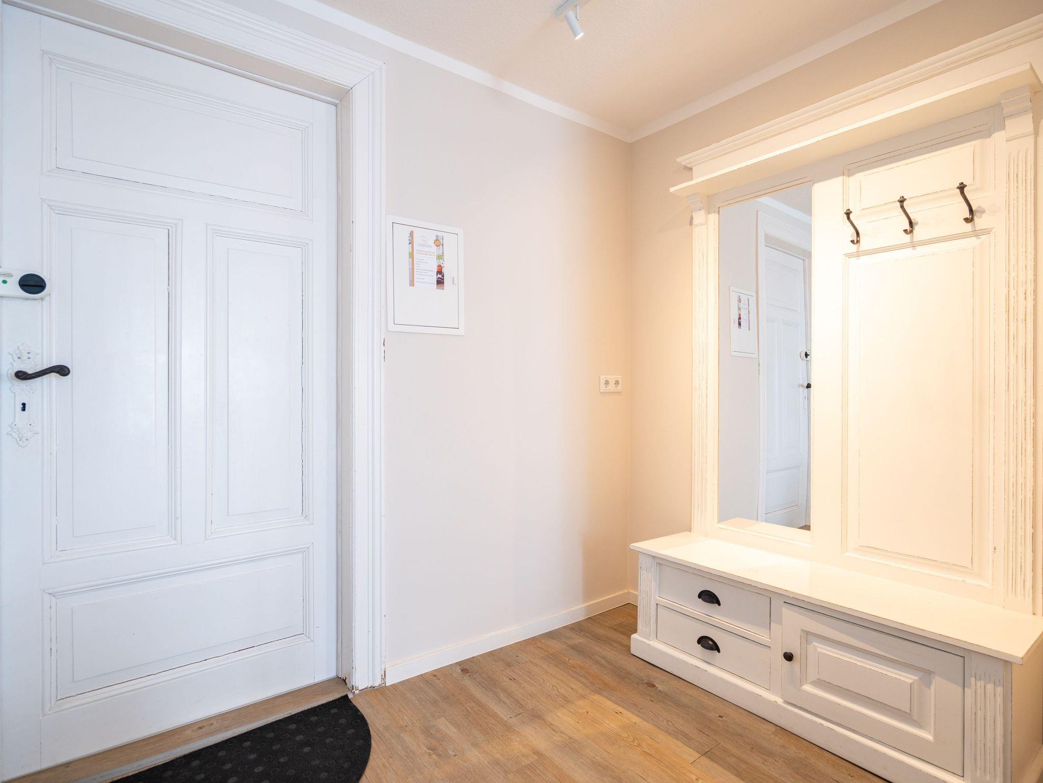 Ein toller Meerblick und eine wunderschön gestaltete 2-Raum-Ferienwohnung (44 qm) versprechen Urlaubsfreude in der Villa Albertine für 2-4 Personen inkl. 1 Kleinkind (bis 3 Jahre im Kinderreisebett). Nach dem Eingangsbereich empfängt Sie ein gemütlicher Wohnbereich mit Schlafsofa (als Aufbettungsmöglichkeit für die 3. Person), Flat-TV und komplett ausgestatteter Küchenzeile. In der verglasten Veranda genießt man den Blick auf die Ostsee, ein schöner Essplatz und zwei gemütliche Ohrensessel laden zum Lesen, TV schauen oder Entspannen ein. Im Schlafzimmer sorgt ein bequemes Doppelboxspringbett (1,80m x 2,00m ) für Schlafkomfort, auch ein Kinderreisebett findet hier Platz. Ergänzt wird das Appartement durch ein Badezimmer mit Dusche und WC. Ein Pkw-Stellplatz Nr. 13 befindet sich in der Tiefgarage direkt auf dem Grundstück.