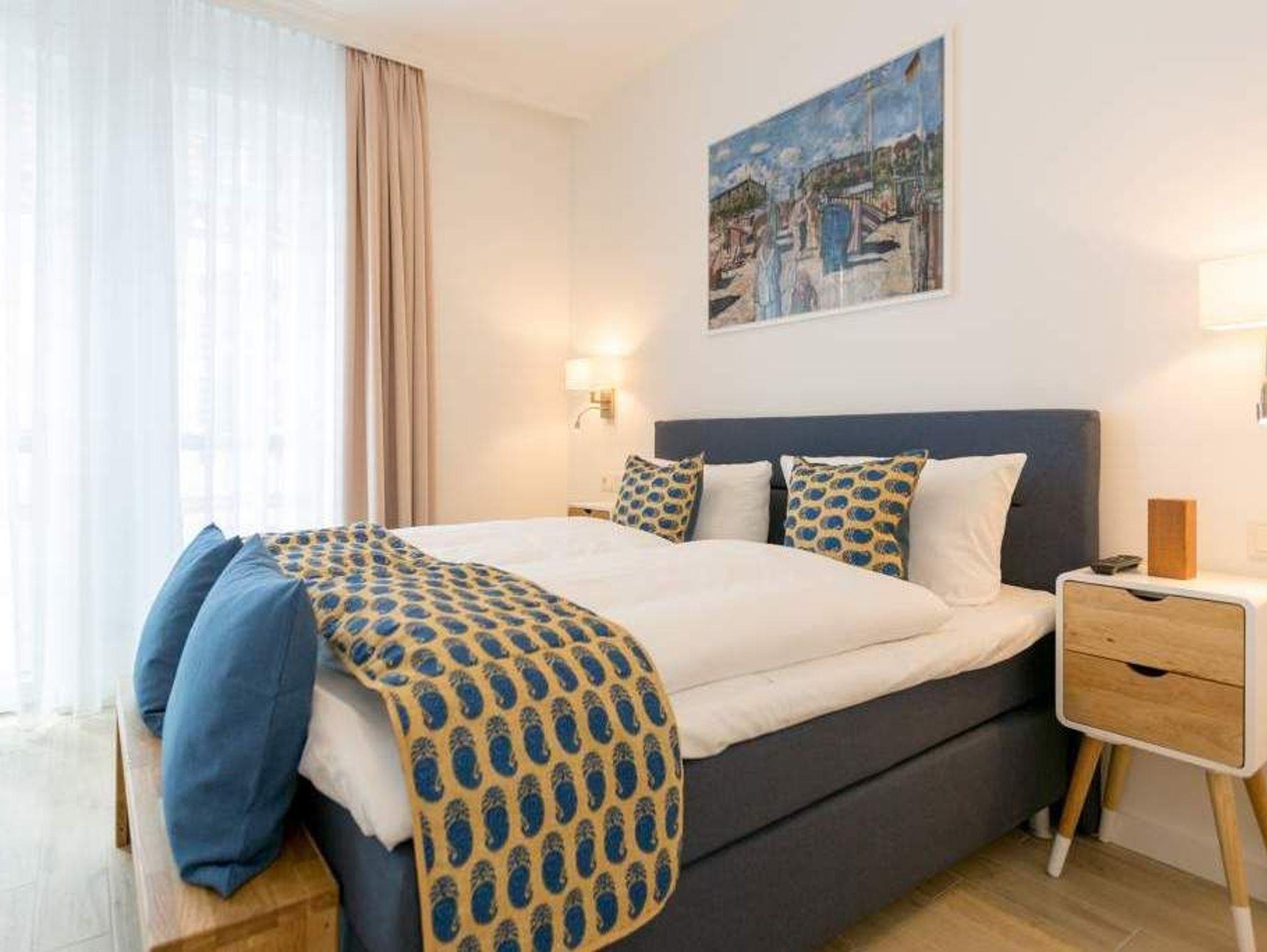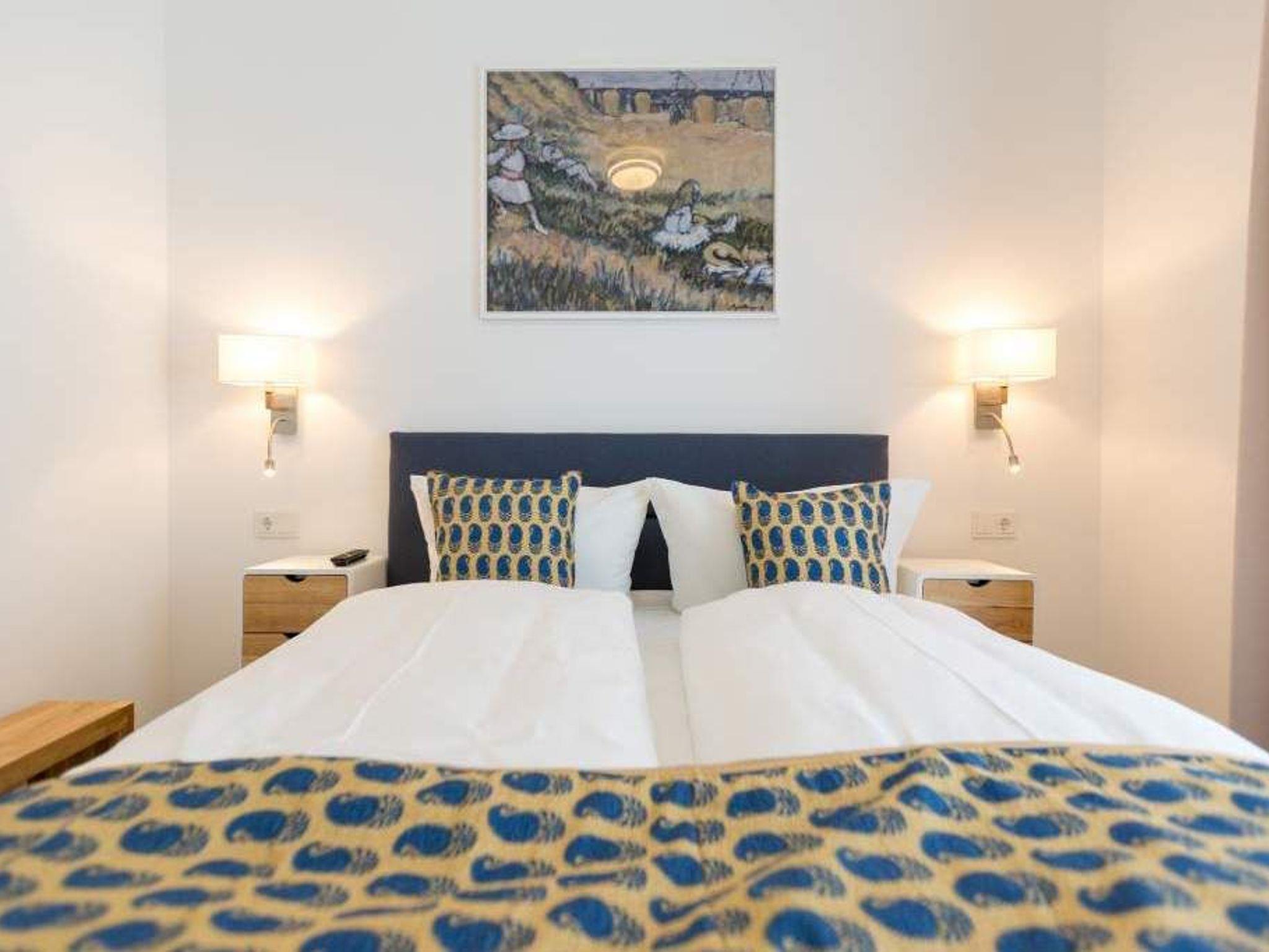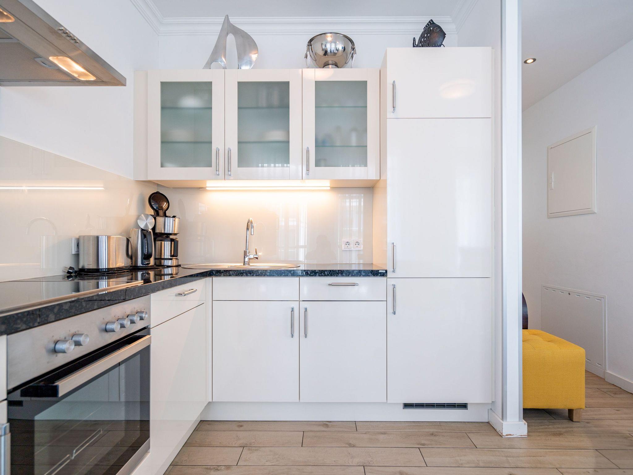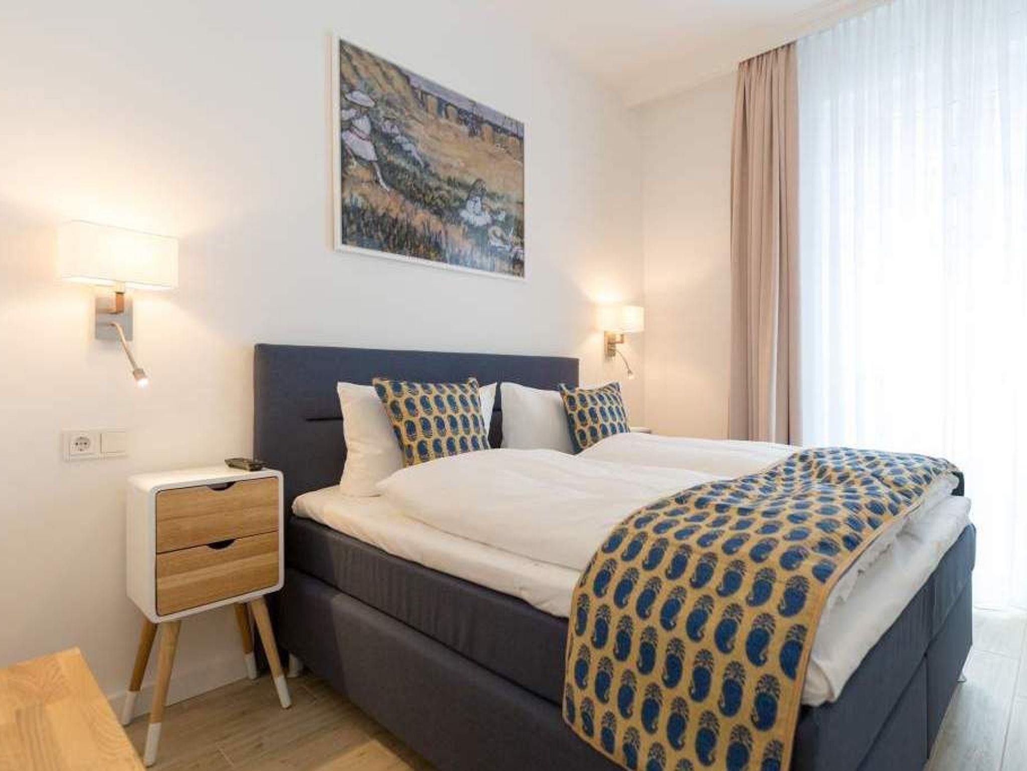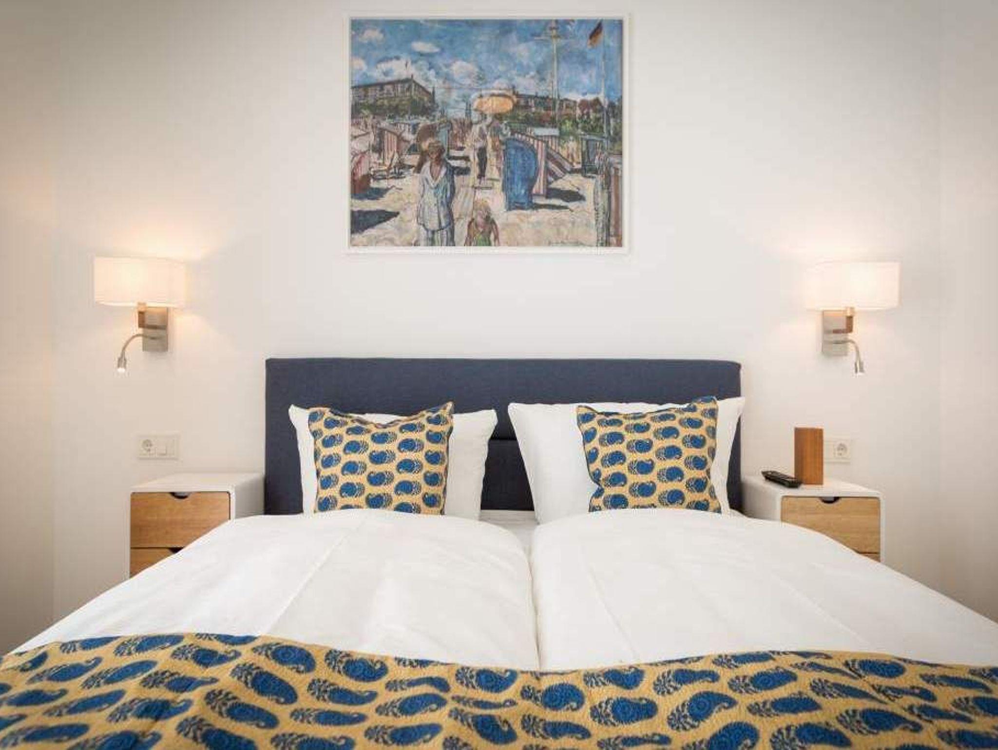 Auf 67 Quadratmetern erwartet Sie in diesem lichten und wunderschön eingerichteten Appartement ein exklusives Urlaubsdomizil. Drei Zimmer in modernem Design ? hier können Sie mit bis zu vier Personen eine unvergesslich schöne Usedom-Auszeit erleben. In den zweiten Stock gelangen Sie über den Fahrstuhl. Treten Sie ein, in ein offenes und großzügiges Wohn-Esszimmer, das viel Platz zum Durchatmen und Energietanken bietet. Machen Sie es sich auf dem Wildledersofa oder in einem der stylischen Sessel bequem. Ein Smart-TV wird zum wahren Home-Kino. An ungemütlichen Tagen oder kühlen Abenden sorgt der Elektro-Kamin für wohlige Wärme. Per Knopfdruck können Sie diesen im Sommer auch ohne Wärme zum Flackern bringen. Ein echter Hingucker ist der wunderschöne Art Deco Konsolentisch. Der großer Essplatz lädt zum gemeinsamen Genuss ein. Ihre Lieblingsgerichte lassen sich in der voll ausgestatteten Küche mühelos zaubern. Bei schönem Wetter bietet sich die offene Loggia zum Essen an. Von hier aus haben Sie sogar einen seitlichen Blick auf die Ostsee. In den beiden Boxspringdoppelbetten (jeweils 1,60 m x 2,00 m) in den Schlafzimmern macht übrigens nicht nur das Schlafen Spaß. Auch das Fernsehgucken. Denn beide Schlafzimmer sind ebenfalls mit einem Flat-TV ausgestattet. Das Badezimmer ist wunderbar geräumig mit einer Regendusche, einem Waschtisch und WC ausgestattet. Absolutes Highlight im Winter ? für denjenigen, der es mag natürlich auch im Sommer ? ist ein Aufguss in der wohnungseigenen Finnischen Sauna. Es gibt ein separates Gäste-WC. Bei Anreise sind die Betten bezogen und Handtücher liegen bereit, so dass die Entspannung schon von der ersten Minute an einsetzen kann. Ihr Auto können Sie in der Tiefgarage abstellen. Dort gibt es auch einen Fahrradabstellraum und einen Hauswirtschaftsraum mit einem Waschtrockner. Für den Tag am Meer steht Ihnen als besonderes Bonbon von Mitte Mai bis September (je nach Witterung) ein Strandkorb am Strand kostenlos zur Verfügung.