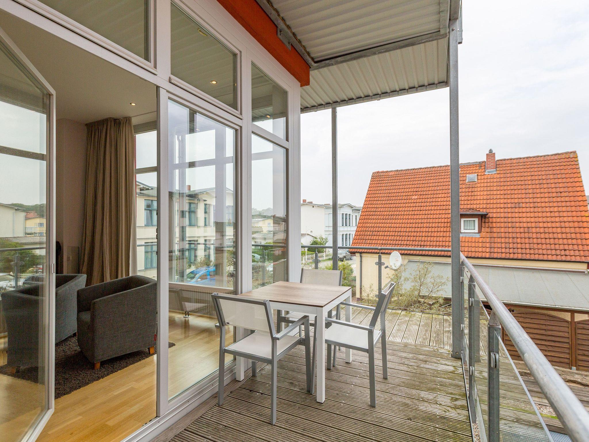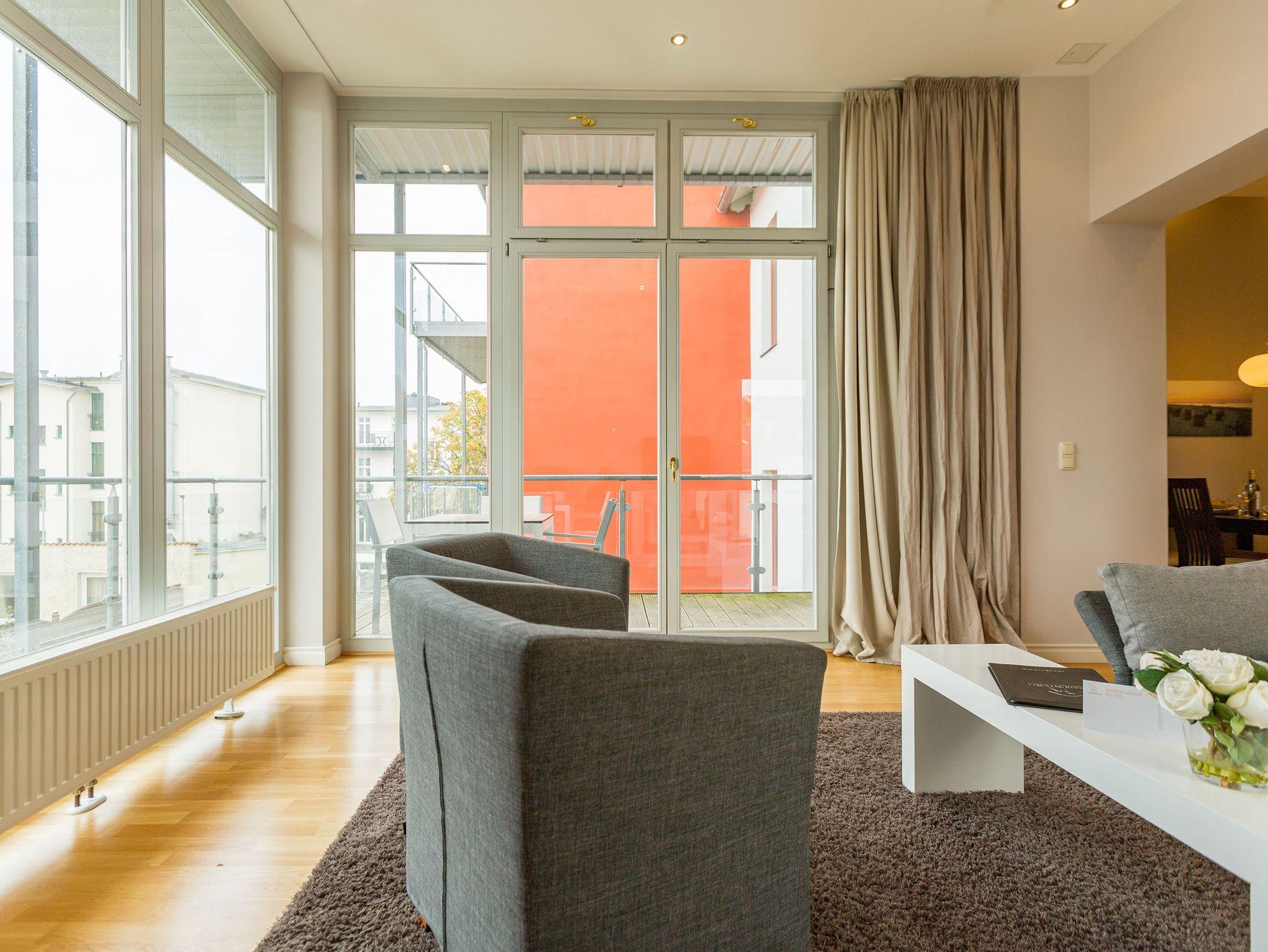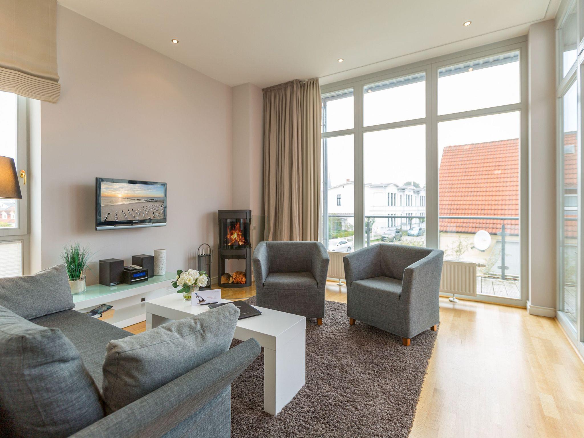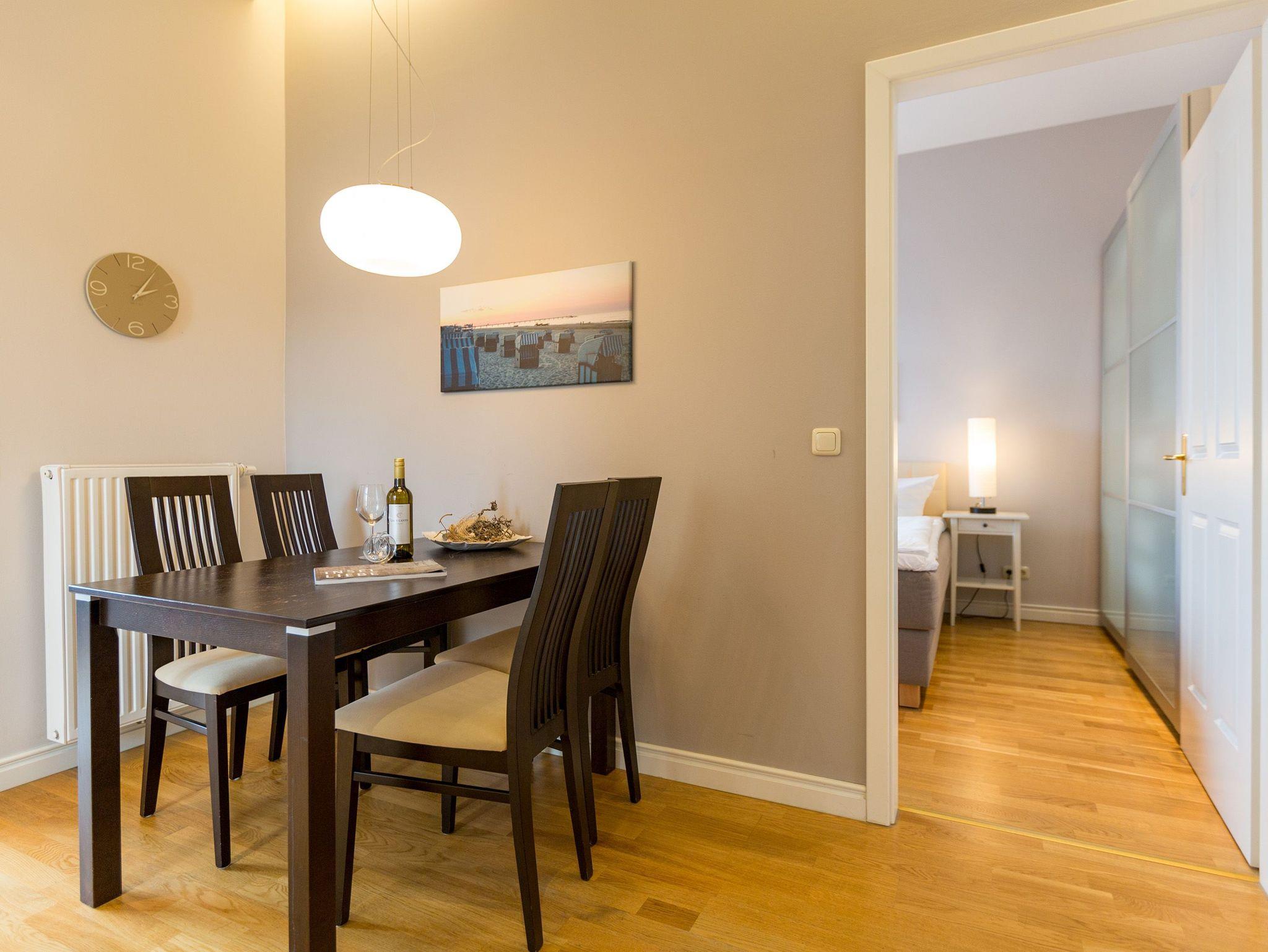 In der 1. Etage des Autorenhauses empfängt Sie die moderne 2-Raum-Ferienwohnung Heinrich Böll, das von einer Innenarchitektin gestaltet wurde. Gekonnte Möblierung, geschmackvolle Dekorationen und lässige Eleganz. - Treten Sie ein und fühlen Sie sich wohl! Das helle, lichtdurchflutete Wohnzimmer mit Kaminofen hat Zugang zum großzügigen umlaufenden Südbalkon. Hier genießt man bis in die Abendstunden die Usedomer Sonne. Die offene Küche ist natürlich komplett ausgestattet und wird durch den Essplatz vervollständigt. Das gemütliche Schlafzimmer mit Doppelbett ( 1,80m x 2m) bietet Platz für 2 Erwachsene und verfügt auch über einen Flat-TV. Ein Kind (bis 13 Jahre) kann im Wohnbereich die Schlafcouch nutzen. Ergänzt wird die Wohnung durch ein modernes Bad mit Dusche. Auf Wunsch stellen wir für unsere kleinen Gäste ein Kinderreisebett (ohne zusätzliche Matratze [&] Bettzeug) und einen Kinderhochstuhl ( gegen einen Aufpreis) zur Verfügung. Für Ihren Komfort sind die Betten bei der Anreise bezogen und Handtücher liegen bereit. Das WLAN-Netz kann kostenfrei genutzt werden. Im Keller des Hauses stehen eine Waschmaschine und ein Trockner gegen Gebühr zur Verfügung.