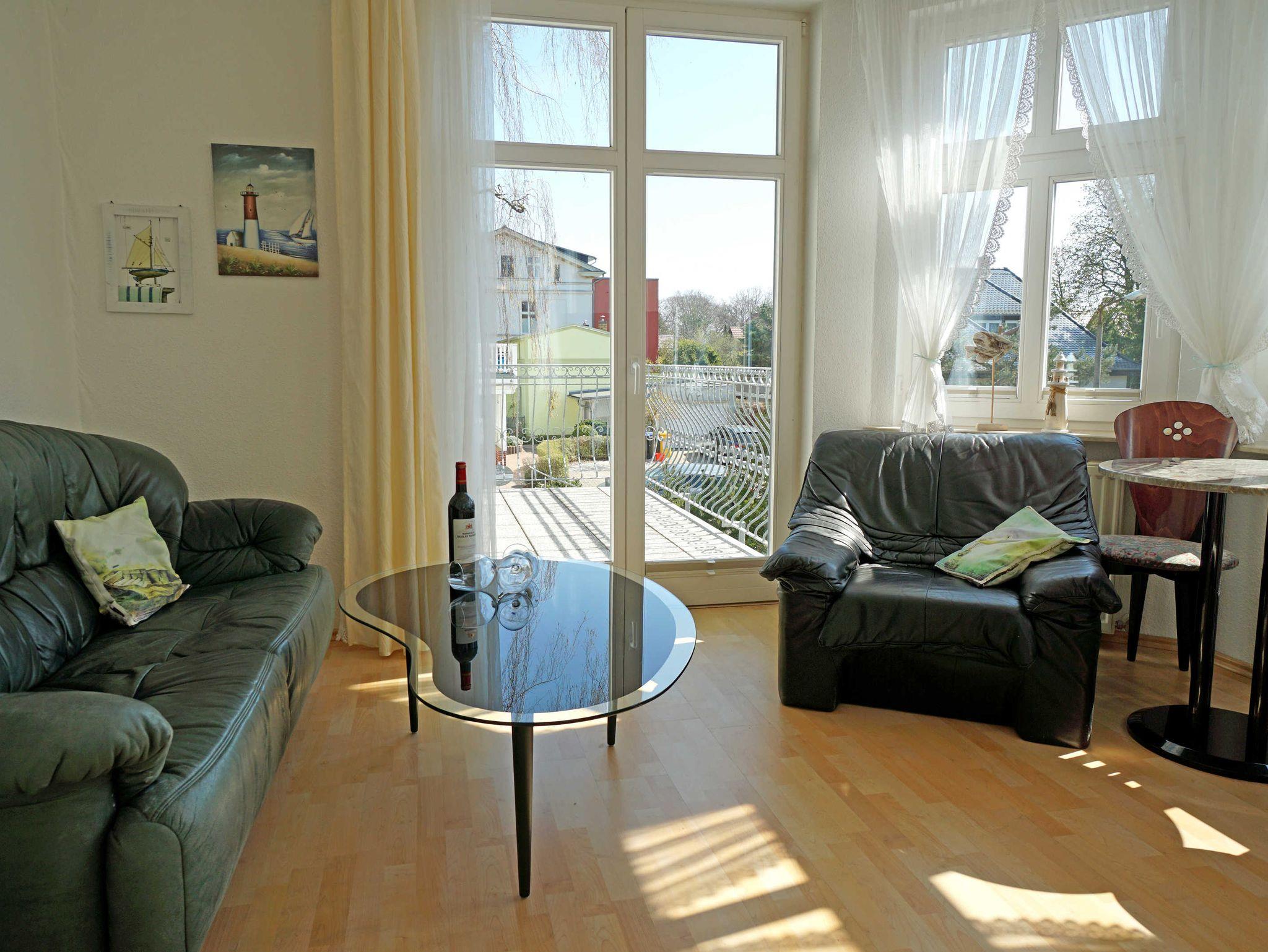 Die gemütlich eingerichtete, helle 2-Zimmer-Ferienwohnung (37m²) befindet sich im ersten Obergeschoss des Hauses. Die Nichtraucherwohnung verfügt über ein Wohnzimmer (Sitzecke, Flachbildfernseher) mit Zugang zu einem großen Balkon, einer separaten Küche (Kühlschrank, Herd und Ofen), einem geräumigen Duschbad und einem innenliegenden Schlafzimmer (Fenster zum Wohnzimmer) mit Doppelbett (140x200cm).