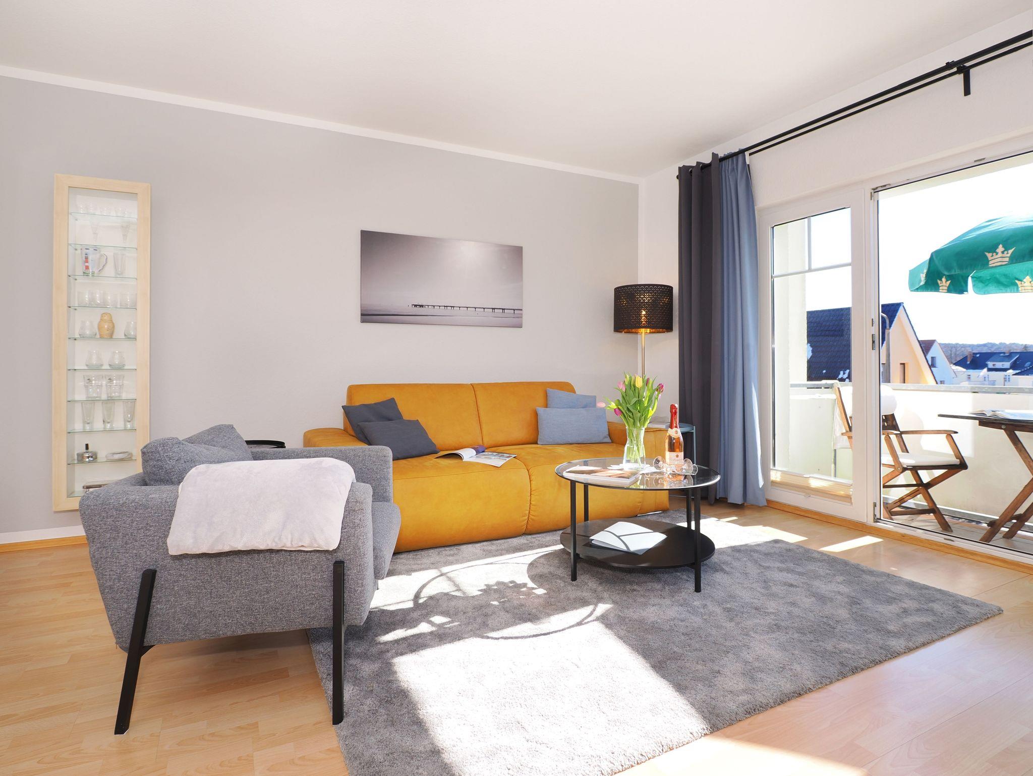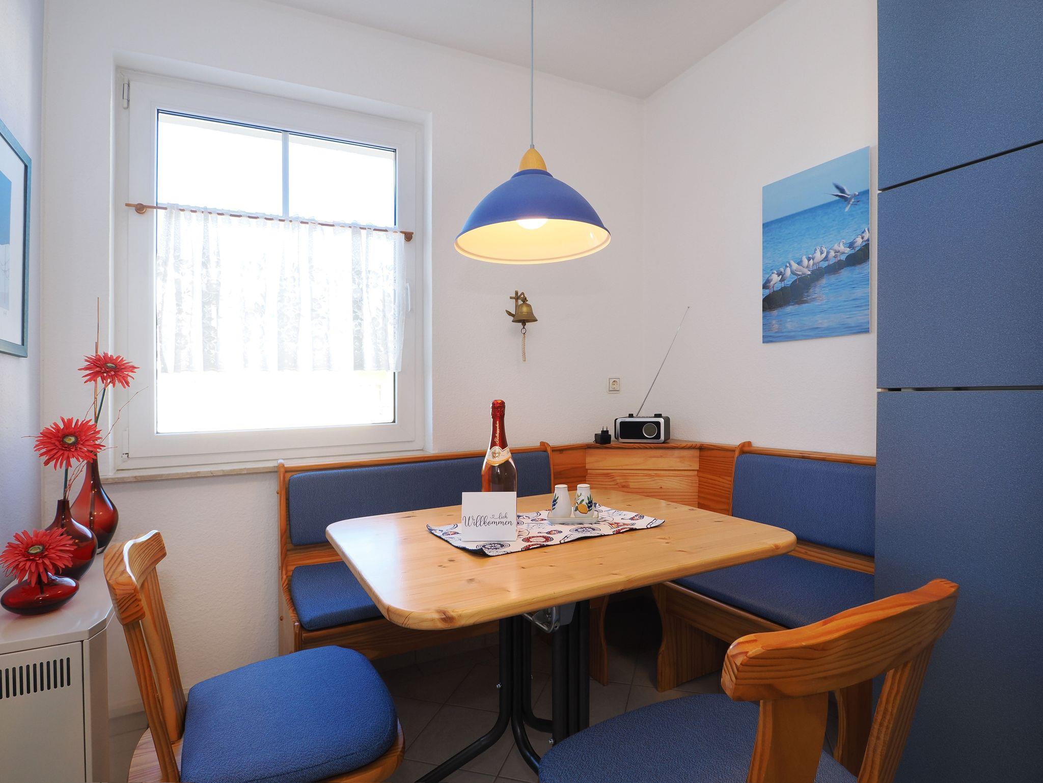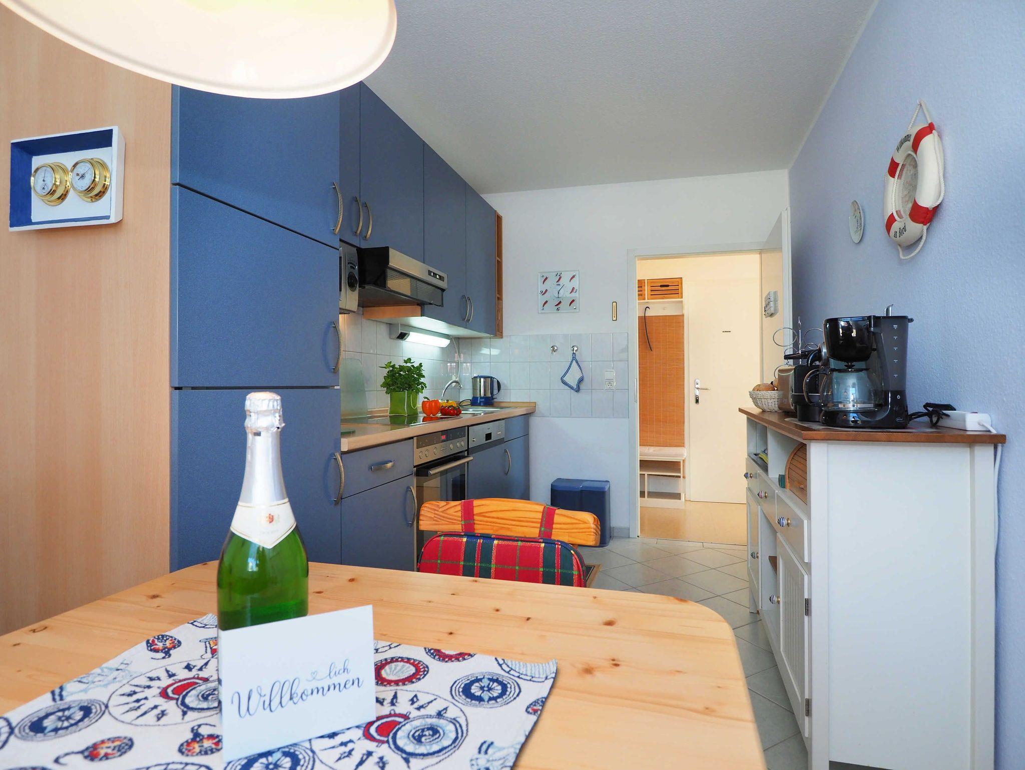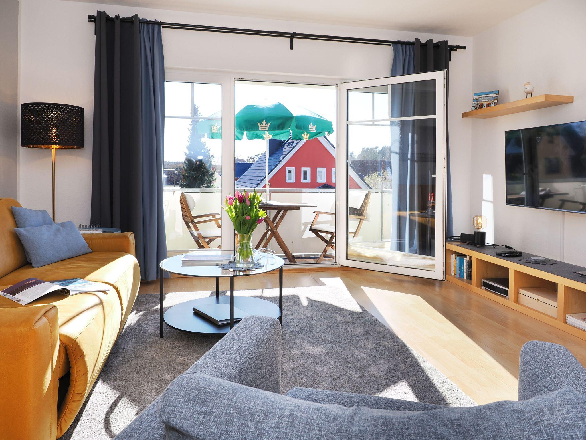 Diese helle und freundliche 58 qm große Nichtraucher-Wohnung befindet sich im 1. OG mit einer Treppe (ohne Fahrstuhl) und verfügt über ein gemütliches Wohnzimmer mit Couch, Sessel, Musikanlage und Flachbild-TV. Von hier aus gelangen Sie auf den Balkon (Südseite) auf dem Sie den Tag am Meer gemütlich ausklingen lassen können. In der großen, separaten voll ausgestatteten Küche mit einer schönen Sitzecke können Sie morgens Ihr Frühstück genießen. Das Schlafzimmer hat ein Doppelbett und Verdunklungsvorhänge sorgen für einen ruhigen Schlaf. Das Tageslicht-Bad mit Dusche komplettiert die moderne Ausstattung dieser Wohnung. Gratis W-LAN steht Ihnen während des Aufenthaltes zur Verfügung. Ihren eigenen Pkw können Sie gern hinter dem Haus parken. Ihre Fahrräder finden in dem abgeschlossenen Fahrradabstellraum Platz.