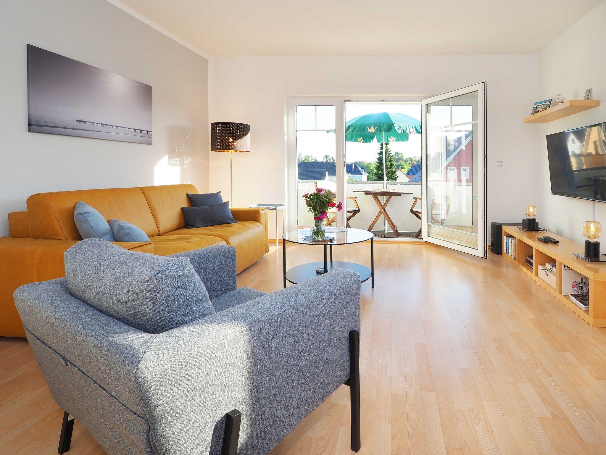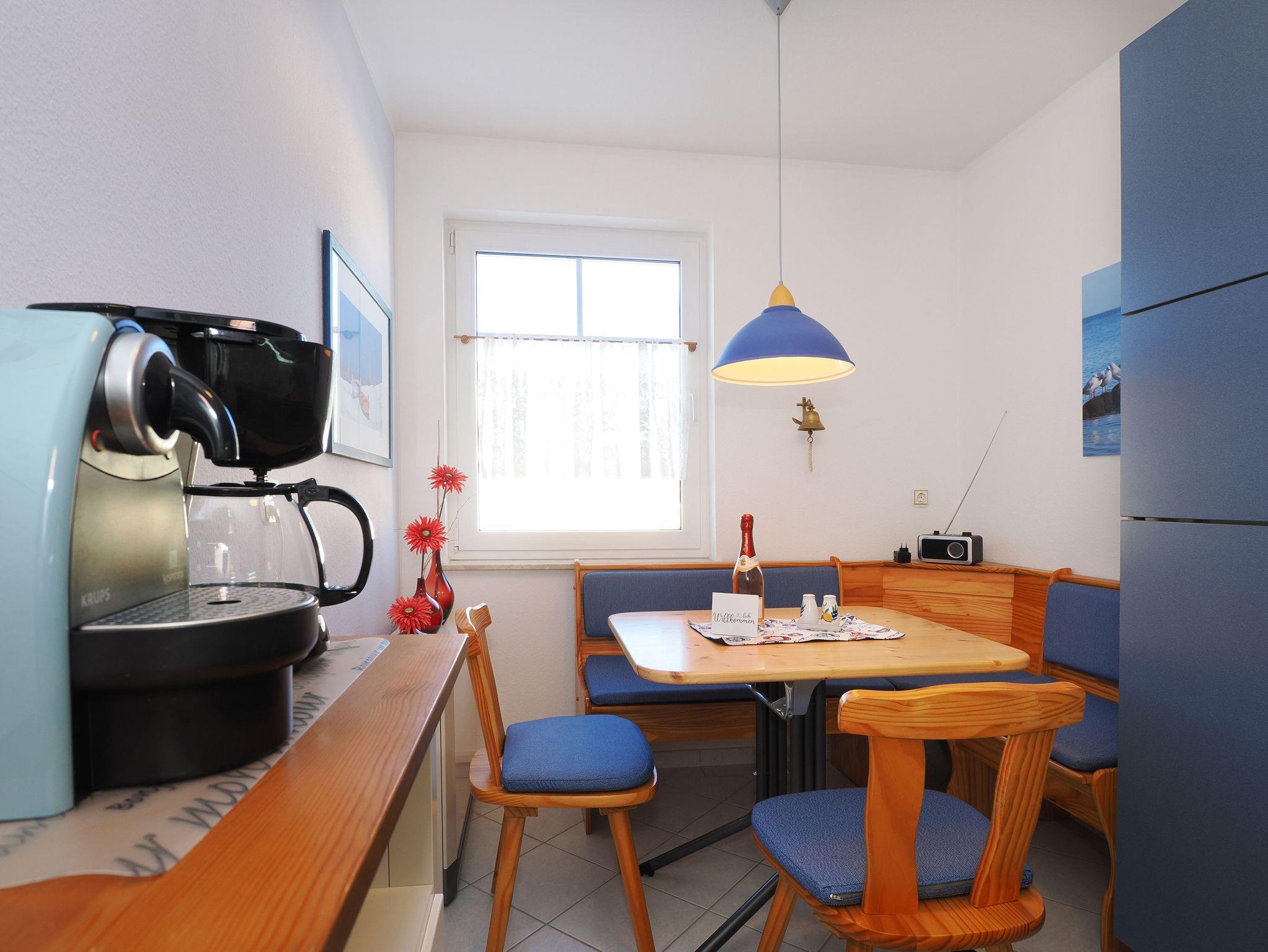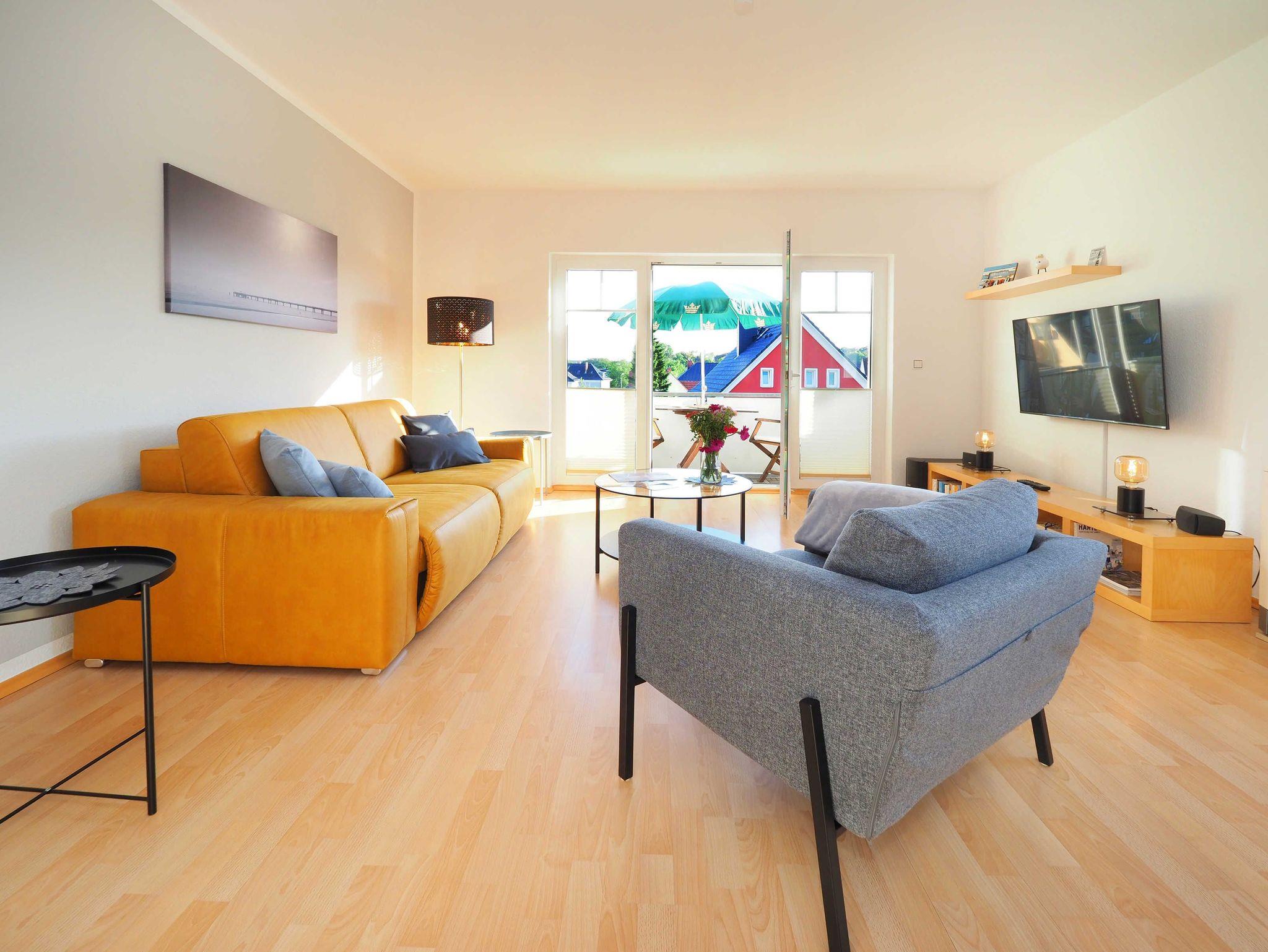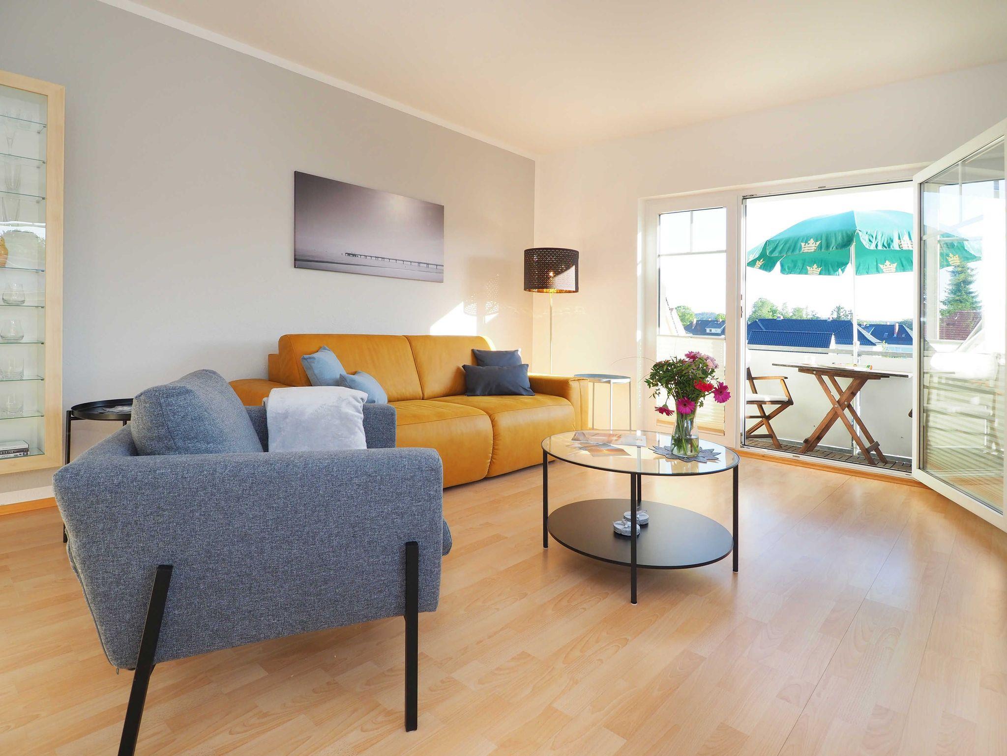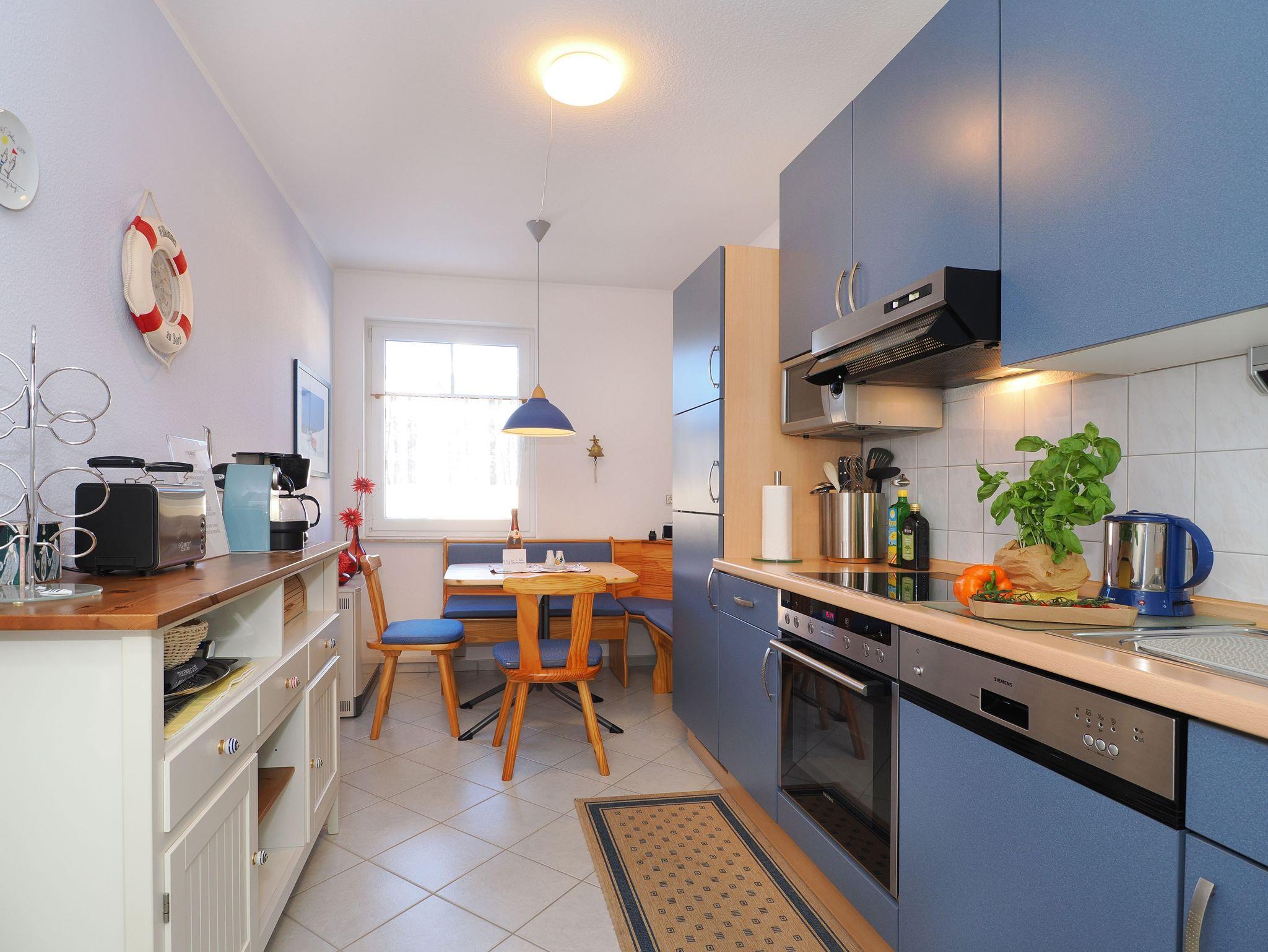 Diese helle und freundliche 58 qm große Nichtraucher-Wohnung befindet sich im 1. OG mit einer Treppe (ohne Fahrstuhl) und verfügt über ein gemütliches Wohnzimmer mit Couch, Sessel, Musikanlage und Flachbild-TV. Von hier aus gelangen Sie auf den Balkon (Südseite) auf dem Sie den Tag am Meer gemütlich ausklingen lassen können. In der großen, separaten voll ausgestatteten Küche mit einer schönen Sitzecke können Sie morgens Ihr Frühstück genießen. Das Schlafzimmer hat ein Doppelbett und Verdunklungsvorhänge sorgen für einen ruhigen Schlaf. Das Tageslicht-Bad mit Dusche komplettiert die moderne Ausstattung dieser Wohnung. Gratis W-LAN steht Ihnen während des Aufenthaltes zur Verfügung. Ihren eigenen Pkw können Sie gern hinter dem Haus parken. Ihre Fahrräder finden in dem abgeschlossenen Fahrradabstellraum Platz.