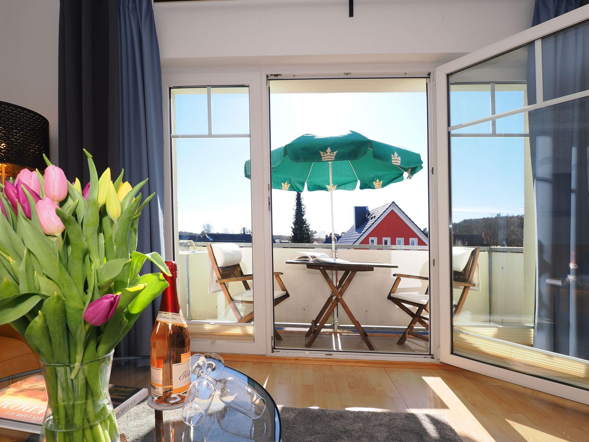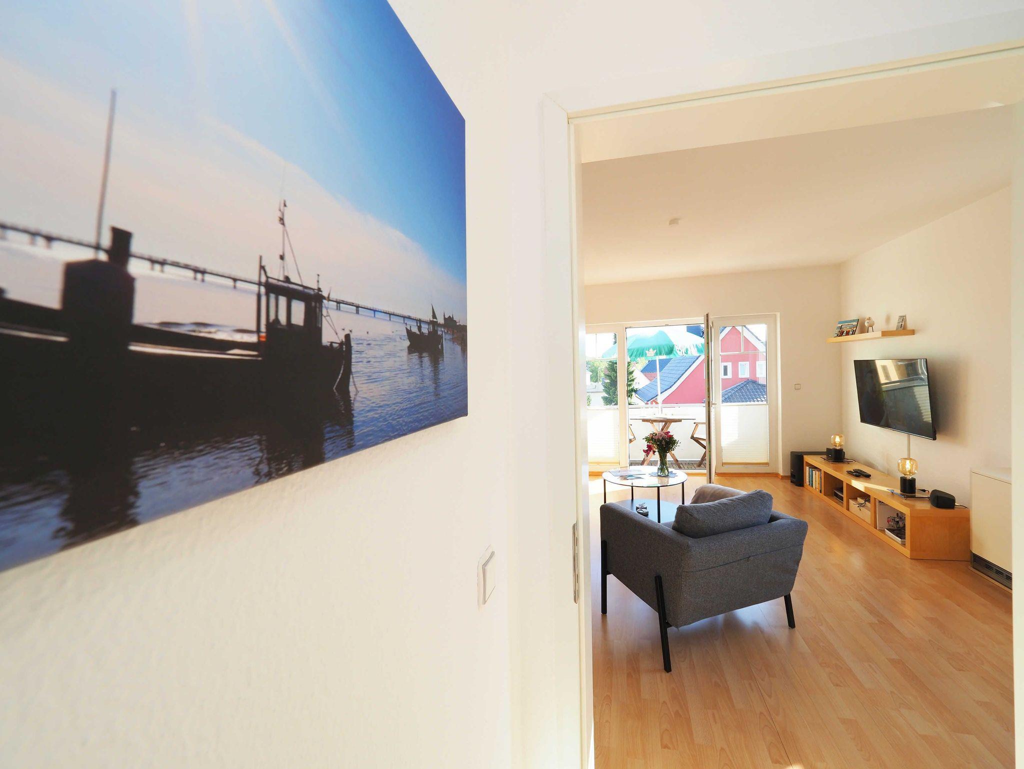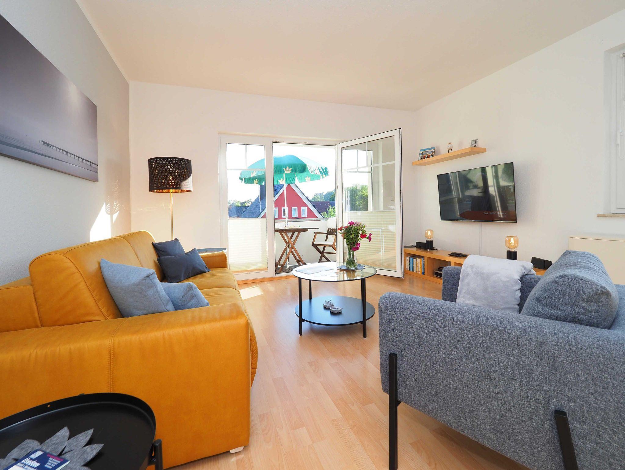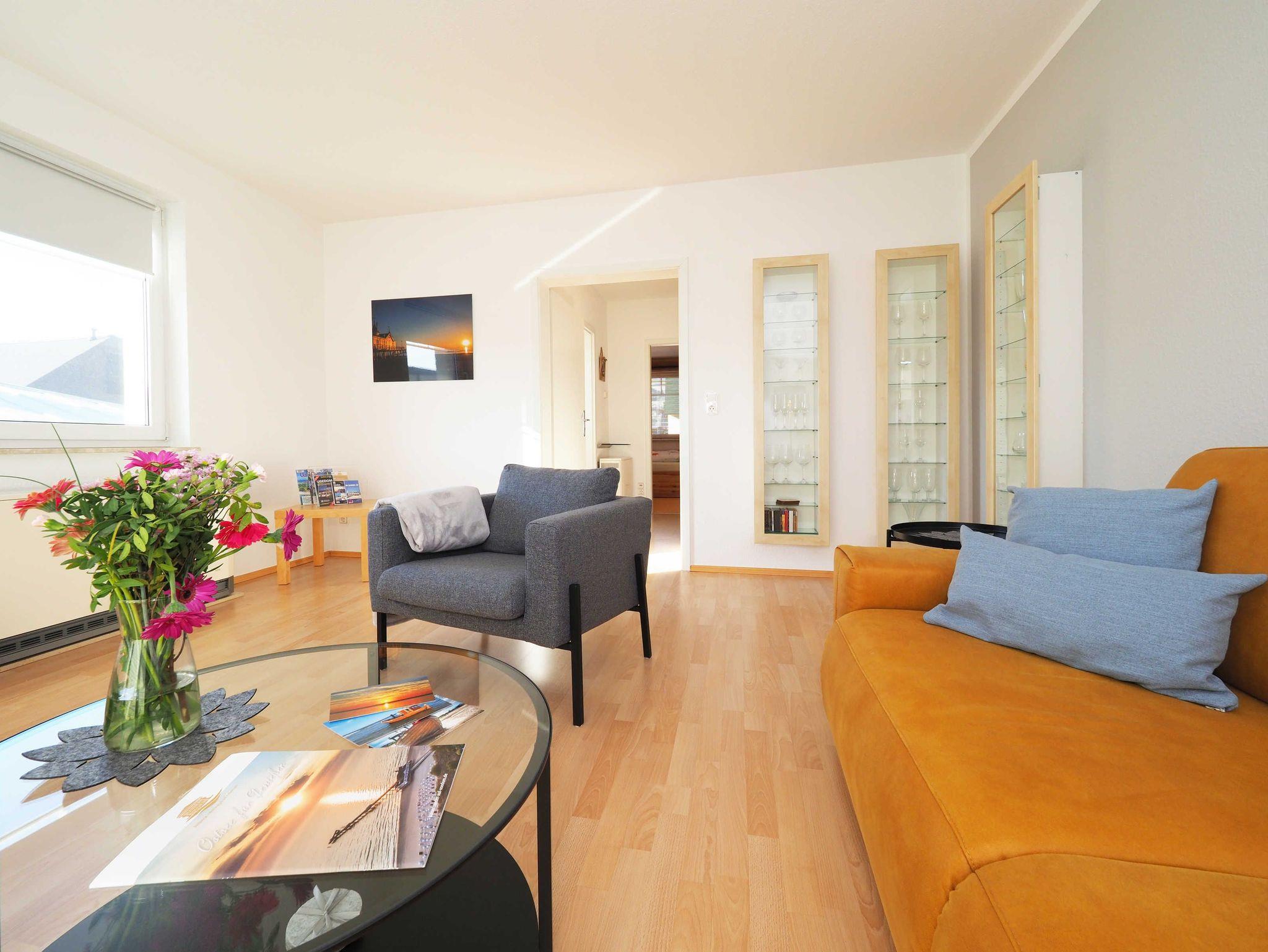 Diese helle und freundliche 58 qm große Nichtraucher-Wohnung befindet sich im 1. OG mit einer Treppe (ohne Fahrstuhl) und verfügt über ein gemütliches Wohnzimmer mit Couch, Sessel, Musikanlage und Flachbild-TV. Von hier aus gelangen Sie auf den Balkon (Südseite) auf dem Sie den Tag am Meer gemütlich ausklingen lassen können. In der großen, separaten voll ausgestatteten Küche mit einer schönen Sitzecke können Sie morgens Ihr Frühstück genießen. Das Schlafzimmer hat ein Doppelbett und Verdunklungsvorhänge sorgen für einen ruhigen Schlaf. Das Tageslicht-Bad mit Dusche komplettiert die moderne Ausstattung dieser Wohnung. Gratis W-LAN steht Ihnen während des Aufenthaltes zur Verfügung. Ihren eigenen Pkw können Sie gern hinter dem Haus parken. Ihre Fahrräder finden in dem abgeschlossenen Fahrradabstellraum Platz.