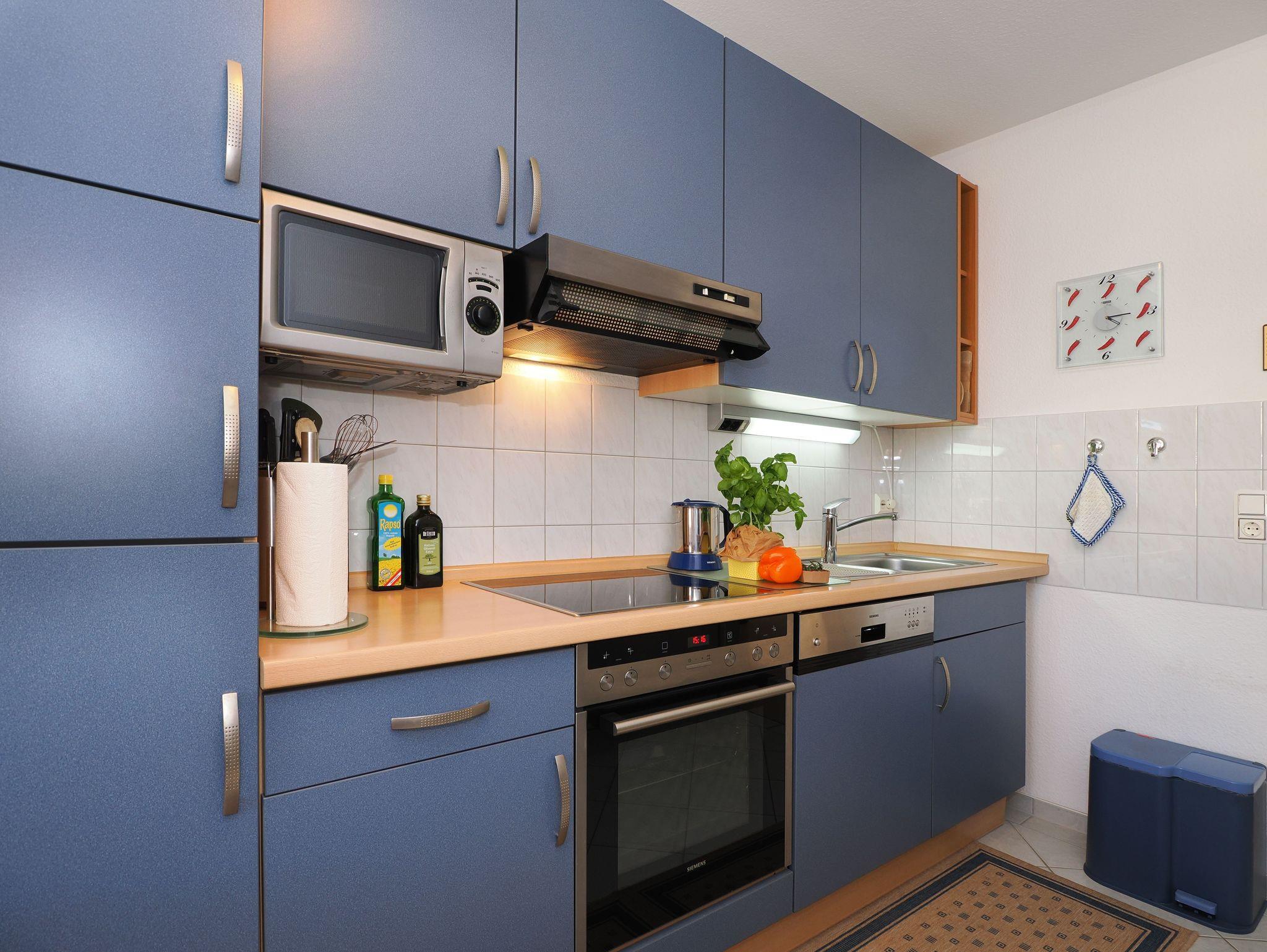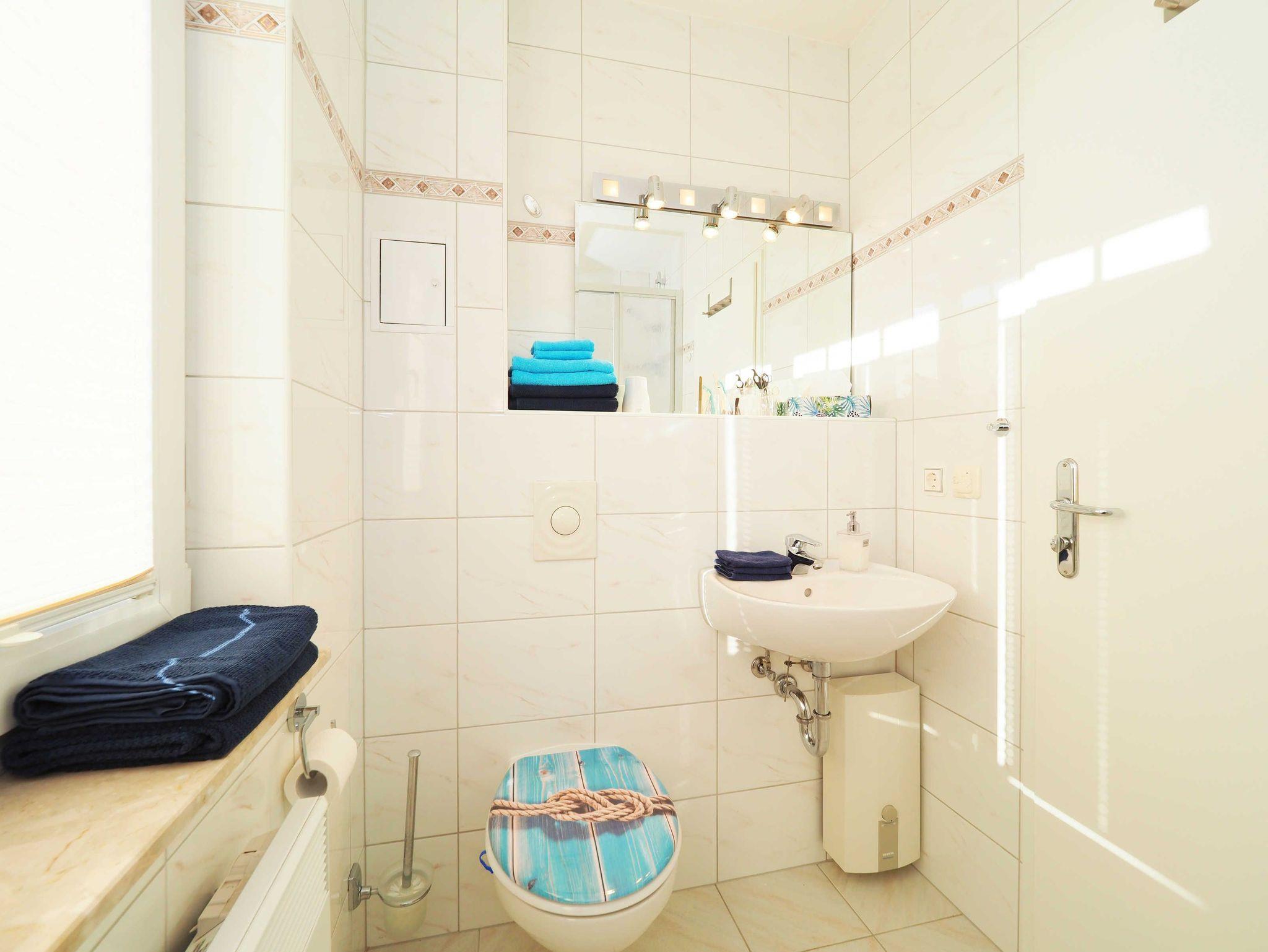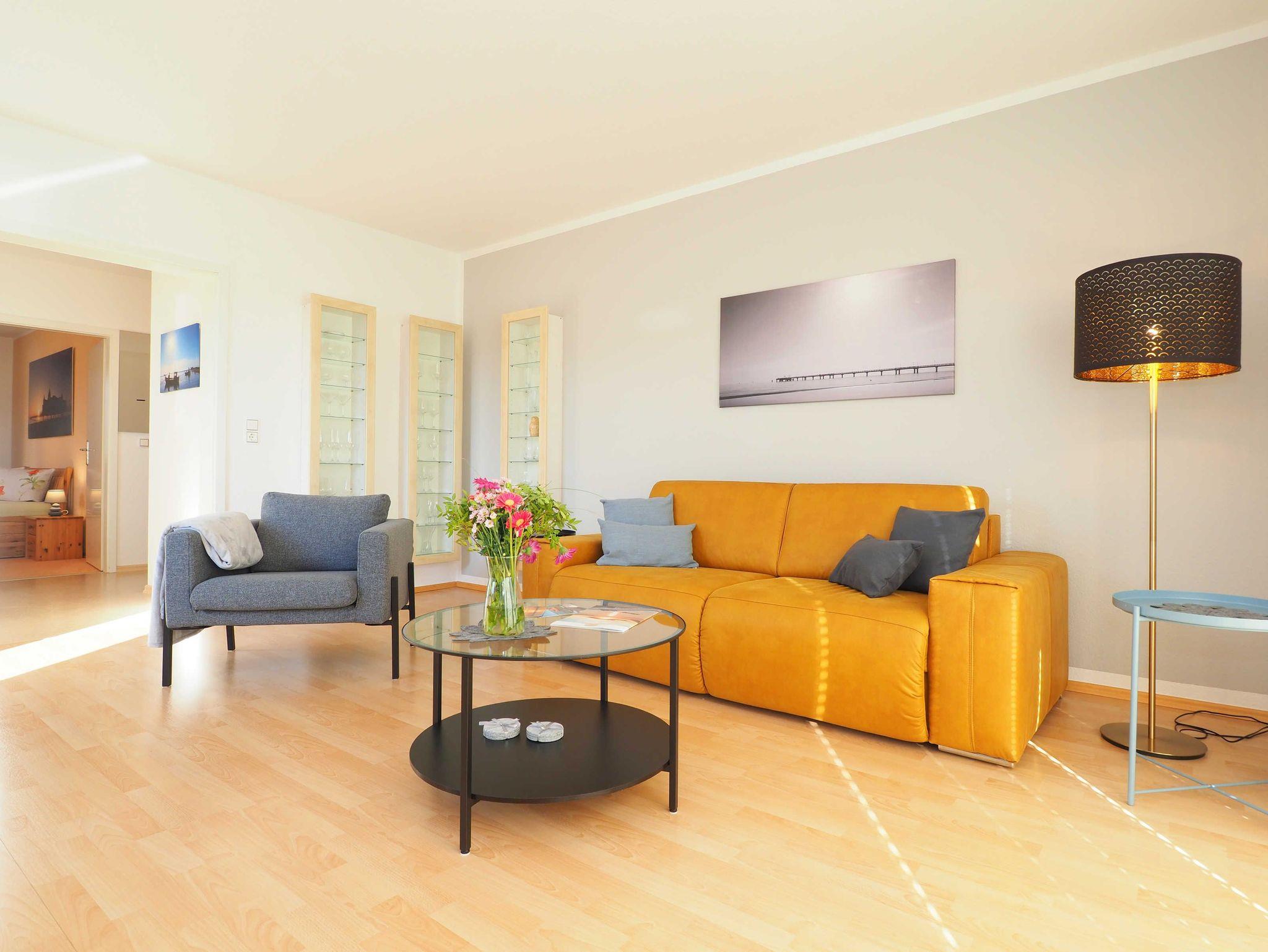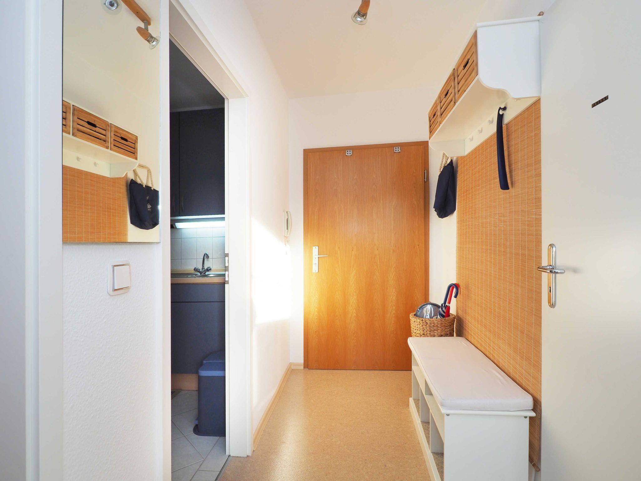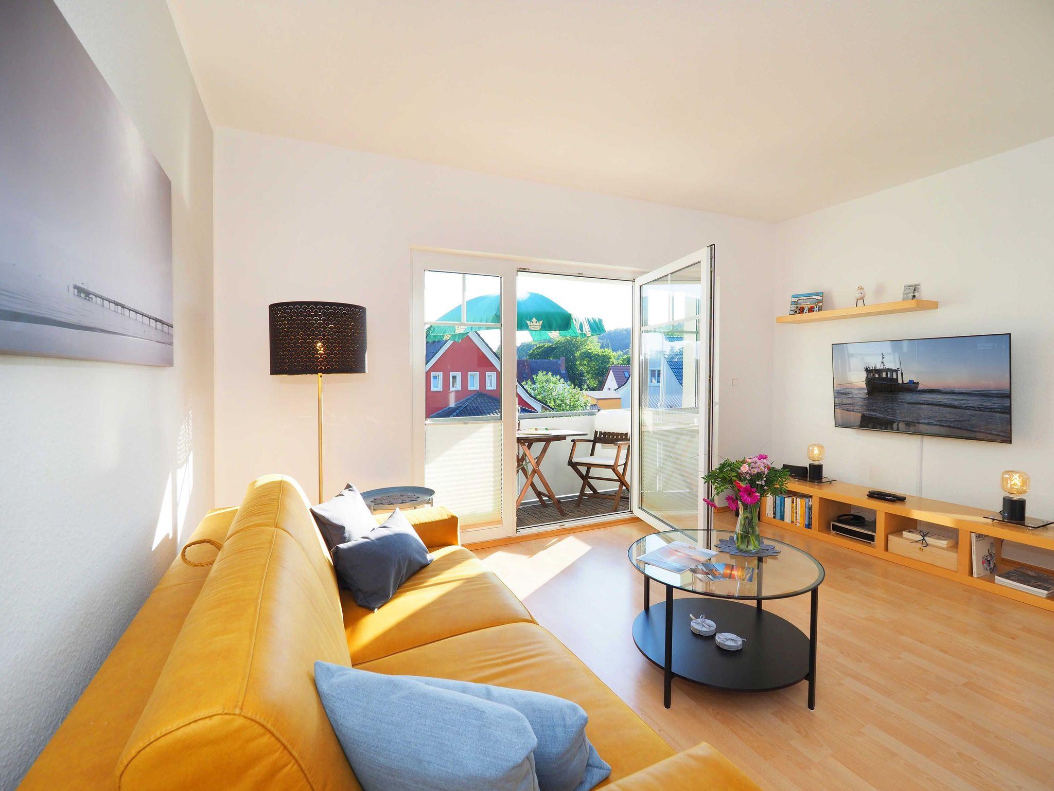 Diese helle und freundliche 58 qm große Nichtraucher-Wohnung befindet sich im 1. OG mit einer Treppe (ohne Fahrstuhl) und verfügt über ein gemütliches Wohnzimmer mit Couch, Sessel, Musikanlage und Flachbild-TV. Von hier aus gelangen Sie auf den Balkon (Südseite) auf dem Sie den Tag am Meer gemütlich ausklingen lassen können. In der großen, separaten voll ausgestatteten Küche mit einer schönen Sitzecke können Sie morgens Ihr Frühstück genießen. Das Schlafzimmer hat ein Doppelbett und Verdunklungsvorhänge sorgen für einen ruhigen Schlaf. Das Tageslicht-Bad mit Dusche komplettiert die moderne Ausstattung dieser Wohnung. Gratis W-LAN steht Ihnen während des Aufenthaltes zur Verfügung. Ihren eigenen Pkw können Sie gern hinter dem Haus parken. Ihre Fahrräder finden in dem abgeschlossenen Fahrradabstellraum Platz.