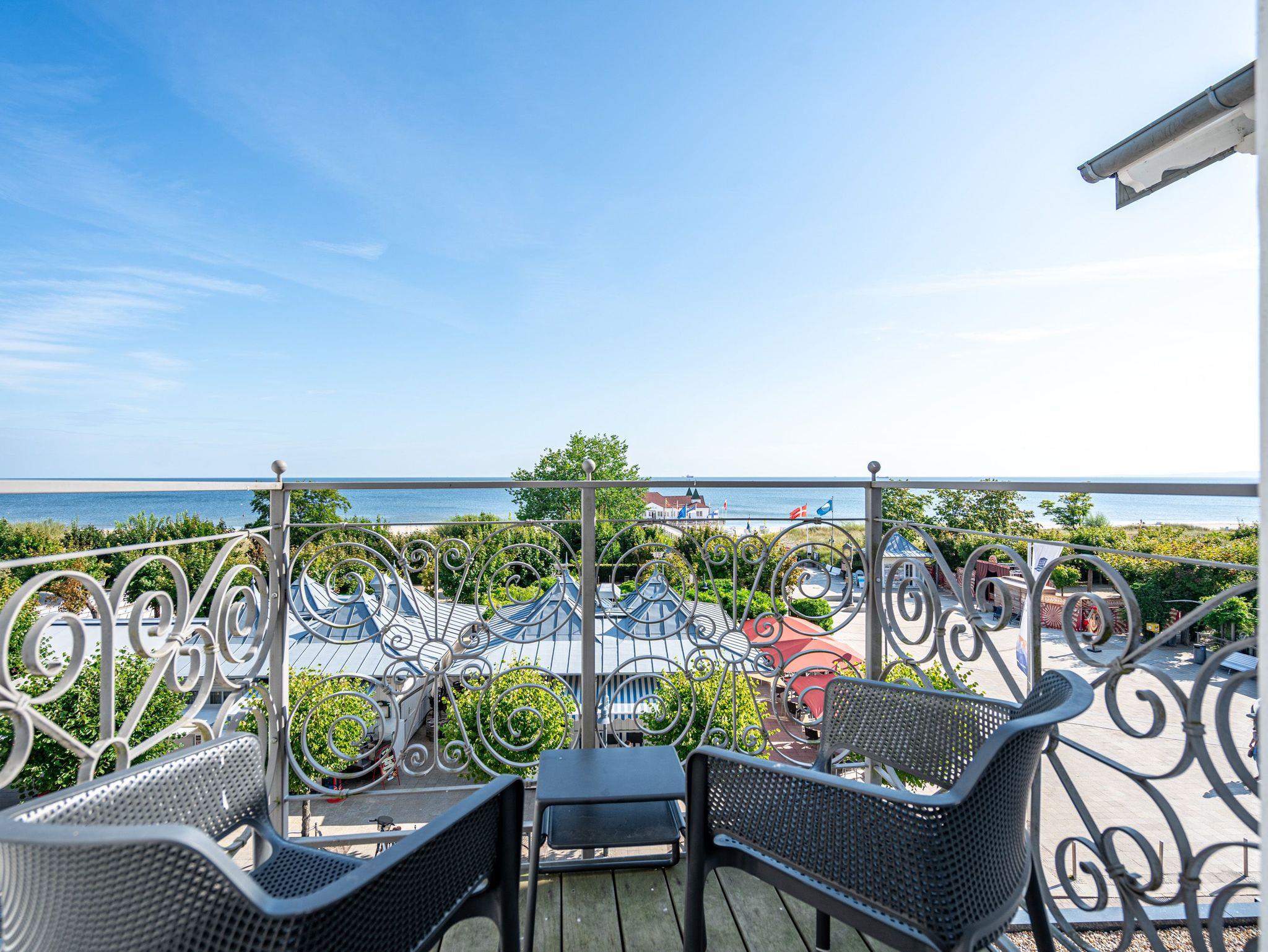 Die Villa Seedüwel - als Nachbarhaus der Strandterrasse, besticht durch ihre einmalige Lage direkt an der Ahlbecker Seebrücke, der belebten Promenade sowie der historischen Konzertmuschel, einem beliebten Treffpunkt für Kunst und Kultur. Dieses Objekt bietet insgesamt 13 Ferienwohnungen mit einem, zwei oder drei Räumen. Einige der Apartments bieten einen spektakulären Ausblick auf die historische Seebrücke und die Ostsee. Für Ihren PKW steht ein Stellplatz in der Tiefgarage des benachbarten Hauses Strandterrasse zur Verfügung (Zufahrt über Kurstraße), von der Sie direkten Zugang zur Villa haben. Ein Fahrstuhl im Haus ist über einige Stufen im Flur erreichbar. Die Villa ist komplett mit kostenfreiem WLAN ausgestattet. Zudem gibt es einen gemeinschaftlichen Fahrradkeller für die sichere Aufbewahrung Ihrer Fahrräder. Der feinsandige, weiße Strand und das Meer liegen nur wenige Schritte entfernt. Die attraktive Lage bietet Ihnen eine Vielzahl an Restaurants, Cafés und Einkaufsmöglichkeiten (unter anderem im Erdgeschoss des Hauses) sowie das charmante Ambiente von Ahlbeck.