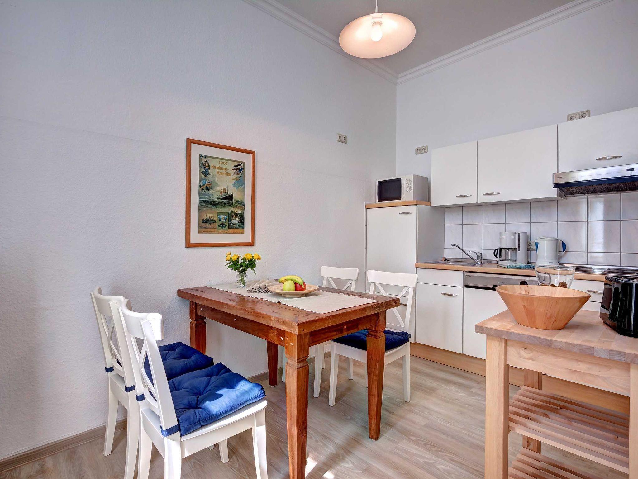 Das gemütliche 2-Zimmer-Appartement Nr. 6 befindet sich im Erdgeschoss der Villa Ostseewarte nur 100m vom Ostseestrand entfernt. Es verfügt über ein separates Schlafzimmer mit einem Doppelbett und einen Wohnbereich mit gemütlicher Sitzgruppe, auf welcher eine Aufbettung für eine dritte Person vorgenommen werden kann. In der separaten voll ausgestatteten Küche mit Kaffeemaschine, Wasserkocher, Toaster, sowie Geschirrspüler befindet sich außerdem ein gemütlicher Essplatz. Das Bad ist mit Dusche und WC ausgestattet. Zum Appartement gehört darüber hinaus eine große Terrasse mit Gartenmöbeln. Ein Pkw-Stellplatz steht Ihnen auf dem Grundstück kostenfrei zur Verfügung und Ihre Fahrräder können Sie ebenfalls auf dem Grundstück in einem separaten Abstellraum unterbringen. Dort können Sie auch gegen Gebühr eine Waschmaschine nutzen (Münzgerät). Alle Wohnungen in der Villa Ostseewarte haben passwortgeschütztem DSL-WLAN Internetzugang (gerätegebunden, Euro 1,50 pro Tag und Gerät).
