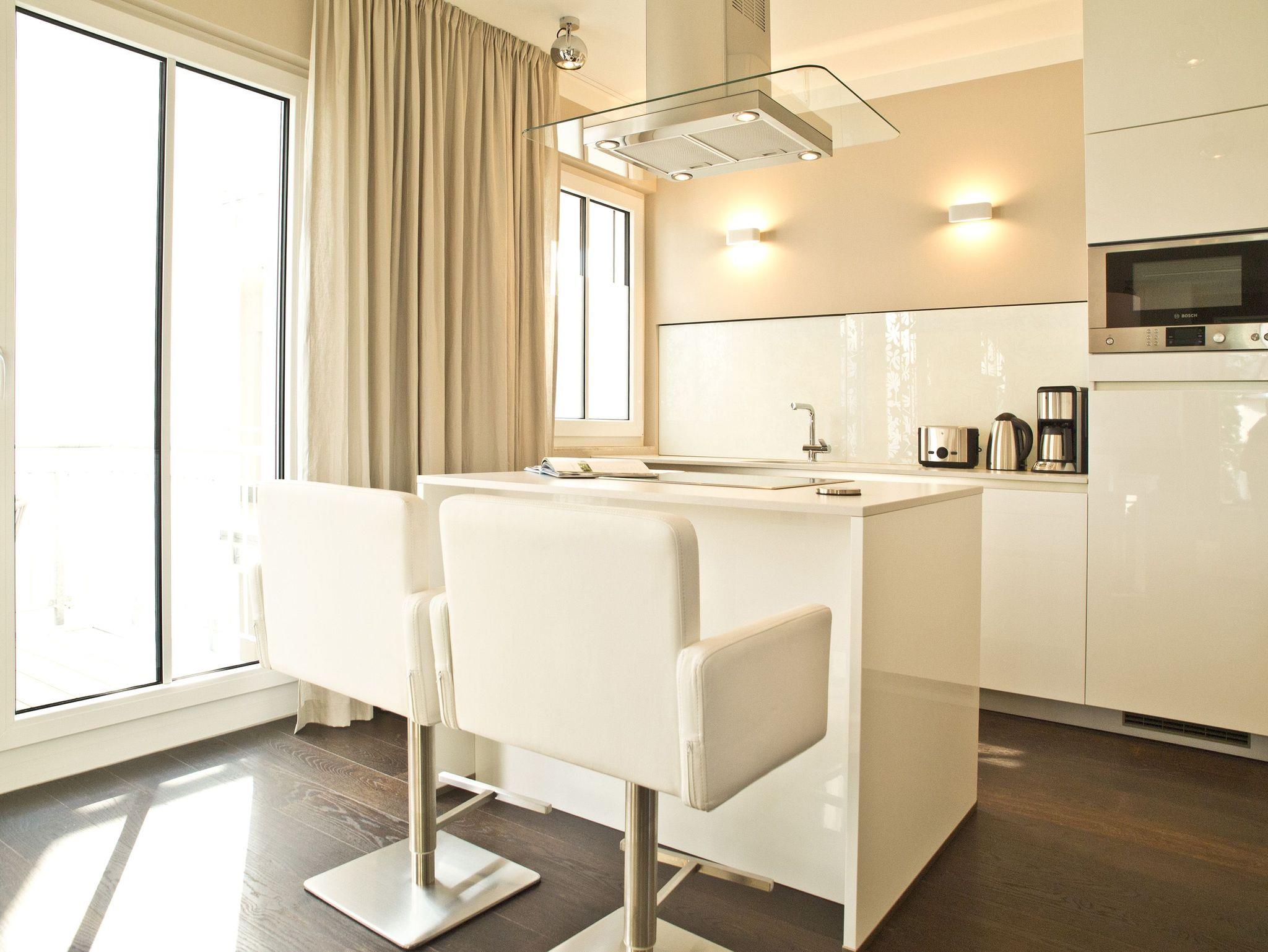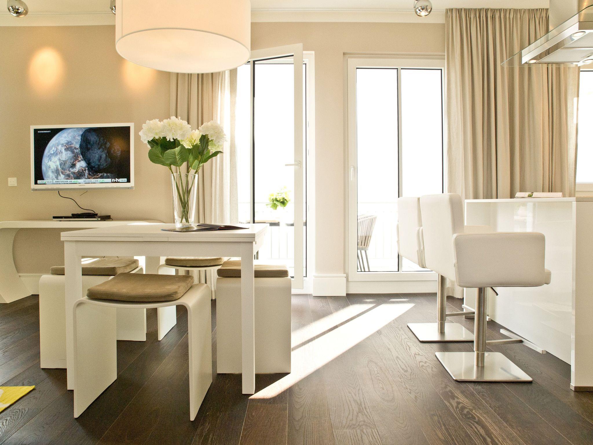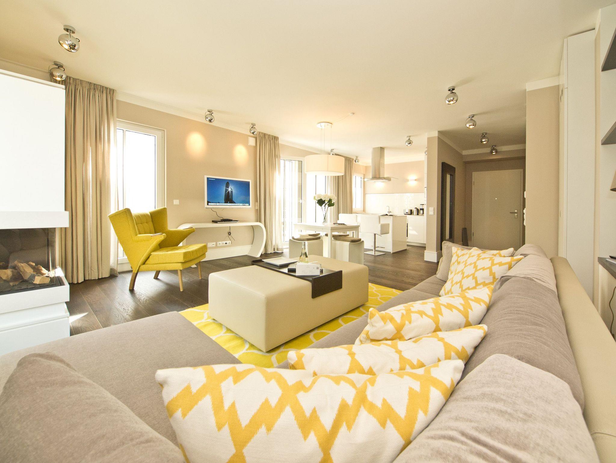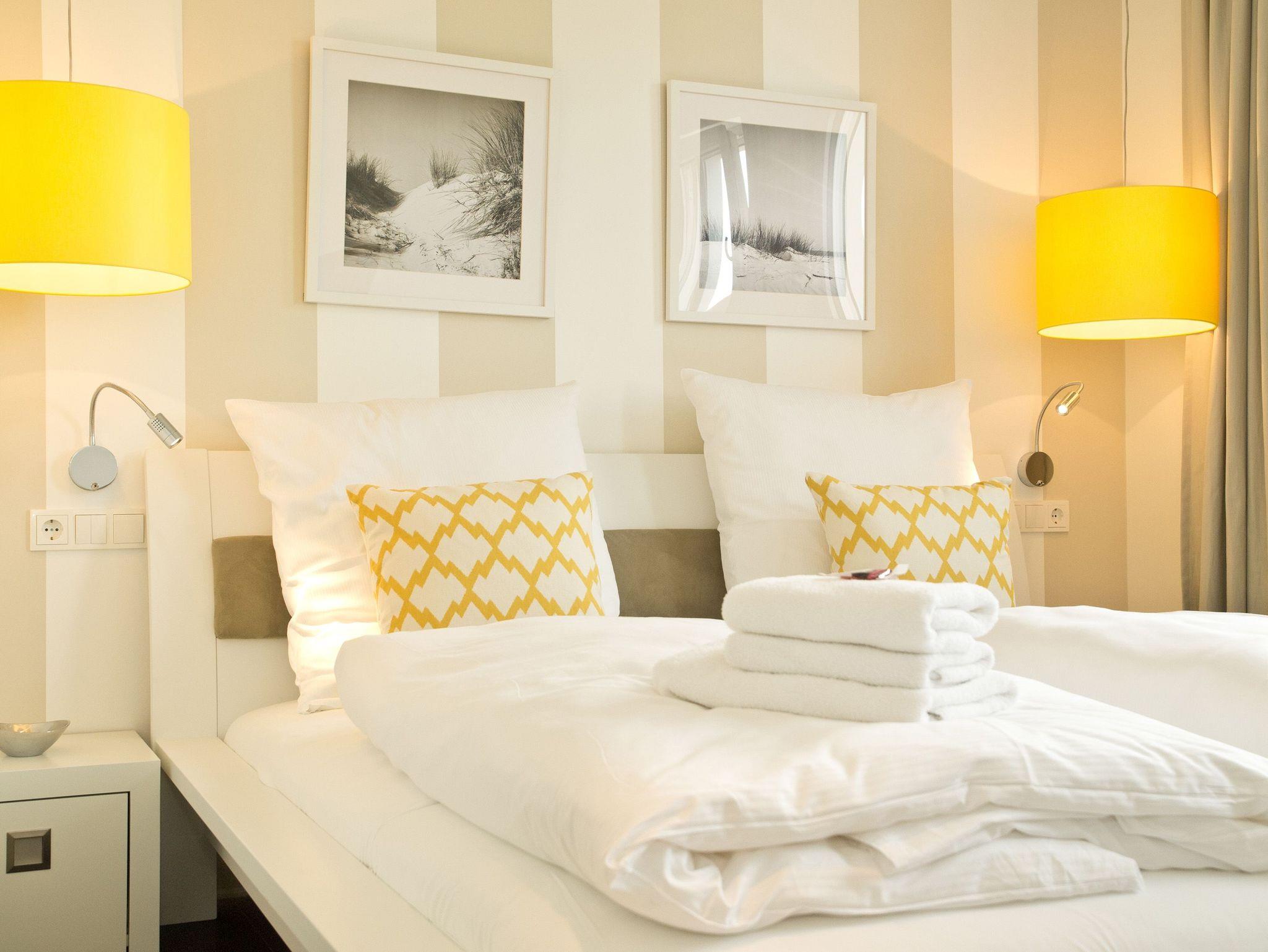 Im 2. Obergeschoss des Dünenpalais trifft modernes Design exklusive Ausstattung! Auf 100 qm wurden hochwertige Einbauten, ein edler dunkler Dielenboden und geschmackvolle Dekorationen von versierter Innenarchitektenhand zusammengestellt und schaffen so eine stylische Wohlfühlatmosphäre für bis zu 4 Personen und 1 Kleinkind (bis 3 Jahre im Kinderreisebett). Der großzügige Wohnbereich mit bequemer Sitzgruppe und Flat-TV schließt sich an die offene Küche mit Essplatz an. Ein besonderes Highlight ist der Gaskamin, der per Fernbedienung ein tolles Ambiente zaubert. Der Masterbedroom (mit Doppelbett 1,80m und Flat-TV) mit Balkon (Nordseite) verfügt über ein eigenes Ankleidezimmer, an das sich das große Bad mit Echtglasdusche [&] WC anschließt. Hier wurde ebenfalls die wohnungseigene Sauna (gegen Gebühr 1,00 Euro pro Stunde) integriert, nicht nur in der kalten Jahreszeit ein Ort zum Relaxen. Das zweite Schlafzimmer ist ebenfalls mit Doppelbett und eigenem Flat-TV ausgestattet, ihm gegenüber liegt das zweite Duschbad. Im Abstellraum kann eine Waschmaschine ( gegen Gebühr) genutzt werden. Ein sonniger Südbalkon mit Strandkorb und Gartenmöbeln rundet das Appartement ab. Für Ihren Komfort steht die Erstausstattung Wäsche für Sie bereit. Auf Wunsch stellen wir ein Kinderreisebett (ohne Matratze [&] Bettzeug) und einen Kinderhochstuhl gegen einen Aufpreis zur Verfügung. Ein PKW-Stellplatz steht Ihnen in der Tiefgarage zur Verfügung.