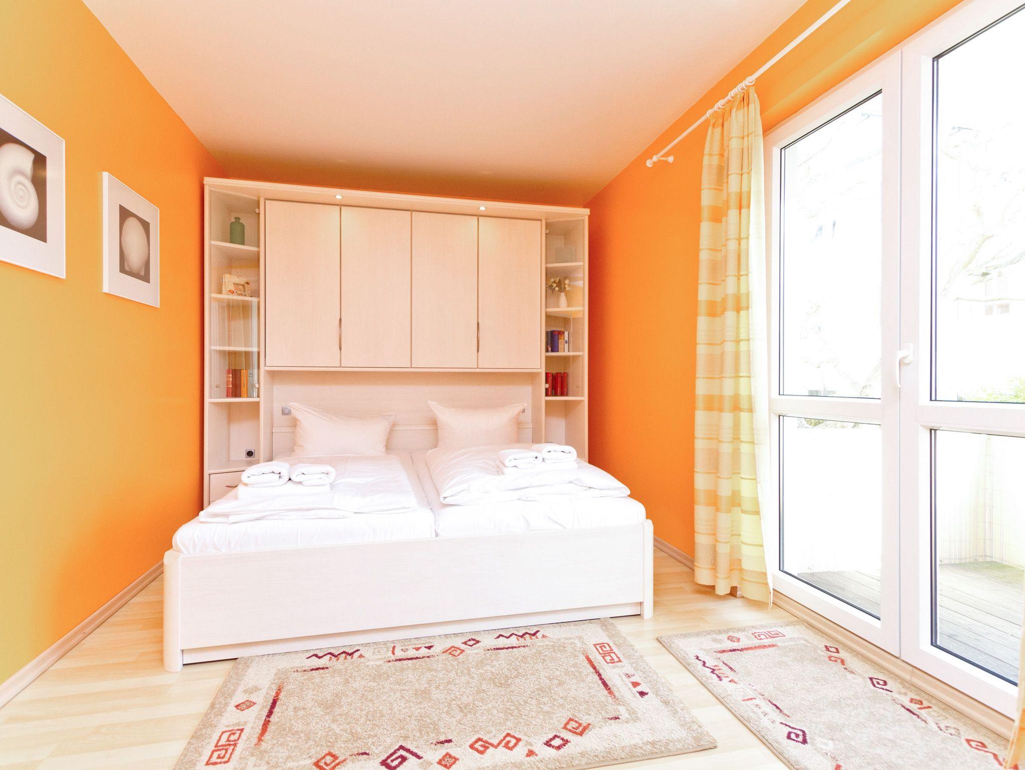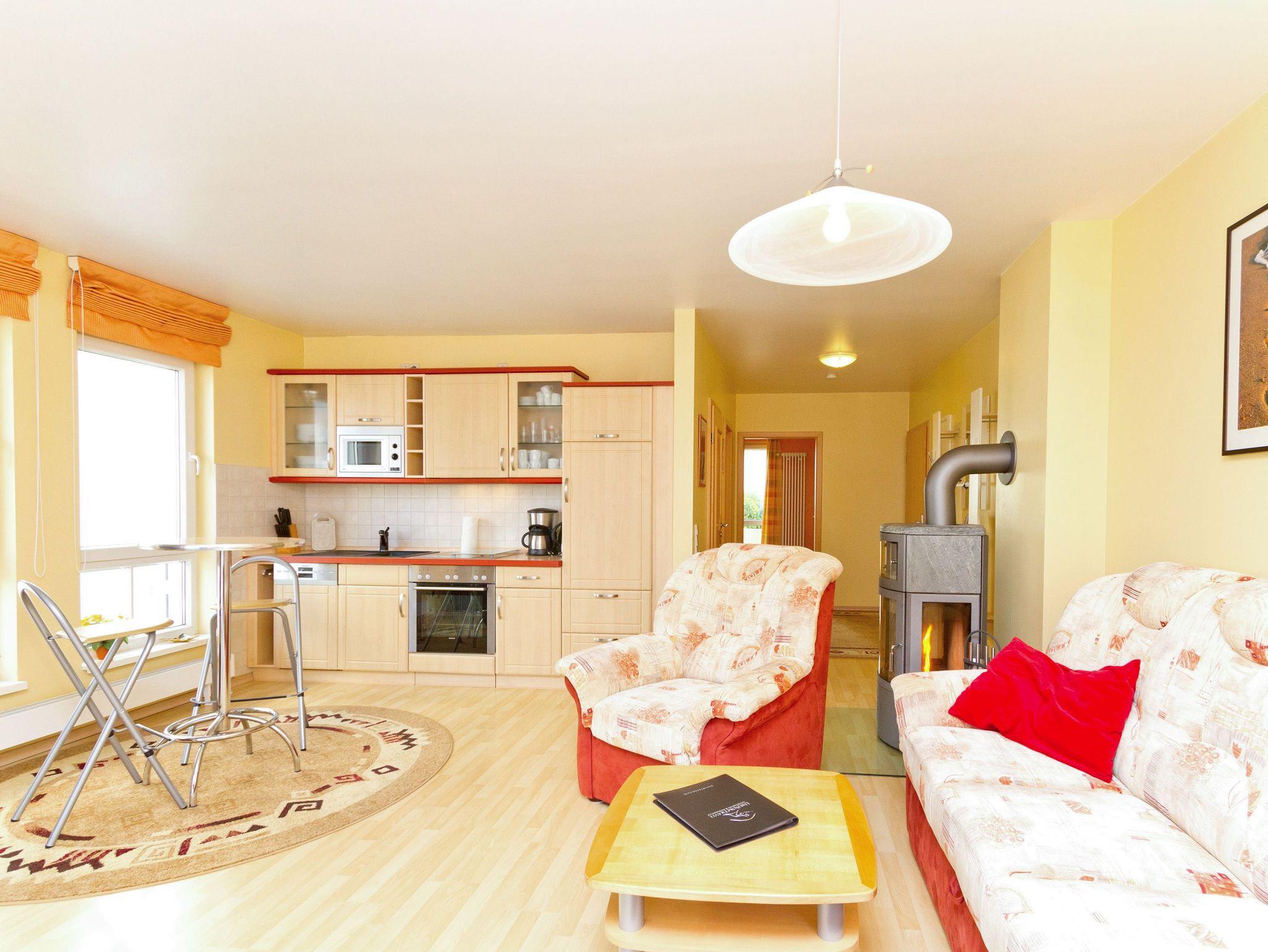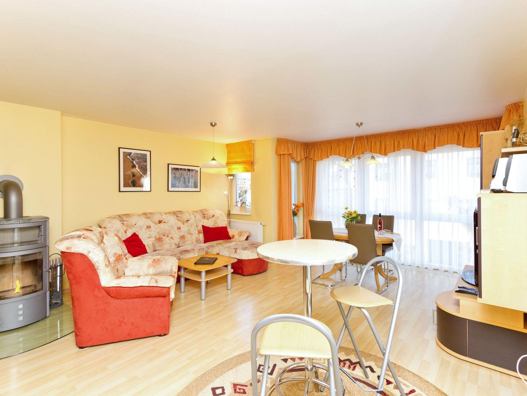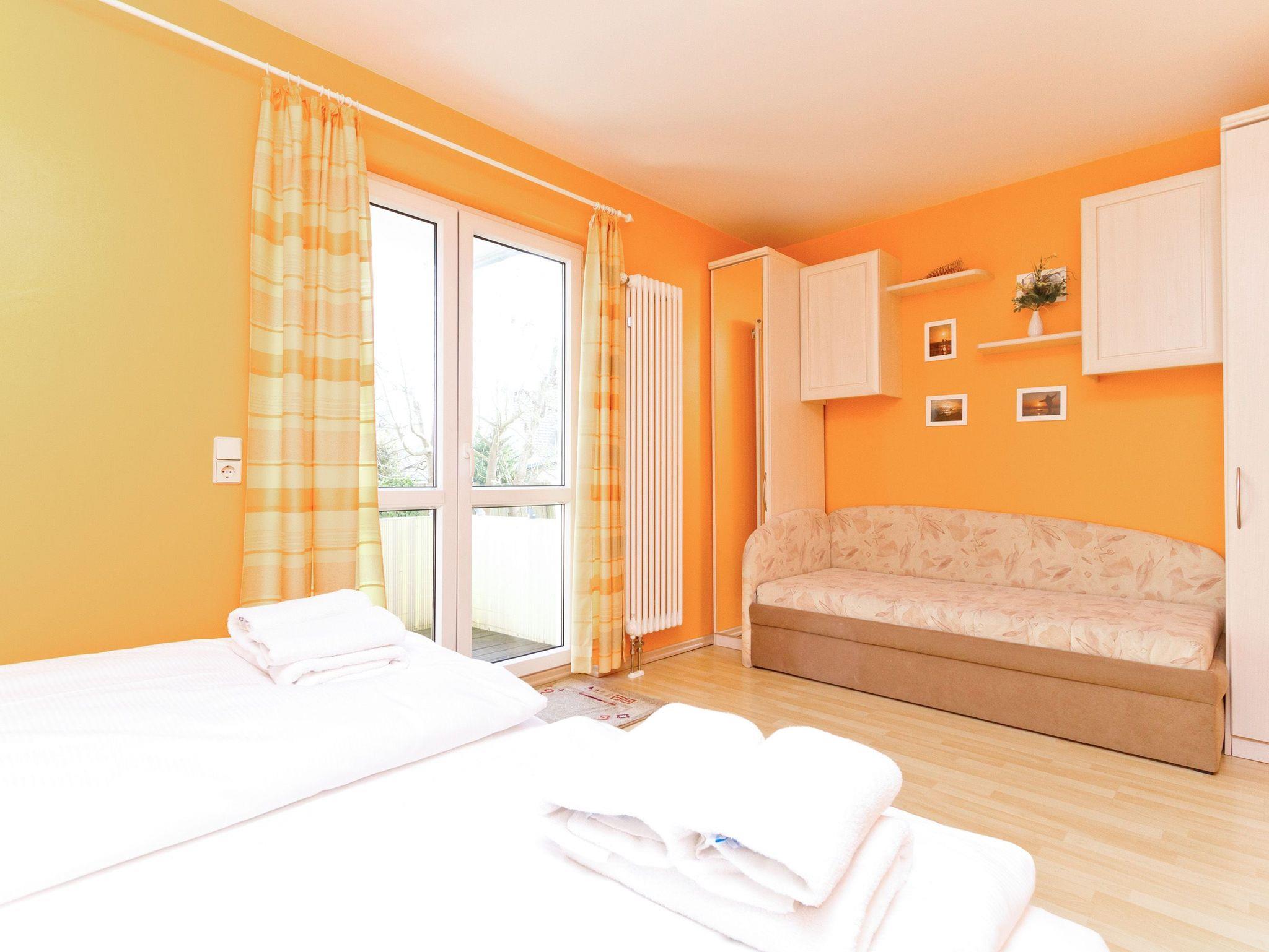 Die Ferienwohnung 11 in der Residenz Bismarck empfängt Sie in der 1. Etage des Hauses. Für Ihren Komfort ist es komplett ausgestattet und verfügt über einen großzügigen Wohnbereich mit Flat-TV, eine integrierte Küchenzeile und einen separaten Essplatz. Der Kamin im Wohnbereich ergänzt den Komfort dieser Ferienwohnung und lädt nicht nur in den kalten Jahreszeiten zum Entspannen ein. Durch die große Fensterfront im Wohnzimmer können Sie seitlich die Ostsee sehen. Das Schlafzimmer bietet Platz für drei Personen und verfügt über ein Doppelbett und ein Einzelbett für ein Kind bis 12 Jahre. Zusätzlich gelangen Sie von hier auf einen Balkon, der nach Osten ausgerichtet ist. Einen weitere Schlafmöglichkeit bietet die Couch mit Schlaffunktion im Wohnzimmer. Für Ihren Komfort ist die Erstausstattung Bettwäsche bereits bezogen und Handtücher liegen bereit.