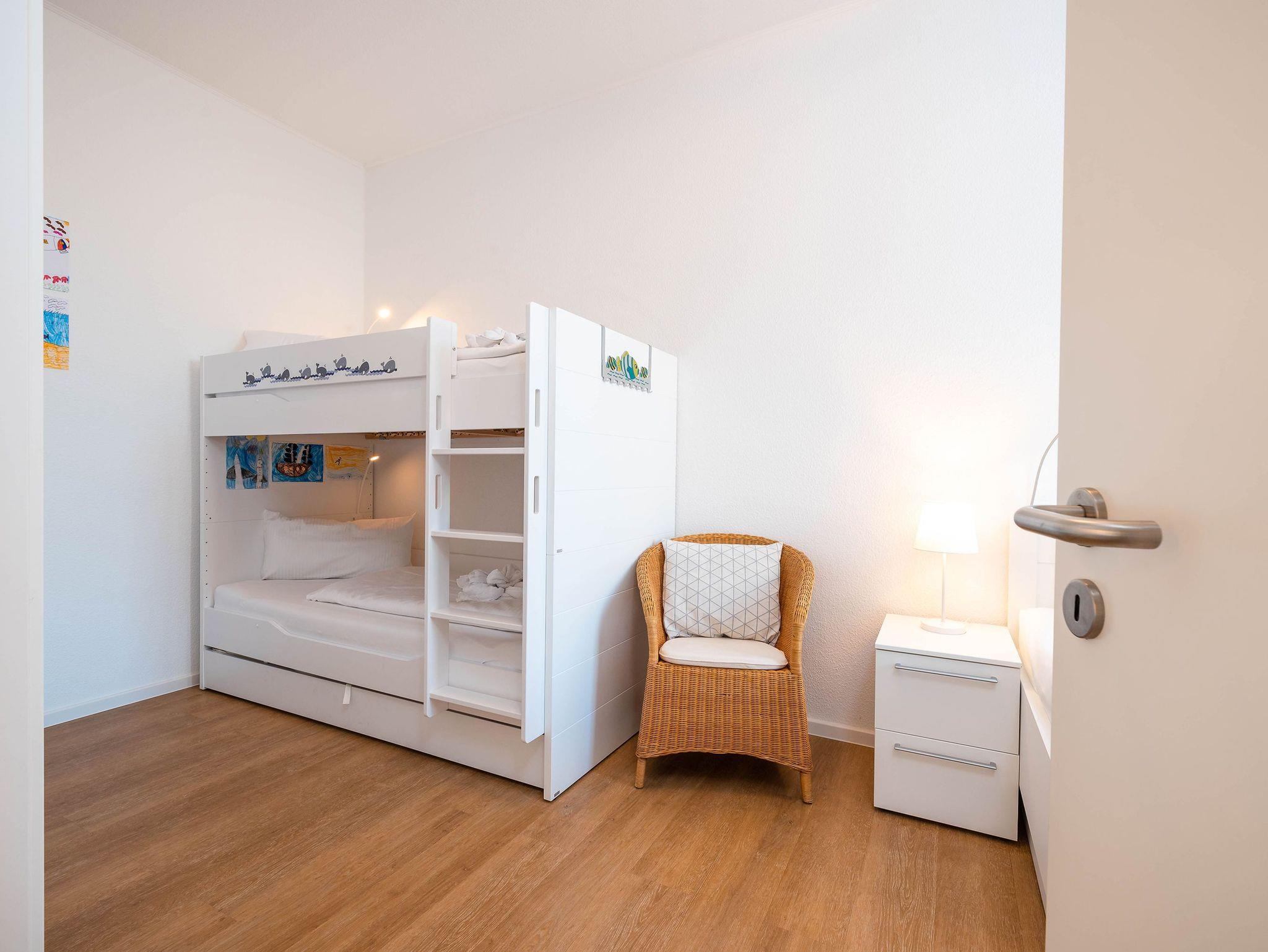 • Familienschlafzimmer mit Doppelbett und Etagenbett + extra Rollbett für 3. Person