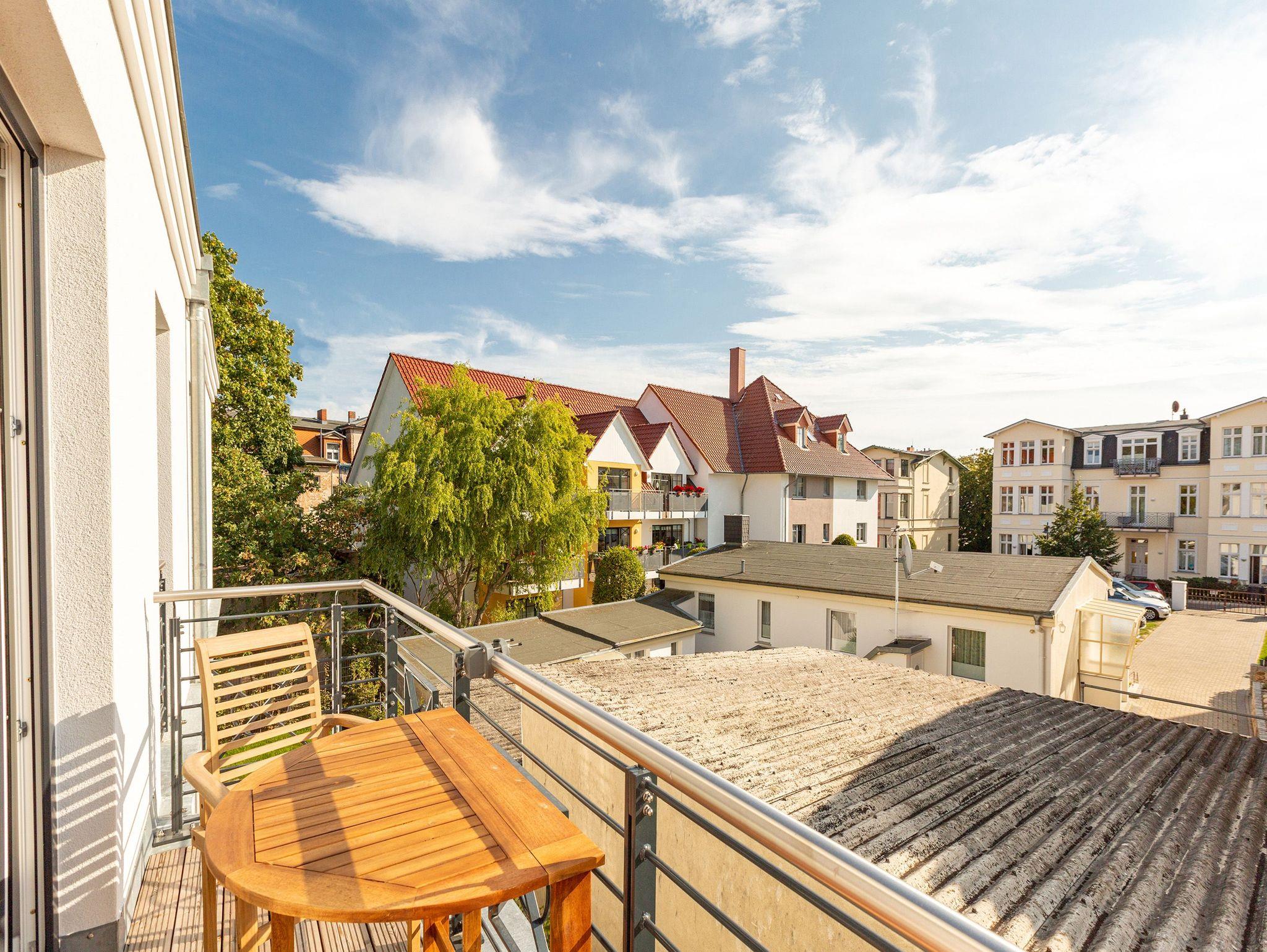 Ankommen, abschalten und neue Energie tanken. Im neu gebauten Quartier 7 im Herzen des Kaiserbades Ahlbeck fällt Ihnen das sicher ganz leicht. Moderne und stilvoll eingerichtete Appartements laden zum Wohlfühlen und Entspannen ein. In den ersten und zweiten Stock gelangen Sie via Fahrstuhl. Schöne, alte Villen umgeben die Anlage, verleihen dem Wohngefühl ein besonderes Flair. Die Zwei- und Drei-Zimmer-Appartements sind geräumig, offen und hell und teilweise mit einer Sauna oder einem Kamin ausgestattet. Wohnkomfort vom Feinsten lädt zum Faulenzen ein. Genießen Sie die frische Ostseeluft auf dem Balkon oder der Terrasse, denn jede Wohnung besitzt einen kleinen Außenbereich. An stürmischen Tagen können Sie von hier aus sogar die Wellen rauschen hören. Das beste Rezept für einen erholsamen Schlaf. Offene Wohnbereiche und voll ausgestattete Küchen sorgen für alle Annehmlichkeiten. Das Haus bietet eine Tiefgarage (Einfahrthöhe ca. 2,03 m). Einige Wohnungen verfügen über einen Kellerraum, der als Unterstellmöglichkeit für Fahrräder genutzt werden kann. Das WLAN-Netz ist für alle kostenfrei. Willkommen also in Ihrem kleinen Urlaubsparadies.
