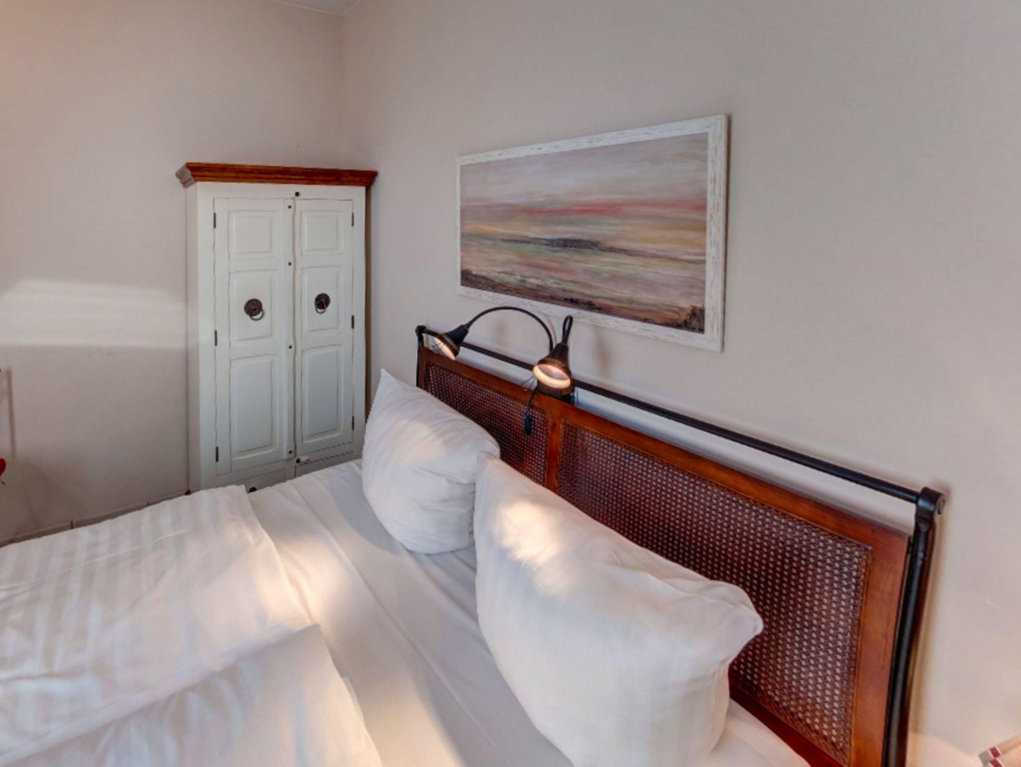 Die Küchenzeile verfügt über einen 4-Plattenherd, Mikrowelle, Geschirrspüler sowie Kaffeemaschine, Toaster und Wasserkocher. Der Kühlschrank hat ein großes Frostfach. Die harmonisch abgestimmte Inneneinrichtung umfasst Fliesen in Wohnküche, Schlafzimmer, Flur und Bad. Das Badezimmer ist mit Fenster, WC und ebenerdiger Dusche ausgestattet. Im Schlafzimmer finden Sie ein Doppelbett (2,0 m x 1,60 m) und einen Wäscheschrank.