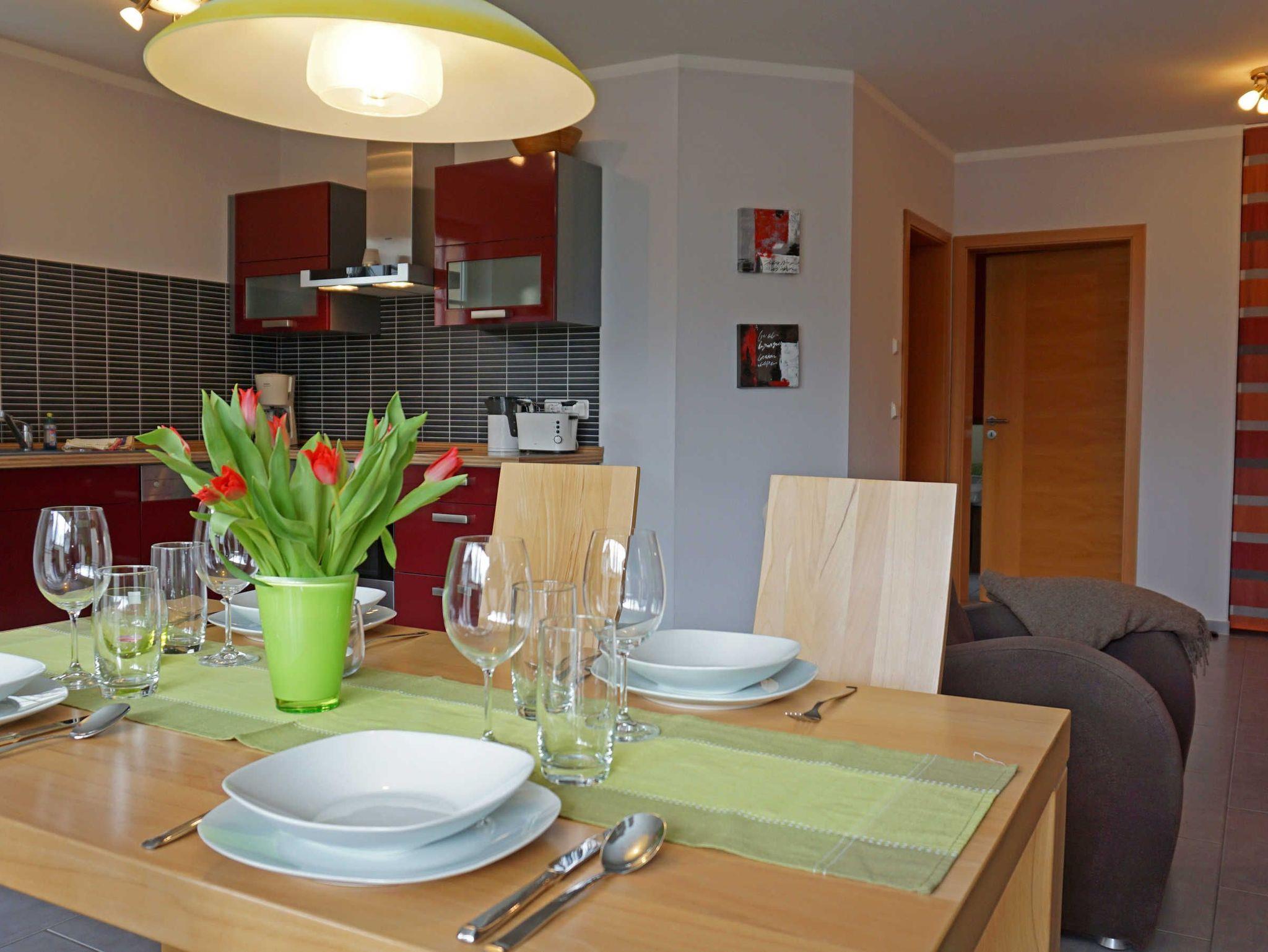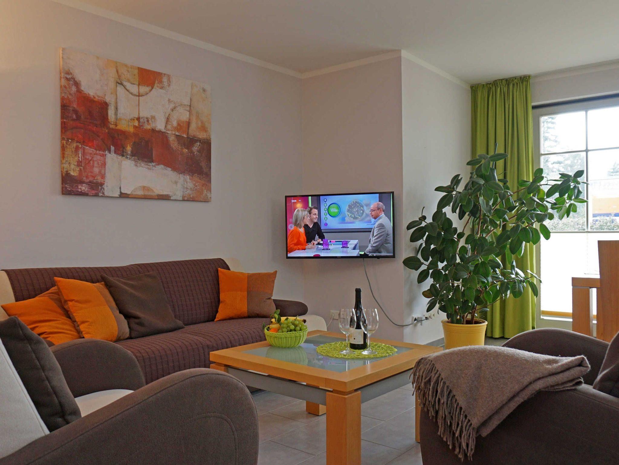 Die 2 Zimmerwohnung 53 qm in Südwestlage mit ebenerdiger Terrasse ist hell und modern eingerichtet und verfügt über einen sehr guten Standard. - alle Böden gefliest (außergewöhnliche Farben und Formen) - alle Türen Echtholz furniert - Fußbodenheizung - Kabelfernsehen (Flachbild) - große Fenster mit Schiebeelementen - Treppenhaus Granit - Markeneinbauküchen - Wechselsprechanlage.
