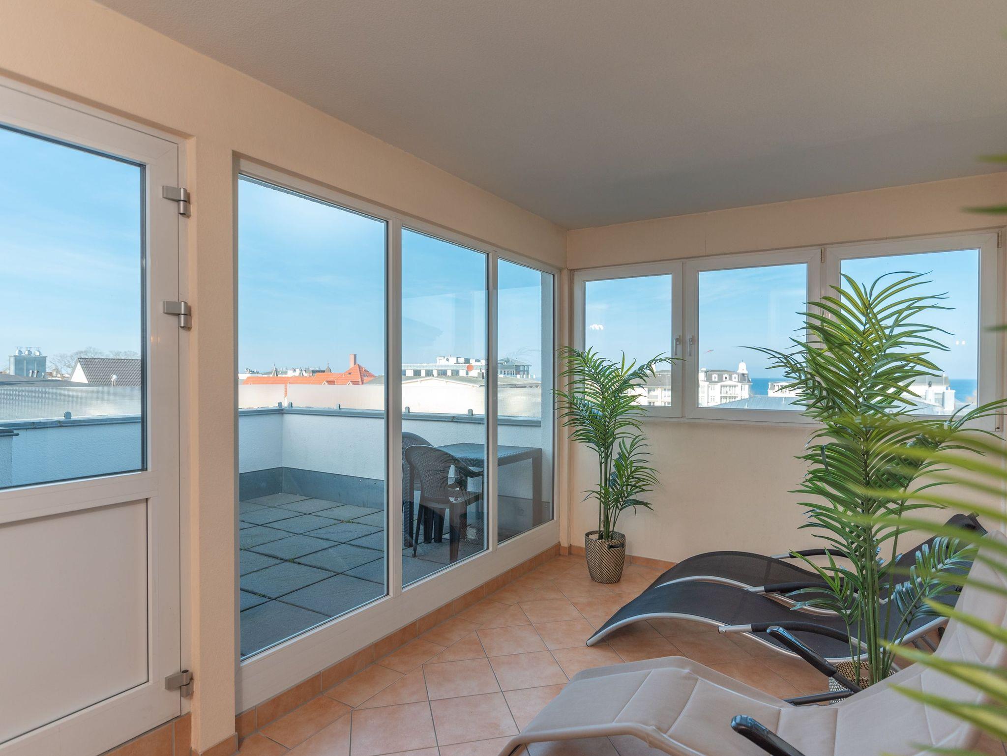 Fahrräder [&] Sauna: Sichere Fahrradabstellung in der Tiefgarage, Zugang zur Gemeinschaftssauna und Dachterrasse mit traumhaftem Blick über Ahlbeck und die Ostsee