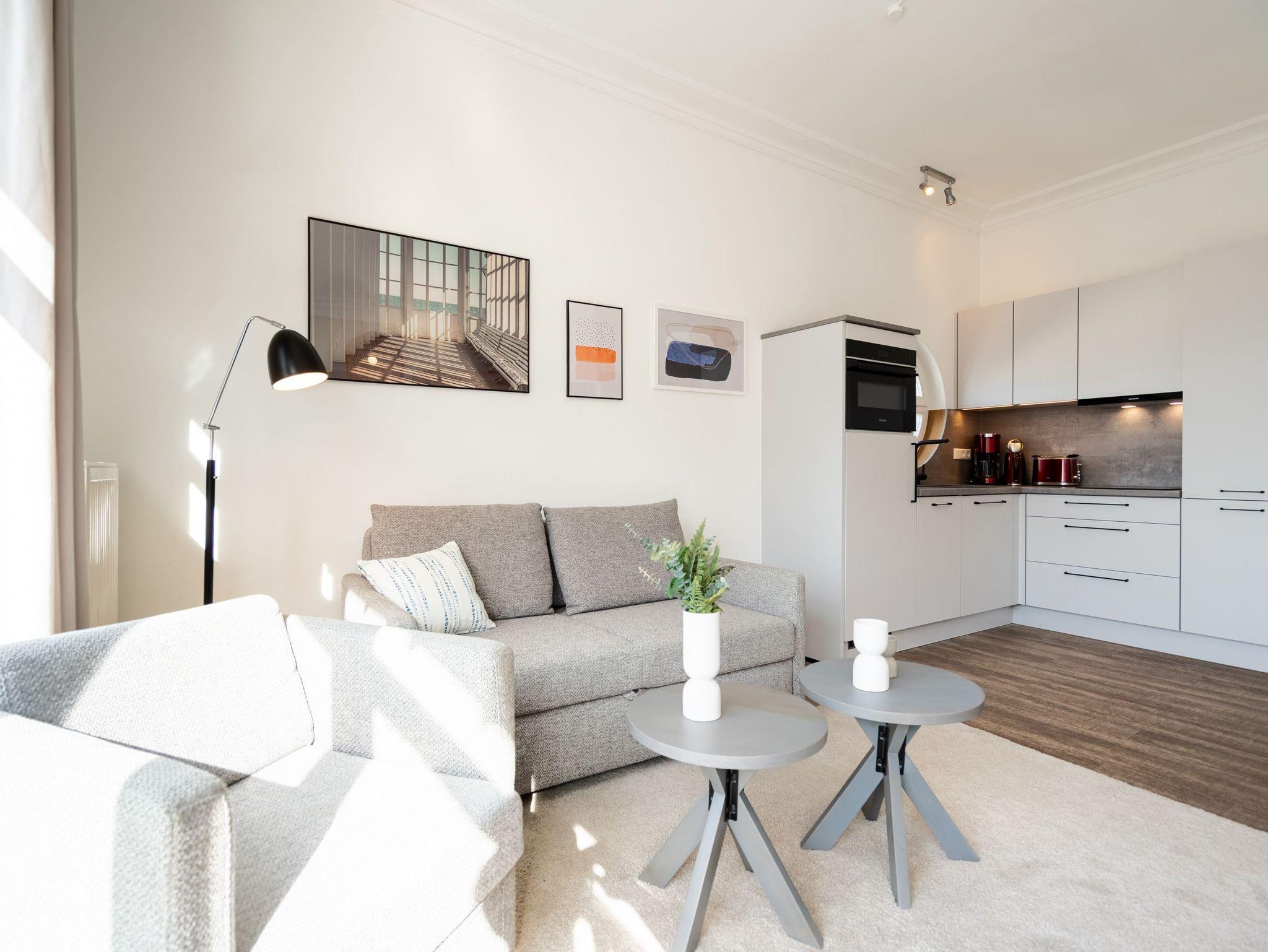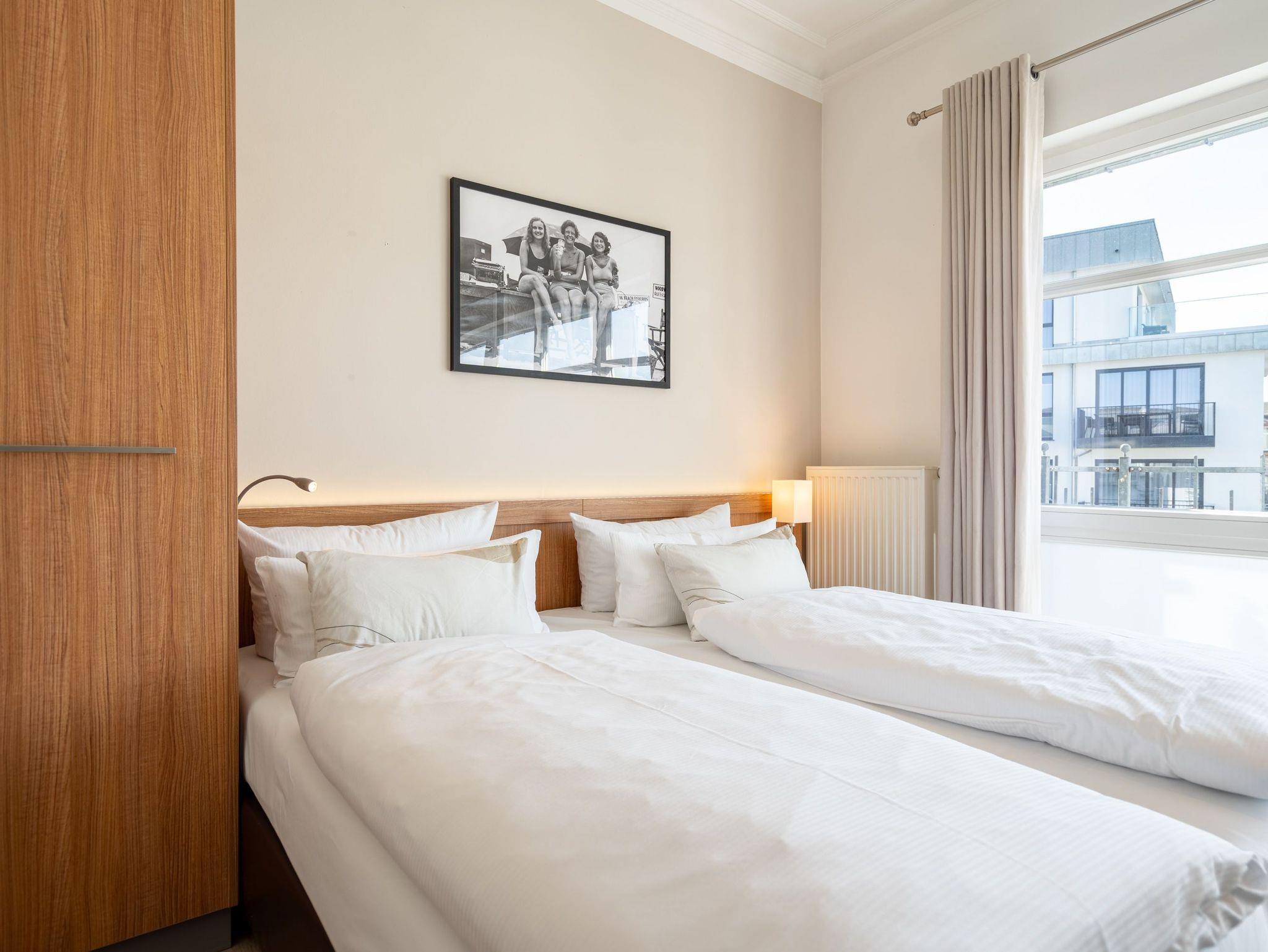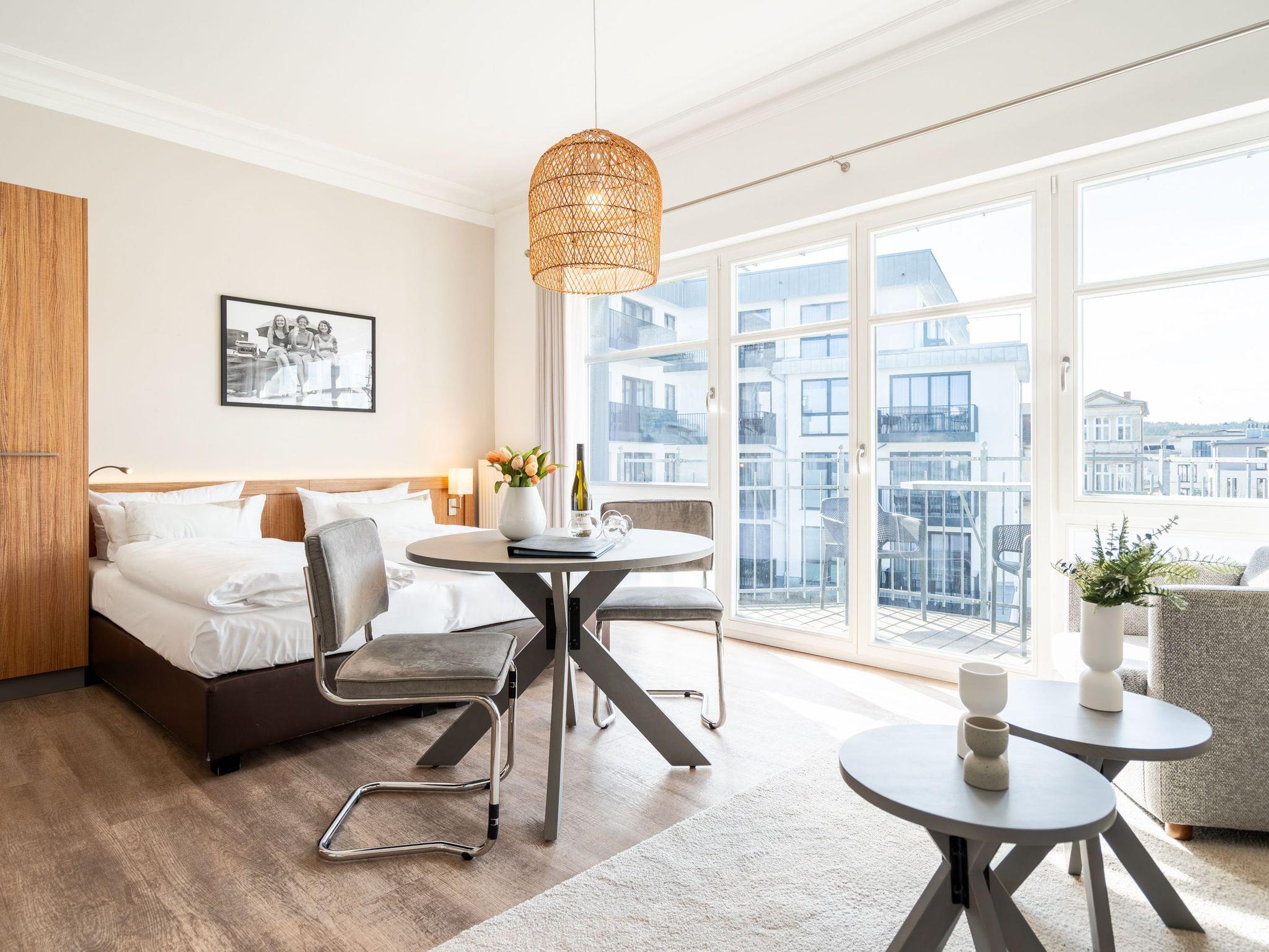 Die 1-Raum-Ferienwohnung Nr. C09 in der Villa Seedüwel bietet auf 35 qm komfortablen Platz für zwei Personen und befindet sich im Dachgeschoss. Der offene Wohnbereich ist mit einer Küchenzeile ausgestattet, die ein Induktionskochfeld, eine Mikrowelle und einen Kühlschrank mit Gefrierfach umfasst. Ein Essplatz für zwei Personen, eine gemütliche Sitzgruppe und ein Flat-TV sorgen für Komfort. Das Doppelbett (1,80 m x 2,00 m) befindet sich ebenfalls im Wohnbereich und wird durch eine Kommode sowie einen Kleiderschrank ergänzt. Von hier aus gelangen Sie auf den sonnigen Süd-West-Balkon. Das Tageslicht-Bad verfügt über eine Dusche, ein Waschbecken und ein WC. Ein Stellplatz in der Tiefgarage ( Einfahrthöhe 2,03m) des benachbarten Hauses „Strandterrasse“ ist für Sie reserviert. WLAN steht Ihnen kostenfrei zur Verfügung.
