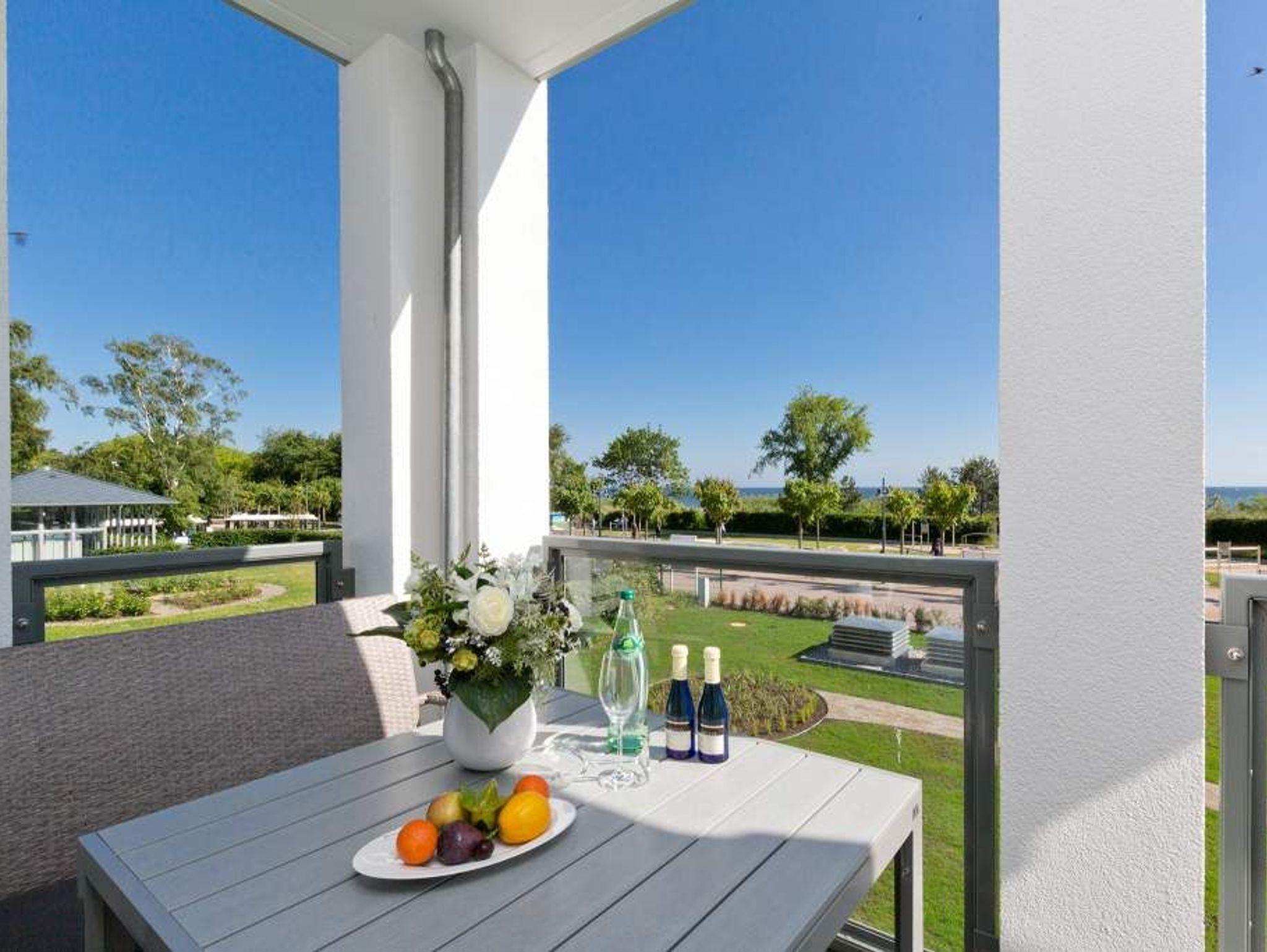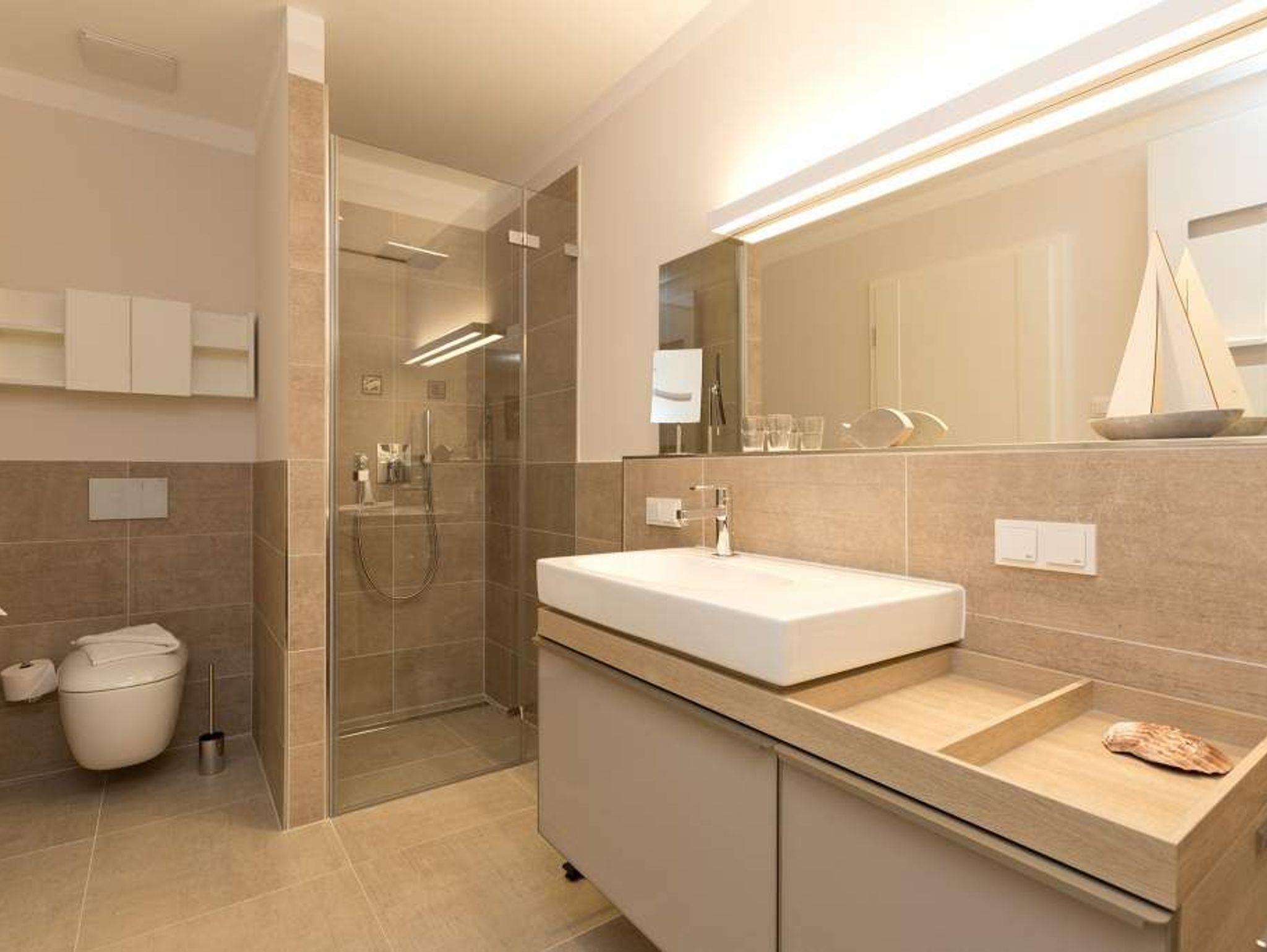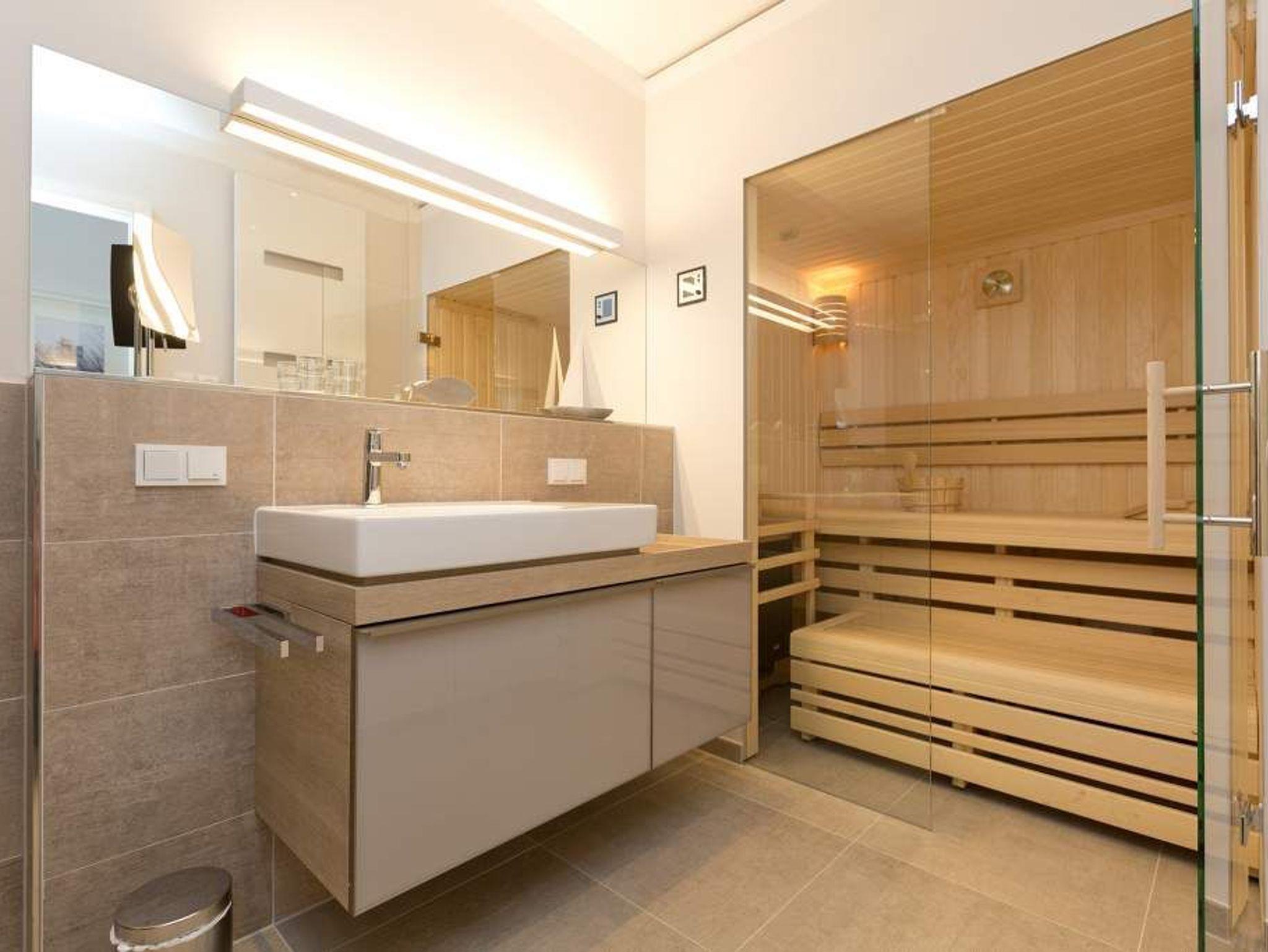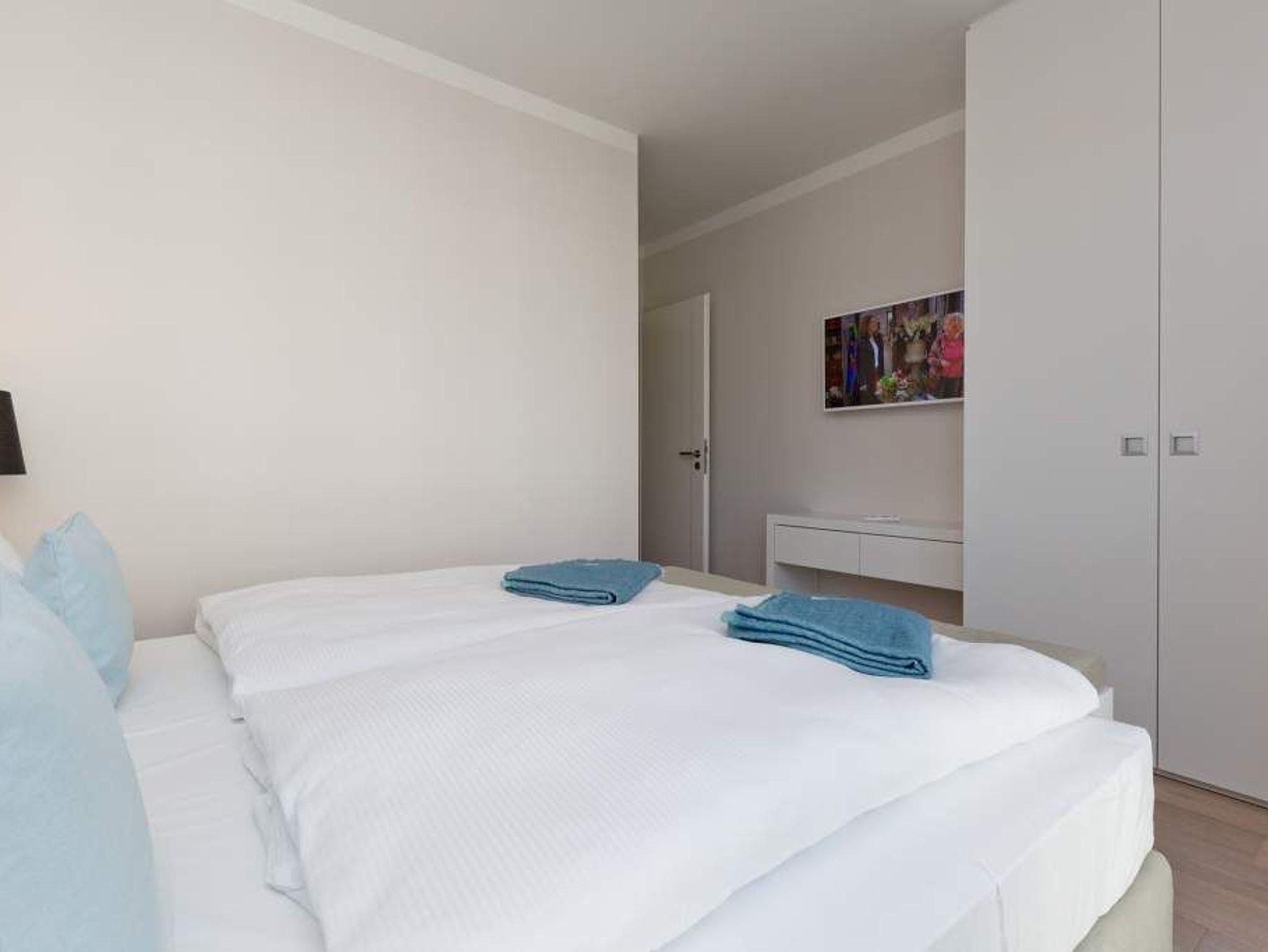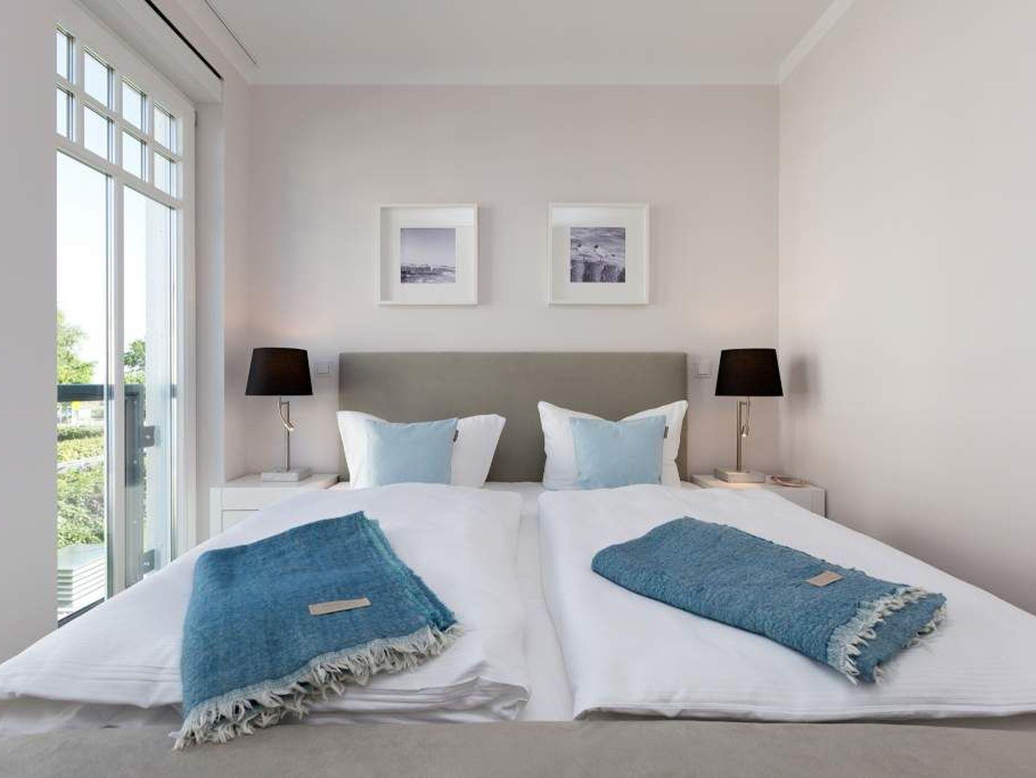 Die Freiheit ist Blau. Schon beim Aufwachen legt sich Ostseeweite in den Blick. 78 Quadratmeter Wohlfühlwelt bieten die 3 Räume der Wohnung Nummer 6 im ersten Obergeschoss der Villa Westend. Meerblick gibt es hier jedoch nicht nur aus einem der beiden Schlafzimmer. Auch der großzügige Wohnbereich mit offener Küche und angrenzendem Balkon wartet mit Weite bis an den Horizont auf. Eingerichtet vom Innenarchitekten mit eleganten Möbeln und stylischen Wohn-Accessoires sorgt das Appartement für Urlaubsgefühl pur. Highlight nicht nur im Winter ist der Elektro-Kamin. Kühle Abende werden damit zu wohligen Augenblicken. Zwei Schlafzimmer bieten in hochwertigen Boxspringdoppelbetten (1,80 m x 2,00 m) Platz für 4 Personen. Zum Verdunkeln können Außenjalousien heruntergelassen werden: hierbei handelt es sich lediglich um einen Sonnenschutz, der automatisch bei schlechtem Wetter einfährt und nicht um Außenjalousien. Alle drei Zimmer verfügen über Flat-TVs. Wie wäre es mit einem eigenen kleinen Spa-Bereich? Zwei Bäder mit exklusivem Baddesign, Tropendusche und einer Panorama-Sauna im Masterbad lassen den Urlaub zur Wellness-Auszeit werden. Und damit Sie sich wirklich um nichts kümmern müssen, liegen bereits Handtücher für Sie bereit und auch die Betten sind bezogen. Zu dieser Wohnung gehören 2 Stellplätze ( Nr. 26 [&] 27) in der Tiefgarage.