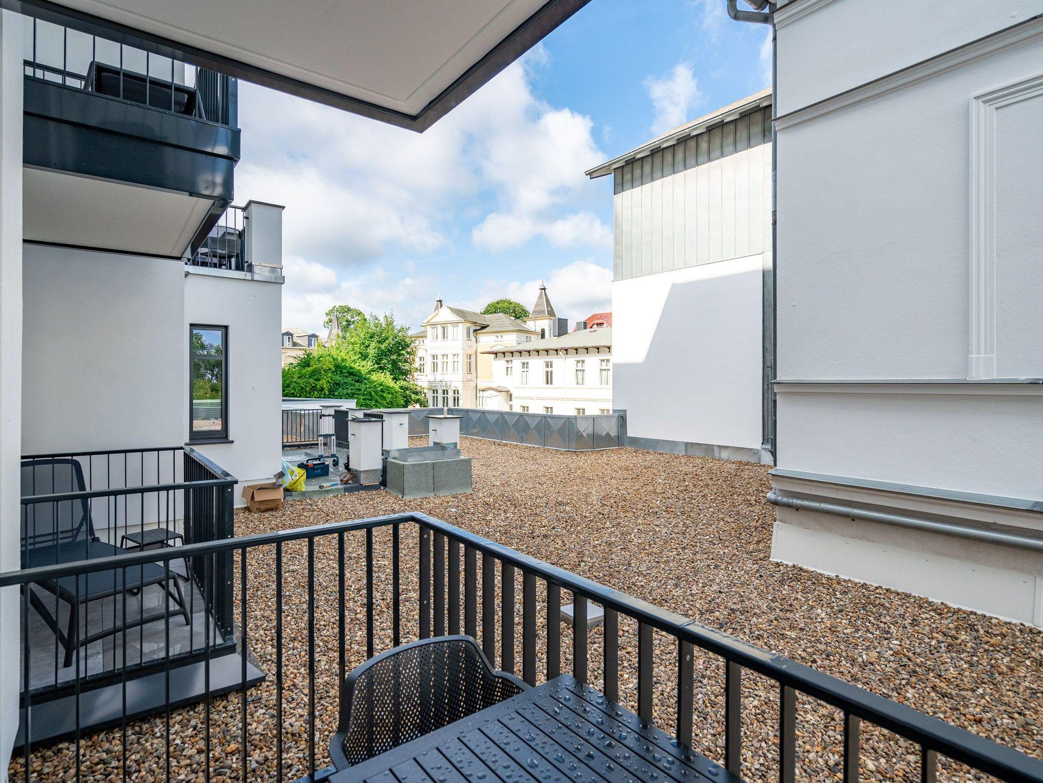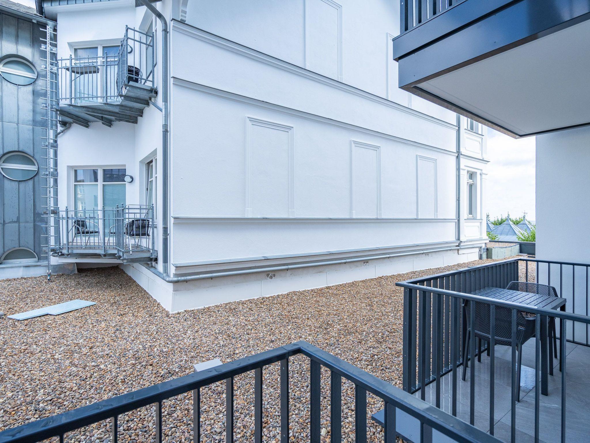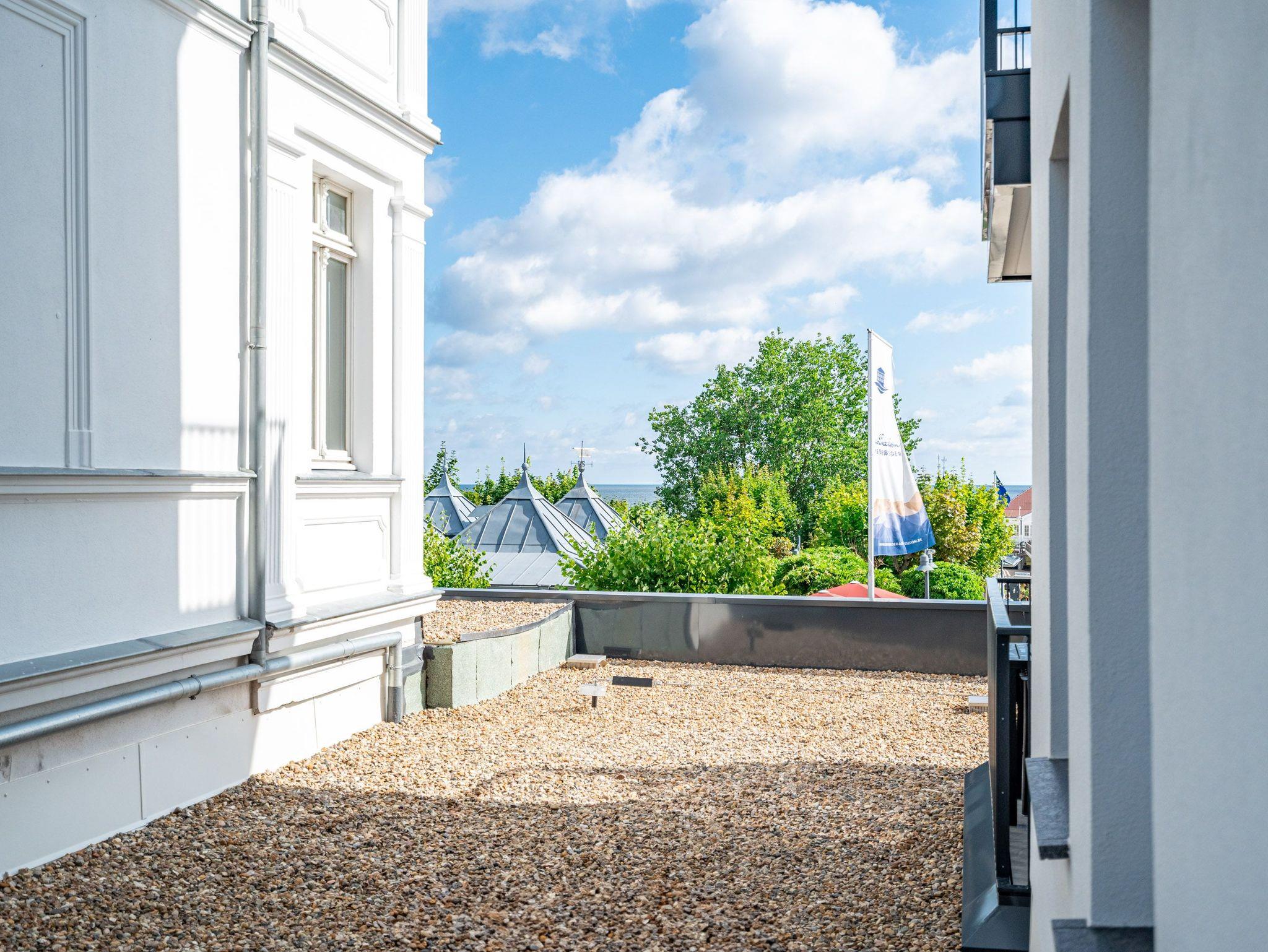 Die 2024 fertig gestellte Strandterrasse liegt direkt an der belebten Strandpromenade und bietet einen einzigartigen Ausblick auf die Grand Dame der historischen Seebrücken sowie die historische Konzertmuschel, einem beliebten Treffpunkt für Kunst und Kultur. Dahinter liegt die Ostsee ? ein Panorama, das zu den schönsten in den Kaiserbädern gehört. Es ist wie das Abtauchen in eine andere Zeit. In eine Zeit, in der man mit Stock, Sonnenschirm und Hut fürs ?Sehen und gesehen werden? über die Promenade schlenderte; aber auch in eine Zeit, in der ? damals wie heute ? Zeit einmal für eine kurze Weile keine Rolle spielt. Weil man angekommen ist im Loslassen, Entspannen und Genießen. Es ist dieser besondere Geruch nach Meeresluft und Freiheit, der in Erinnerung bleibt. Dazu die Bilder, die man mitnimmt. Von langen Strandspaziergängen, vom Lachen in fröhlich schäumenden Ostseewellen, von der Zeit in einem wunderschönen Urlaubsdomizil. Denn genau das ist die Strandterrasse mit ihren 56 modernen und exklusiven Ferienappartements direkt gegenüber der Ahlbecker Seebrücke. Die Ein-, Zwei- oder Dreizimmerwohnungen ? zwischen 40 und 70 Quadratmeter groß ? sind von einer Innenarchitektin gemeinsam mit unserem Erfahrungsschatz an Gästewünschen mit viel Liebe zum Detail und ganz individuell konzipiert worden. Entspannung und Wohlfühlen stehen an erster Stelle. Alles ist aufeinander abgestimmt und sorgt für eine gemütliche Atmosphäre. Wählen Sie zwischen einem Domizil in einem hellen, sandfarbenen Designkonzept oder einem Appartement mit anthrazitfarbenen Farbakzenten. Alle Appartements verfügen gleichermaßen über eine stilvolle und komfortable Einrichtung, die passgenau angefertigt worden ist, sowie über moderne Küchen und Bäder. Jedem Schlafzimmer ist ein eigenes Bad mit Dusche zugeordnet (außer App. B4.5). Die Appartements besitzen fast alle einen Balkon ? viele schauen sogar zur Ostsee hinaus. Die meisten Feriendomizile haben einen Elektrokamin und Infrarotsaunen. Im Erdgeschoss befindet sich ein separater Gemeinschaftsraum für Fahrräder. Außerdem besteht die Möglichkeit, im Gemeinschaftswaschraum 2 Waschmaschinen [&] Trockner zu nutzen. Ergänzt wird das Angebot durch eine Gemeinschaftssauna, die täglich von 11:00 bis 22:00 Uhr nutzbar ist. In der Tiefgarage (Einfahrtshöhe 2,03 Meter) steht für jede Wohnung 1 Pkw-Stellplatz zur Verfügung. Ist alles zur Zufriedenheit untergebracht? Dann kann der Urlaub ja beginnen. Und beim Blick vom Balkon über die Ostsee treffen sich zum Sonnenaufgang das Heute und das Damals. Gelassenheit legt sich beim Gang hinunter an den Strand auf die Seele. Jetzt darf die Zeit stehenbleiben.