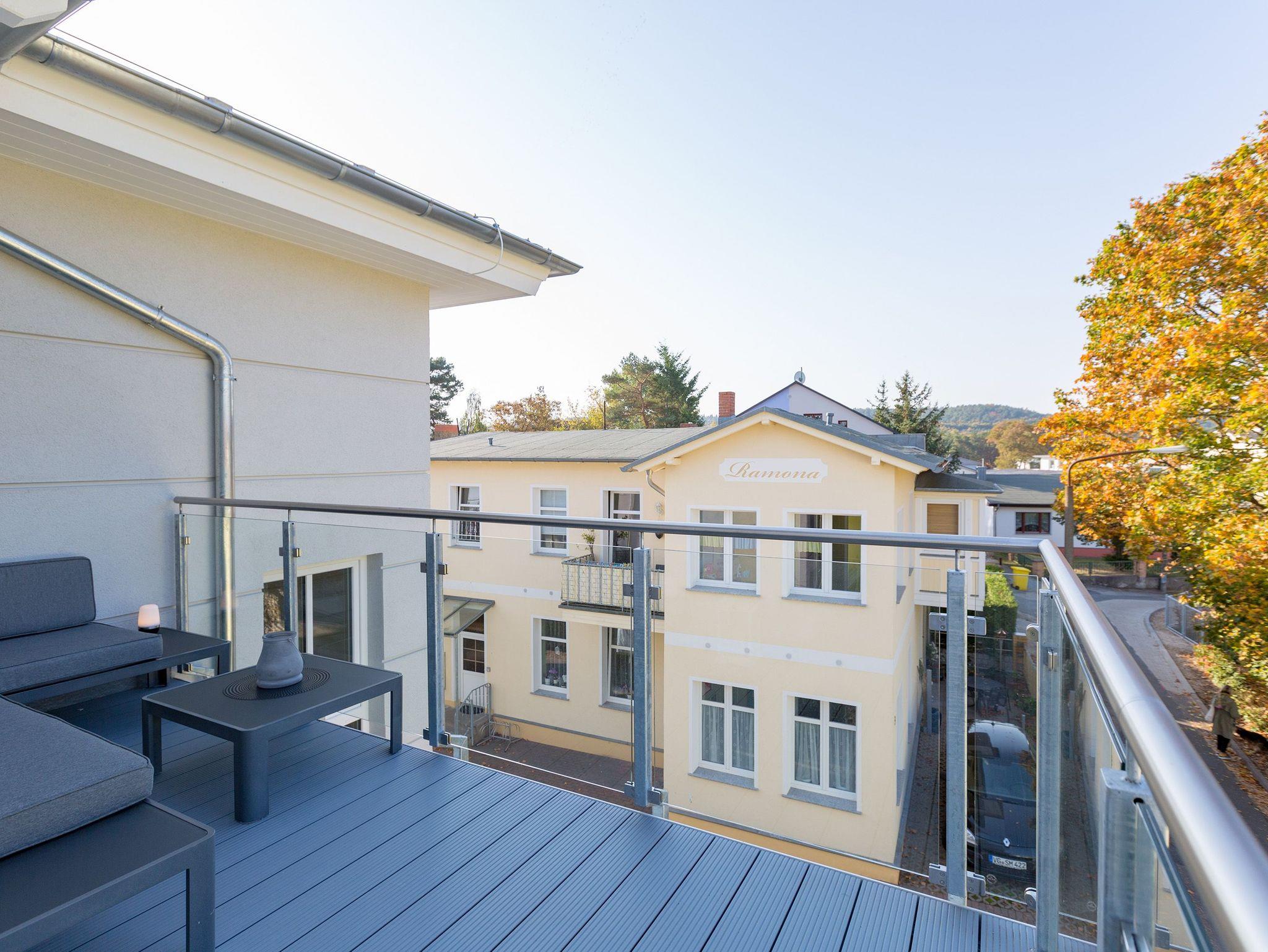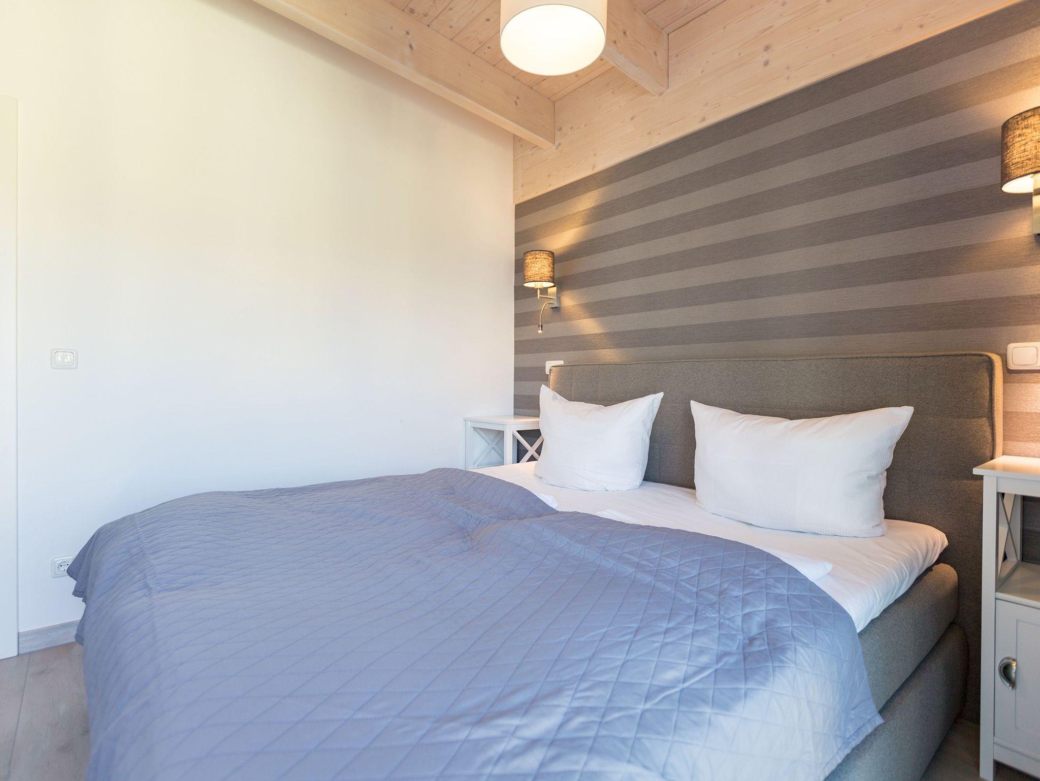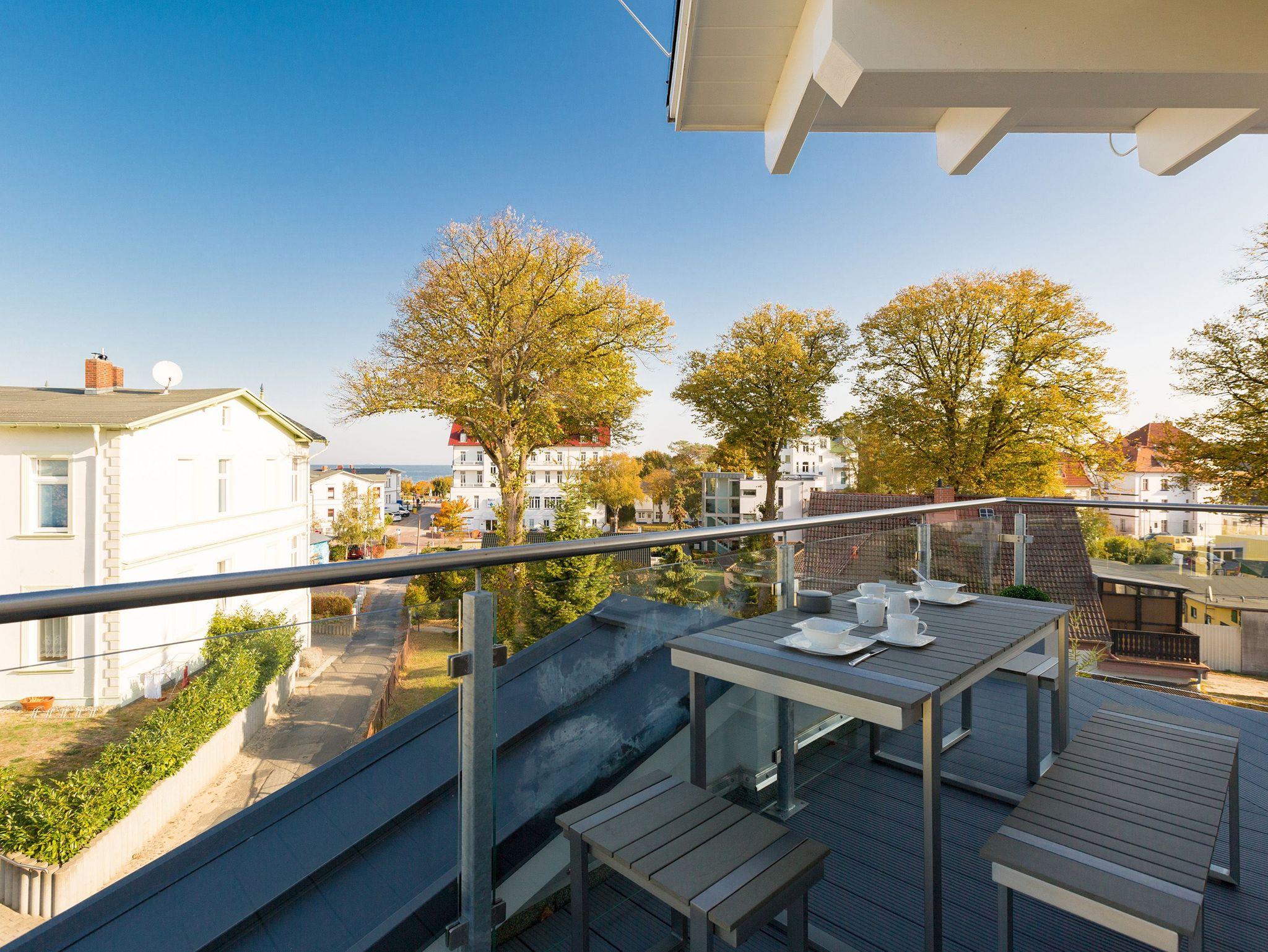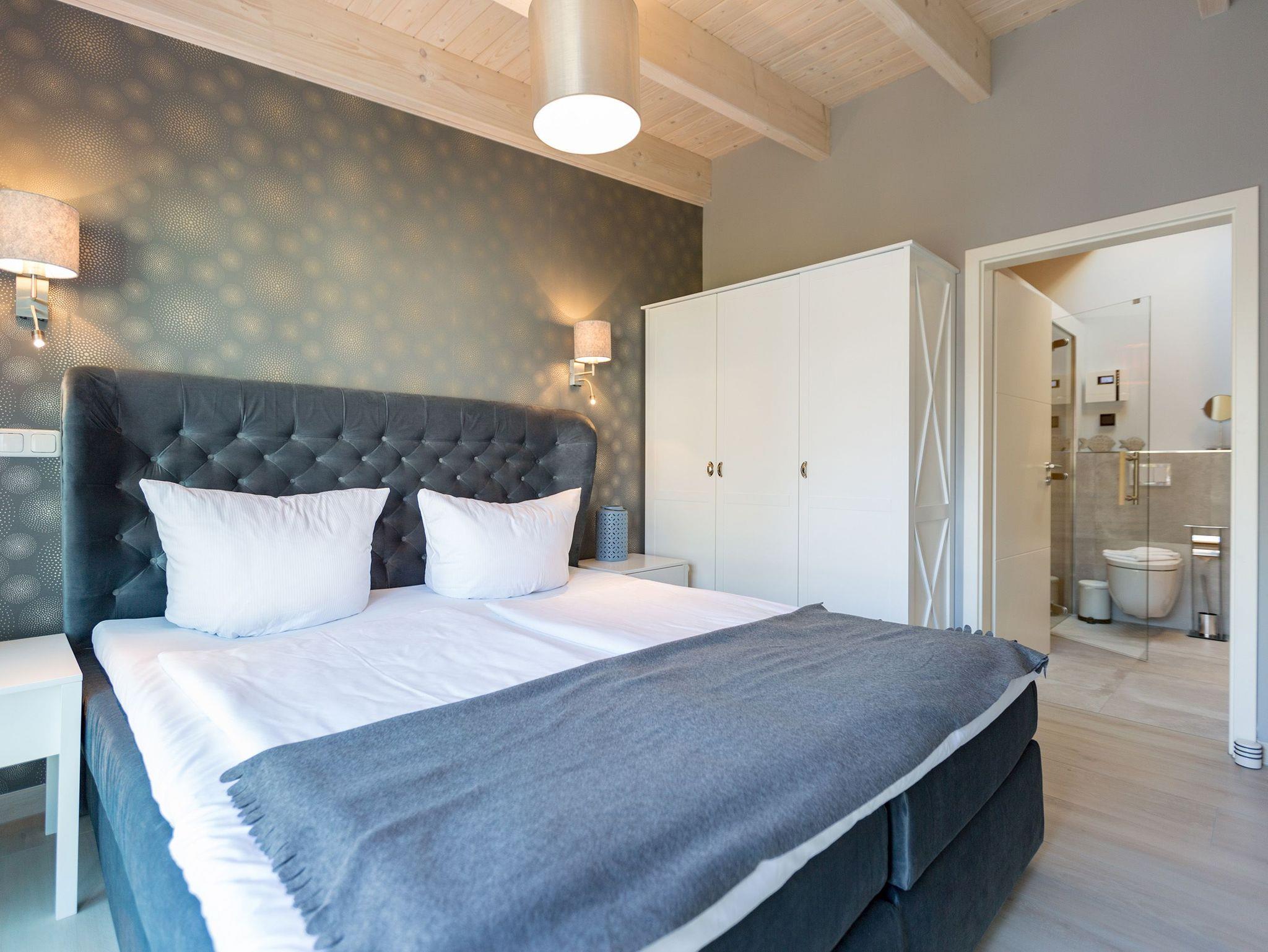 Der Fahrstuhl bringt Sie direkt unters Dach der Düne 8. Ein wunderschönes und großzügiges Penthouse wartet hier auf Sie. Auf 71 Quadratmetern können es sich bis zu vier Personen und ein Kleinkind bis drei Jahre (im Kinderreisebett) richtig gut gehen lassen, gemeinsam entspannen und eine unvergesslich schöne Zeit verbringen. Die Einrichtung der drei Zimmerwohnung besticht durch ihre schlichte und moderne Eleganz. Nordisches Design und urige Accessoires vermitteln Heimeligkeit, die jegliche Stressgedanken vergessen lässt. Die offene und helle Holzbalkendecke ist etwas ganz besonderes. Das große Wohnzimmer hat bodentiefe Fenster, die viel Licht ins Innere lassen. Ein massiver Gas-Kamin sorgt für kuschelige Behaglichkeit und Wärme. Auf der gemütlichen Sofa-Sitzgruppe oder im bequemen Ledersessel haben sie beste Plätze für das Flat-TV-Heimkino. Treten Sie hinaus auf den Balkon und genießen Sie den weiten Ostseeblick, der sich Ihnen in den Blick legt. In diesem Urlaubsdomizil entspannen Sie mit allen Sinnen. Auch der Geschmackssinn darf natürlich nicht zu kurz kommen. In der voll ausgestatteten Küche finden Sie alles, was das Kochherz begehrt. Hochwertige Markengeräte, erlesenes Geschirr ? da wird das Kochen im Urlaub zu einem kleinen Event. Essen können Sie am wunderschönen, großen Holztisch auf komfortablen Lederstühlen. Beide Schlafzimmer versprechen erholsame und entspannende Nächte. In den großen Boxspringdoppelbetten wird das Schlafen zum Vergnügen. Beide Schlafzimmer haben Zugang zu einem Balkon und jeweils einen Flat-TV. Auch Ablagemöglichkeiten gibt es in den Zimmern reichlich. Das Appartement verfügt über zwei Bäder mit geräumigen Regenduschen, Waschtisch und WC. Im Masterbad wartet zudem eine kleine Wellness-Oase darauf, Ihnen noch mehr Entspannung zu verschaffen. Eine Finnische Sauna ist der ideale Ort, sich an ungemütlichen Tagen die Zeit zu verschönern. Die Handtücher liegen bereit und auch die Betten sind bei der Anreise bereits bezogen. Das WLAN ist kostenfrei und im Keller gibt es einen abschließbaren Fahrradraum. Außerdem ist für Ihr Auto ein Stellplatz reserviert.