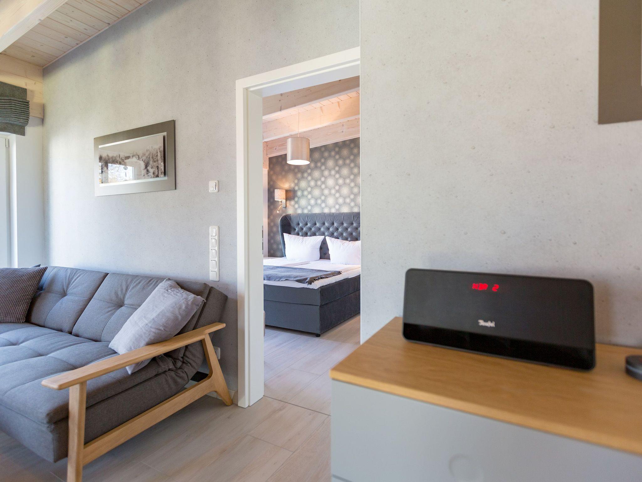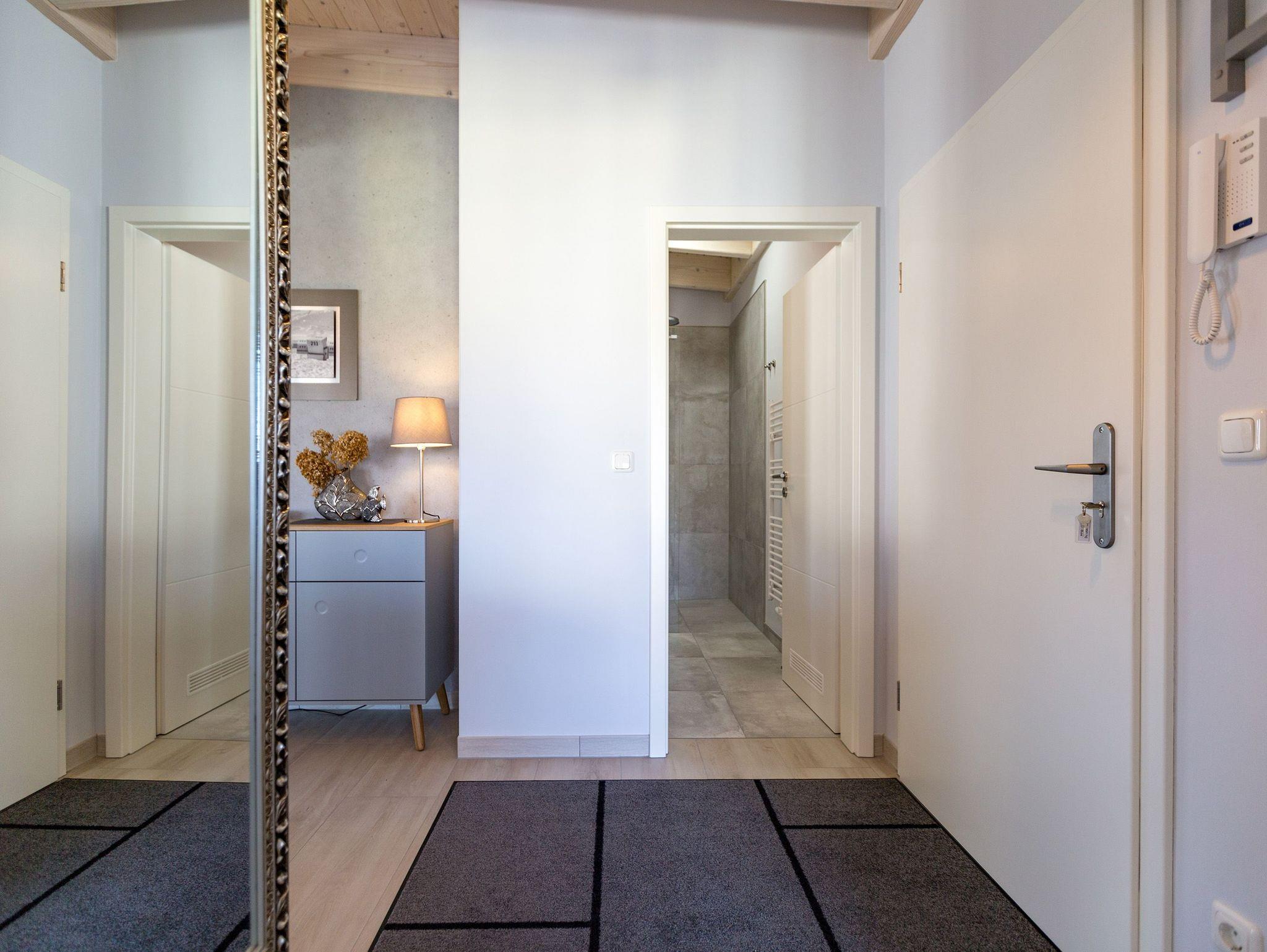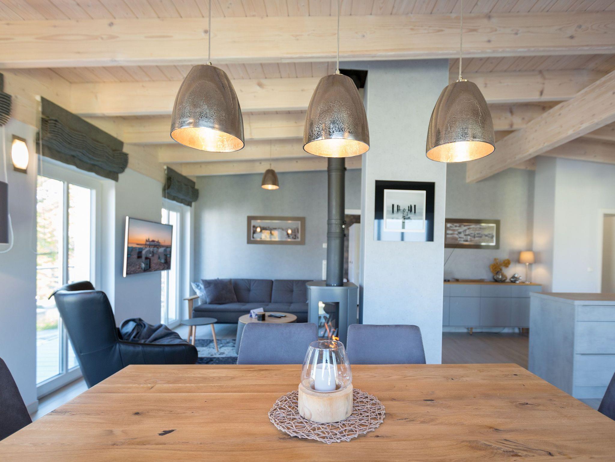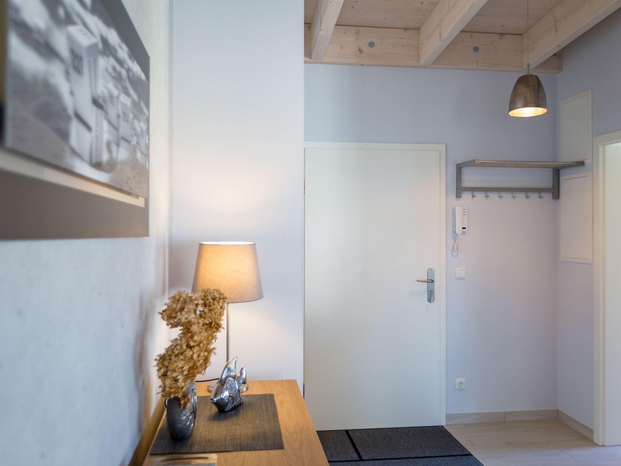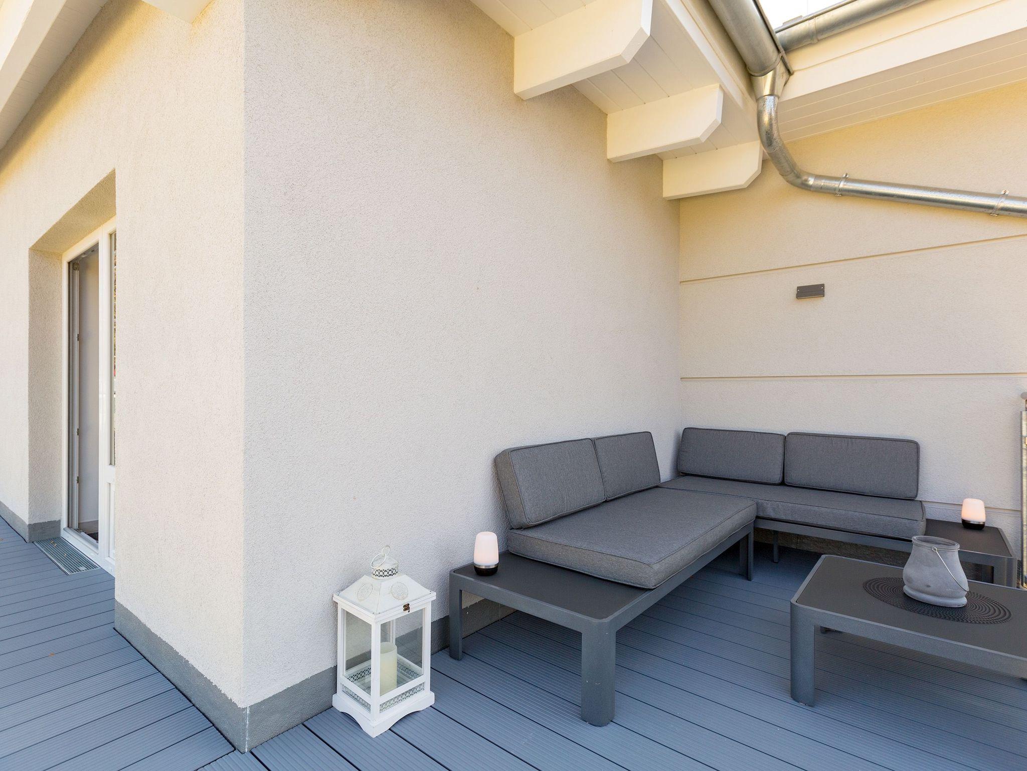 Der Fahrstuhl bringt Sie direkt unters Dach der Düne 8. Ein wunderschönes und großzügiges Penthouse wartet hier auf Sie. Auf 71 Quadratmetern können es sich bis zu vier Personen und ein Kleinkind bis drei Jahre (im Kinderreisebett) richtig gut gehen lassen, gemeinsam entspannen und eine unvergesslich schöne Zeit verbringen. Die Einrichtung der drei Zimmerwohnung besticht durch ihre schlichte und moderne Eleganz. Nordisches Design und urige Accessoires vermitteln Heimeligkeit, die jegliche Stressgedanken vergessen lässt. Die offene und helle Holzbalkendecke ist etwas ganz besonderes. Das große Wohnzimmer hat bodentiefe Fenster, die viel Licht ins Innere lassen. Ein massiver Gas-Kamin sorgt für kuschelige Behaglichkeit und Wärme. Auf der gemütlichen Sofa-Sitzgruppe oder im bequemen Ledersessel haben sie beste Plätze für das Flat-TV-Heimkino. Treten Sie hinaus auf den Balkon und genießen Sie den weiten Ostseeblick, der sich Ihnen in den Blick legt. In diesem Urlaubsdomizil entspannen Sie mit allen Sinnen. Auch der Geschmackssinn darf natürlich nicht zu kurz kommen. In der voll ausgestatteten Küche finden Sie alles, was das Kochherz begehrt. Hochwertige Markengeräte, erlesenes Geschirr ? da wird das Kochen im Urlaub zu einem kleinen Event. Essen können Sie am wunderschönen, großen Holztisch auf komfortablen Lederstühlen. Beide Schlafzimmer versprechen erholsame und entspannende Nächte. In den großen Boxspringdoppelbetten wird das Schlafen zum Vergnügen. Beide Schlafzimmer haben Zugang zu einem Balkon und jeweils einen Flat-TV. Auch Ablagemöglichkeiten gibt es in den Zimmern reichlich. Das Appartement verfügt über zwei Bäder mit geräumigen Regenduschen, Waschtisch und WC. Im Masterbad wartet zudem eine kleine Wellness-Oase darauf, Ihnen noch mehr Entspannung zu verschaffen. Eine Finnische Sauna ist der ideale Ort, sich an ungemütlichen Tagen die Zeit zu verschönern. Die Handtücher liegen bereit und auch die Betten sind bei der Anreise bereits bezogen. Das WLAN ist kostenfrei und im Keller gibt es einen abschließbaren Fahrradraum. Außerdem ist für Ihr Auto ein Stellplatz reserviert.